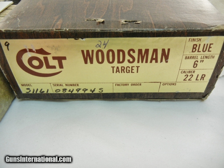 Description: This is Colt Woodsman target 22 with a 6 inch barrel. This gun is 100% new in the box. Serial # is 084xxxS. Buyer pays 35.00 shipping. Thank you. 30-20-3 SOLD |
