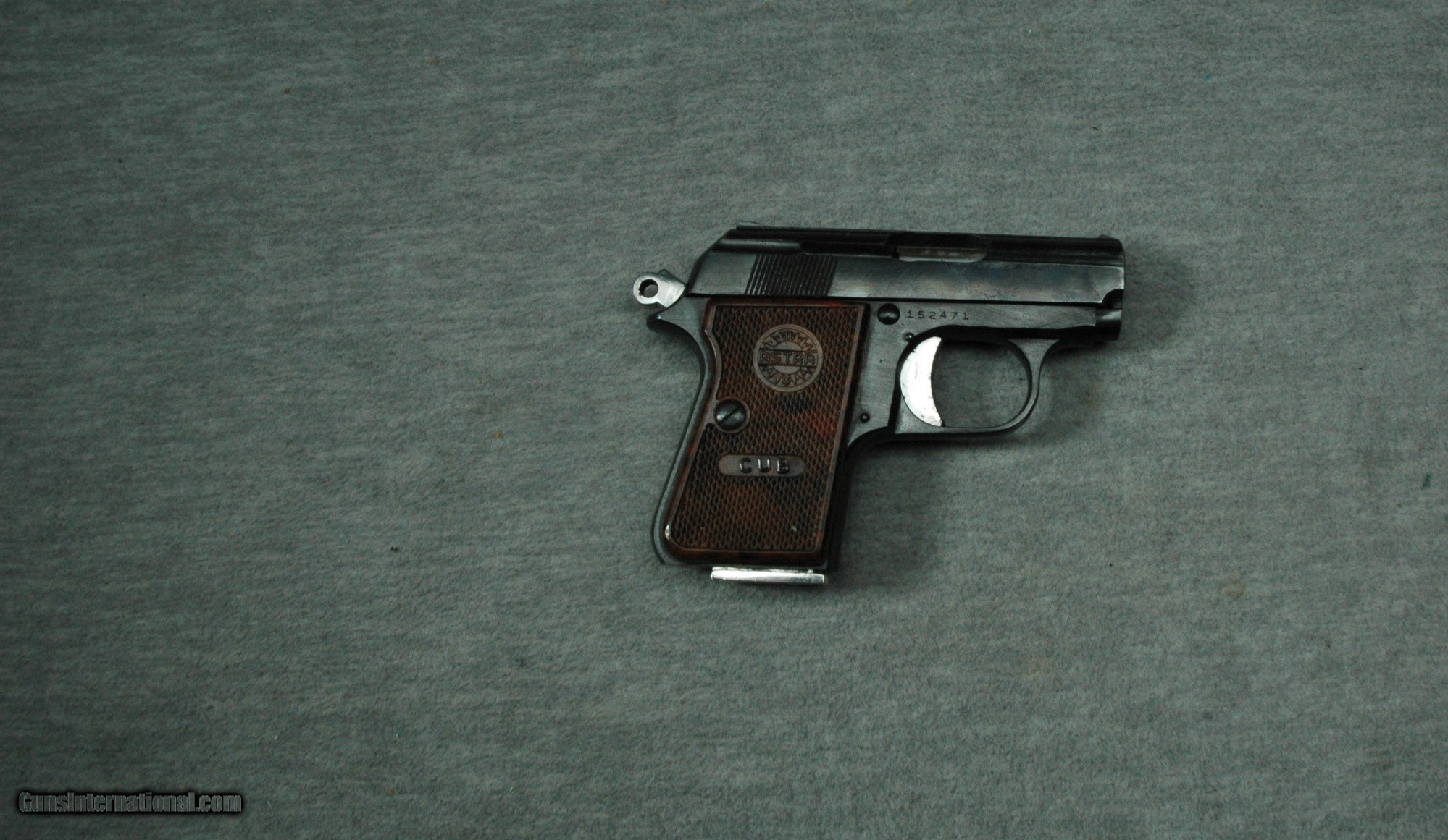 Description: Astra Cub chambered in .22 Short. This is a tiny, blowback semi-automatic pistol available chambered as a .22 Short. This pistol had an external hammer, no grip safety, and plastic grips. Includes 2 mags. No box. .22 Short Metal Condition: Very good Bore Condition: Bright Barrels: 2 Inches Triggers: Factory Weight: 12 Ozs. Sights: Fixed Item Location: La Vista, NE Price: $299.99 Contact Seller |