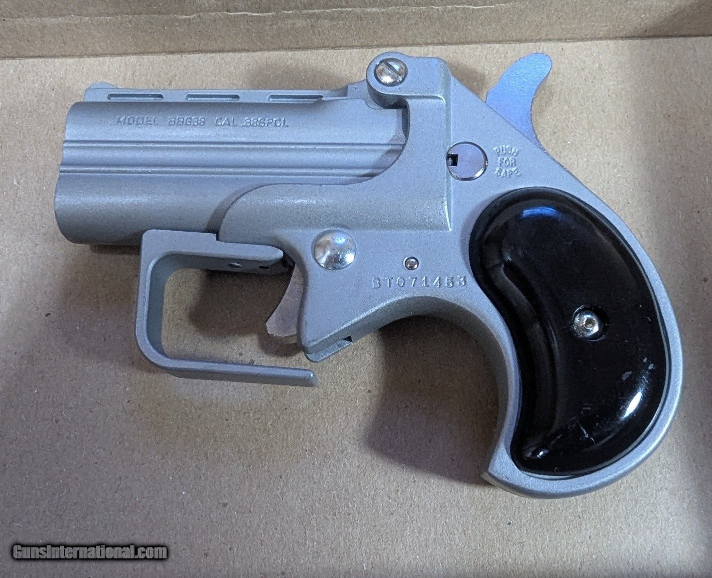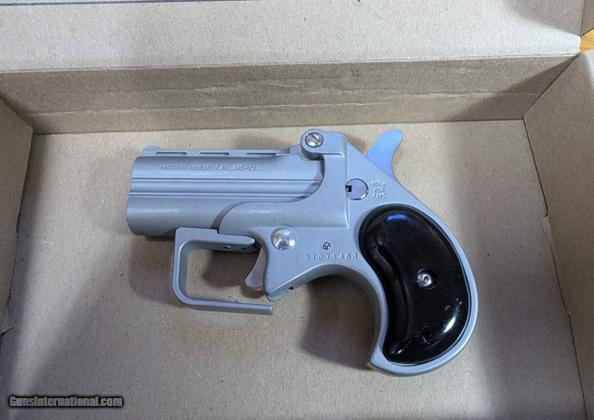 Description: Guns Listing ID: 605455 Bearman Big Bore Derringer .38 Special Pistol 2.75\" 2rd, Satin with Black Grip - BBG38 Product Details Details Brand: Bearman Model: Big Bore Derringer Caliber: .38 Special Capacity: 2rd Barrel Length: 2.75\" Features This Bearman Long Bore Derringer is ideal for personal protection and extremely easy to conceal. This model features a two-round capacity of .38 Special that packs a punch and is incredibly reliable. Manufacturer: BEARMAN Model: BBG38 Caliber Info: .38 SPL Condition: Used - Non-Certified Barrels: 2.75" BARREL Action: OVER/UNDER Finish: satin Price: $159.99 Contact Seller |