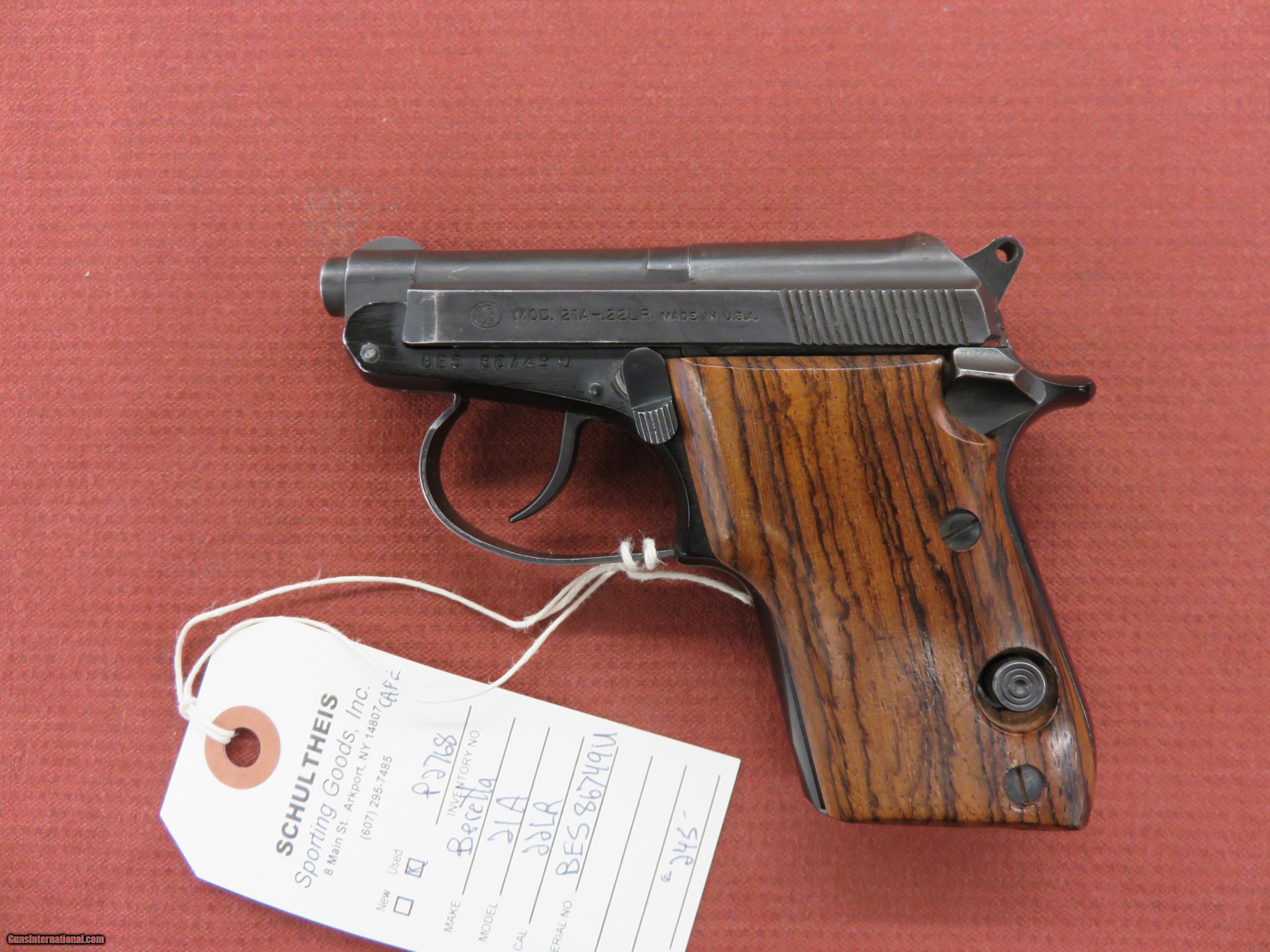 Description: Beretta 21A 22LR, wood grips, slight edgewear, 95% overall. SOLD |