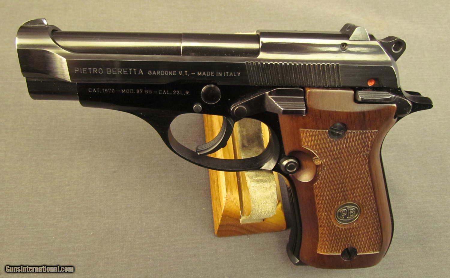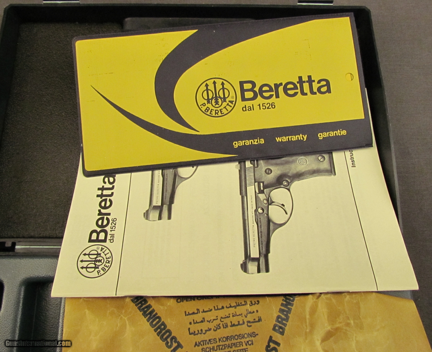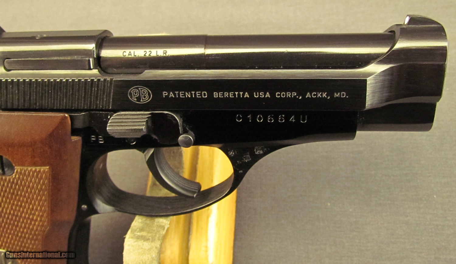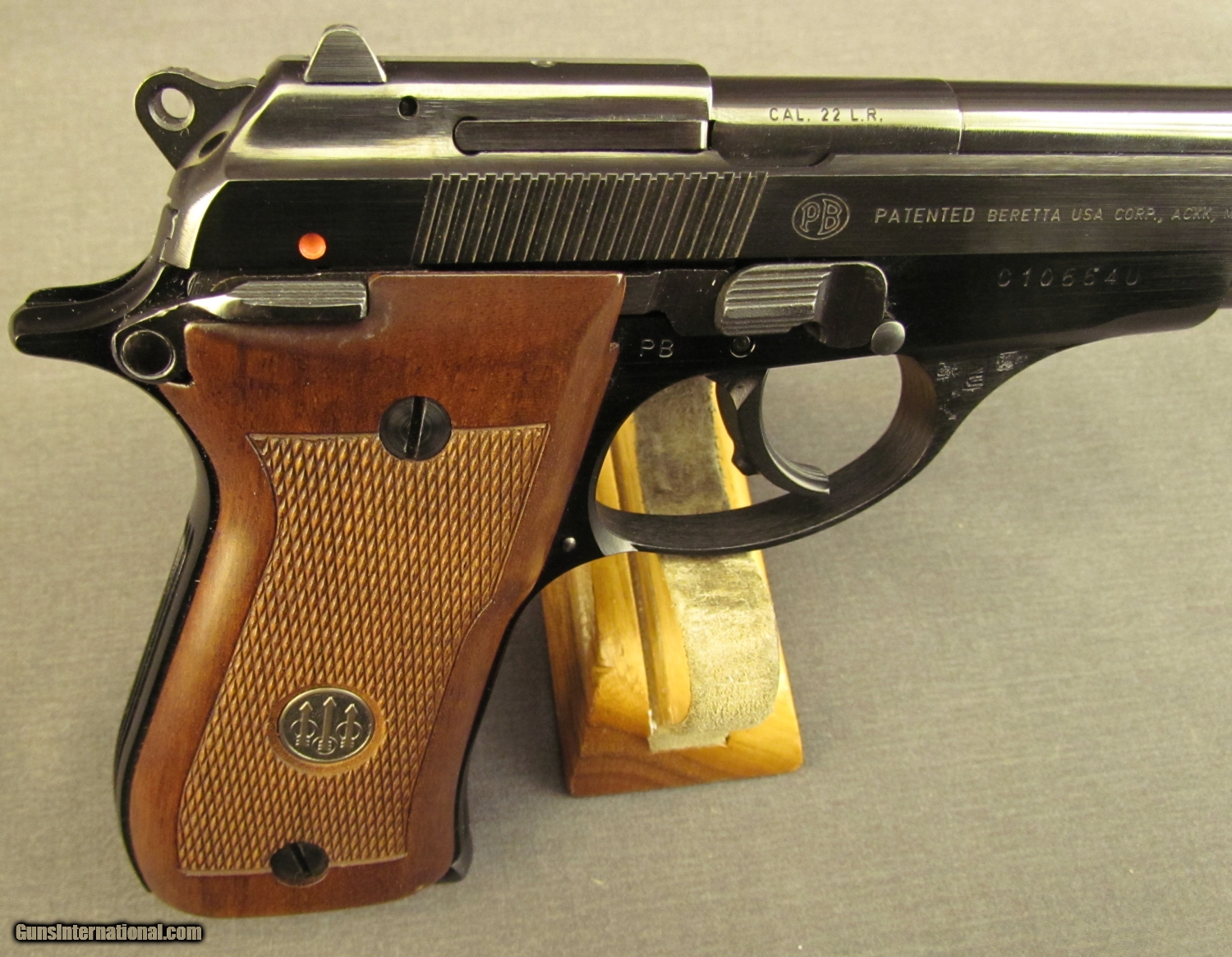 Description: S# C10664U, 22 LR, 3 3/4 inch barrel, bright excellent bore. This 1992 built pistol remains in excellent condition showing 98% blue with a couple light marks on left side of frame below slide. The checkered wood grips show an impact mark by mag release, otherwise they look new. This comes in the original box and sleeve with one 7 round magazine. Outer sleeve is shelf worn with two separated corners. FFL SOLD Manufacturer: Beretta Model: 87BB Serial Number: C10664U Caliber Info: .22LR Gauge Info: .22LR |