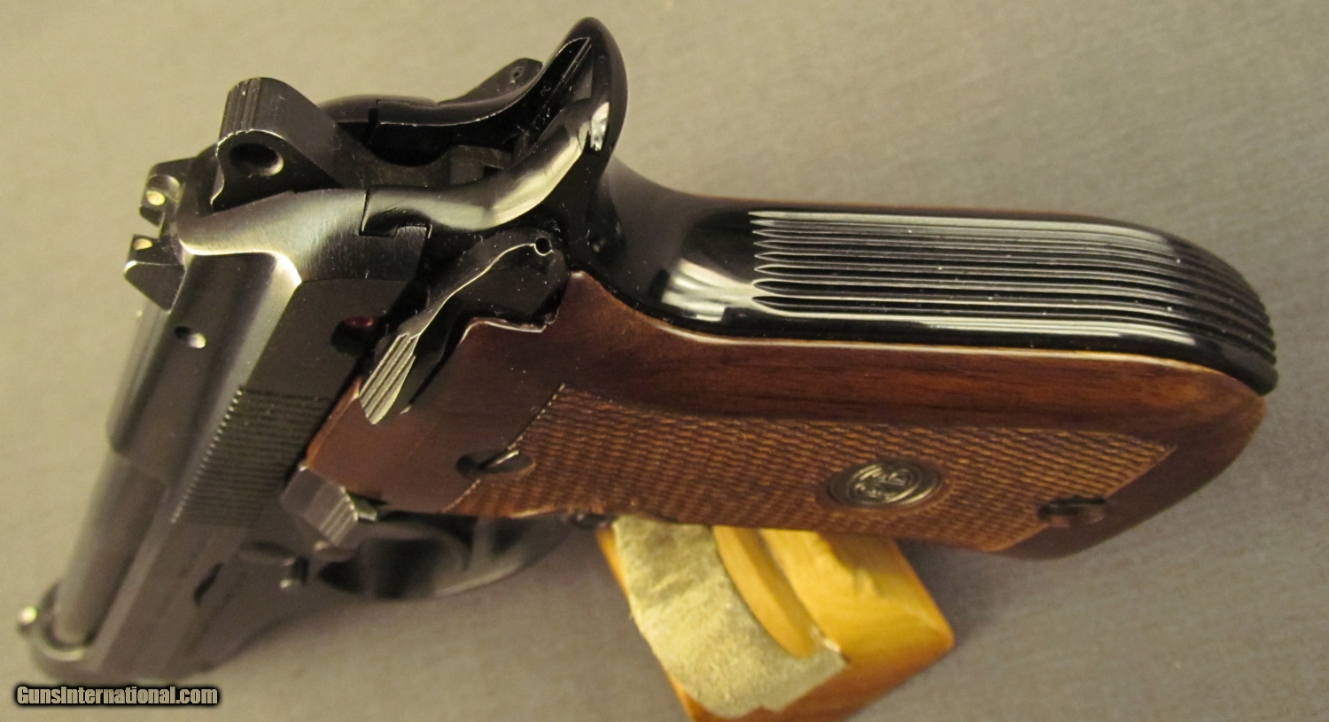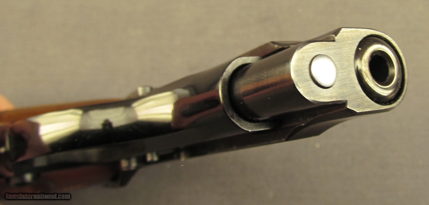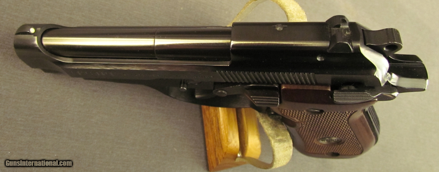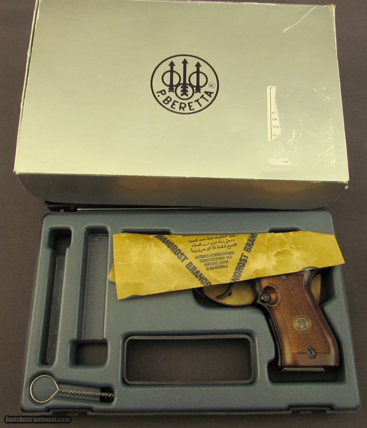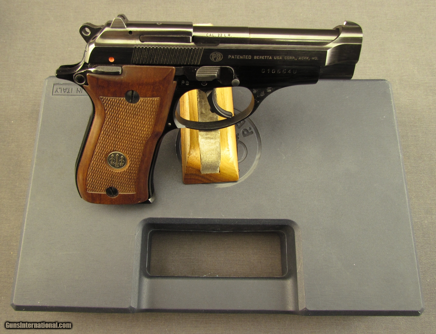 Description: S# C10664U, 22 LR, 3 3/4 inch barrel, bright excellent bore. This 1992 built pistol remains in excellent condition showing 98% blue with a couple light marks on left side of frame below slide. The checkered wood grips show an impact mark by mag release, otherwise they look new. This comes in the original box and sleeve with one 7 round magazine. Outer sleeve is shelf worn with two separated corners. FFL SOLD Manufacturer: Beretta Model: 87BB Serial Number: C10664U Caliber Info: .22LR Gauge Info: .22LR |