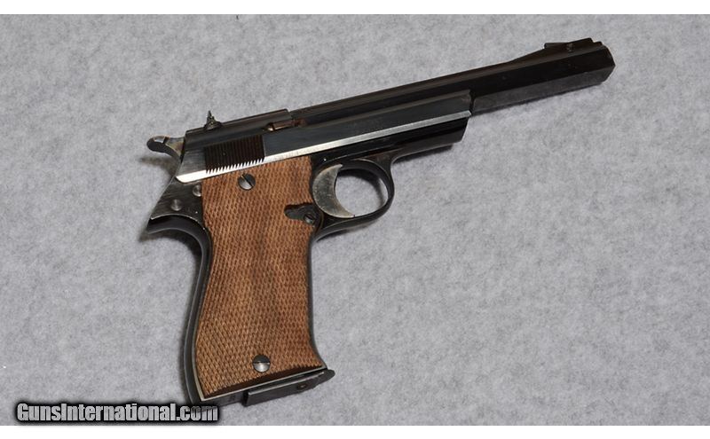 Description: The F series is the .22 Long Rifle caliber general purpose target pistol variant of the classic Star pocket pistols. Its first appearance was in 1932, concurrent with the similar-sized I-series .32 pocket pistols; both of these are the largest of the lineage. All these pistols are generally similar in arrangement and scale, with a fixed barrel, straight blowback operation, and single-action lockwork. All have a thumb-operated safety just behind the trigger on the left side of the frame, and the takedown button is to the rear of this, in a notch in the top of the grip panels (note that some series moved to a conventional thumb safety later in life). Model Fs are usually easy to identify. They are often encountered in very good shape, and very frequently with their original boxes and other paperwork. In addition to the usual methods of identification most of the model F series guns seem to have "US Patent 2,563,720" on the right side of the slide. .22 Long Rifle SOLD Chambers: Semi automatic Metal Condition: Very good with two small spots of surface pitting Wood Condition: Excellent Bore Condition: Excellent Barrels: 6 Triggers: Factory Trigger Weight: 2 lbs. Sights: Fixed target sights Item Location: Tulalip, WA |