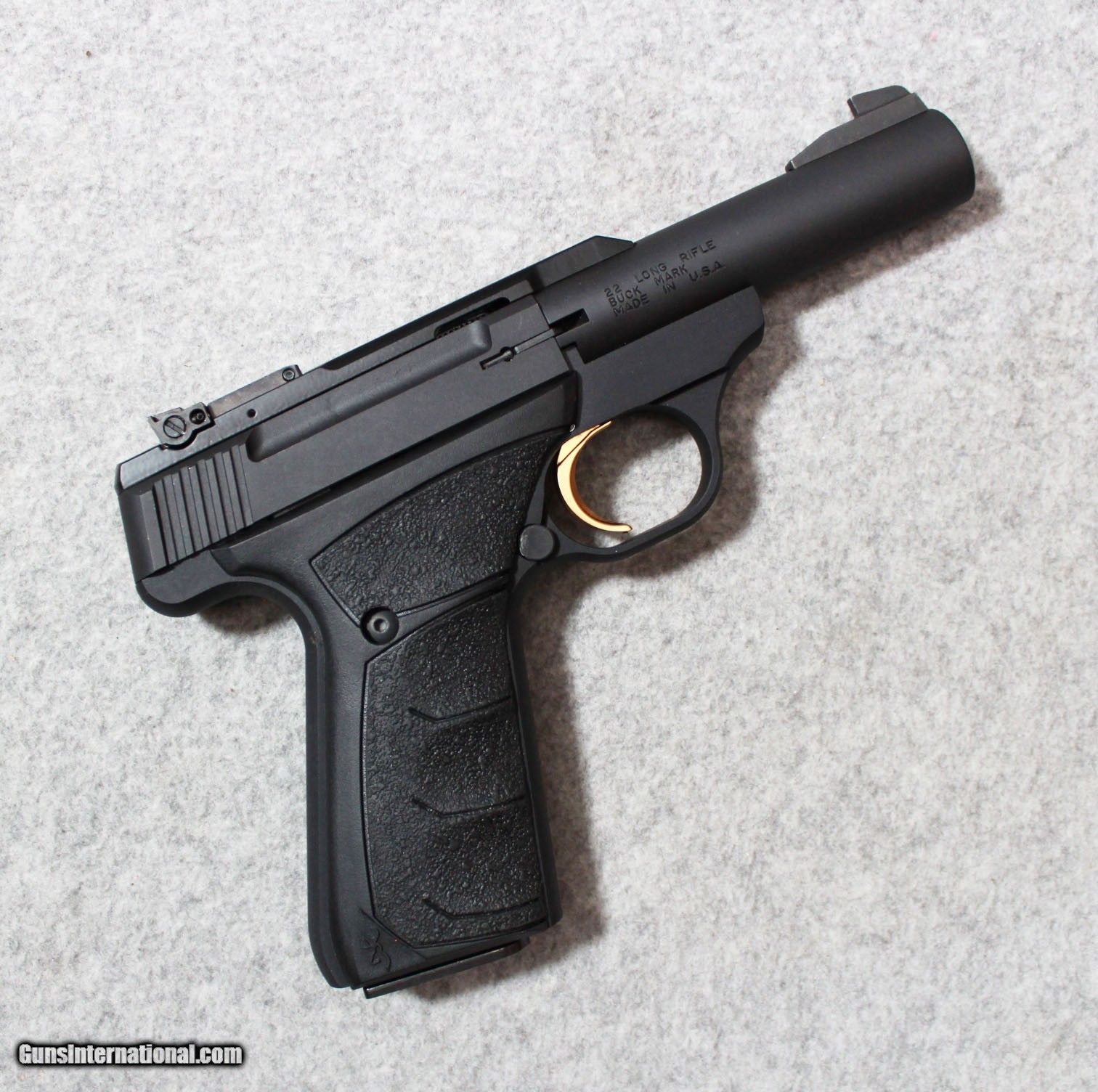 Description: Browning Buck Mark semiautomatic pistol chambered in .22LR. It has a 4" barrel, the front sight is a black blade, and the rear sight is a black adjustable u-notch. The controls are right-hand, and the factory grips panels have black rubber, finger groove inserts. Includes factory soft case, one magazine, and manual. Free shipping to any Bass Pro Shops or Cabela's store. .22 Long Rifle Metal Condition: Very Good Bore Condition: Bright and Clear Barrels: 4 Inch Weight: 29 oz Sights: Front: Black Blade / Rear: Black Adjustable U-Notch Item Location: Allen, TX Price: $299.99 Contact Seller |