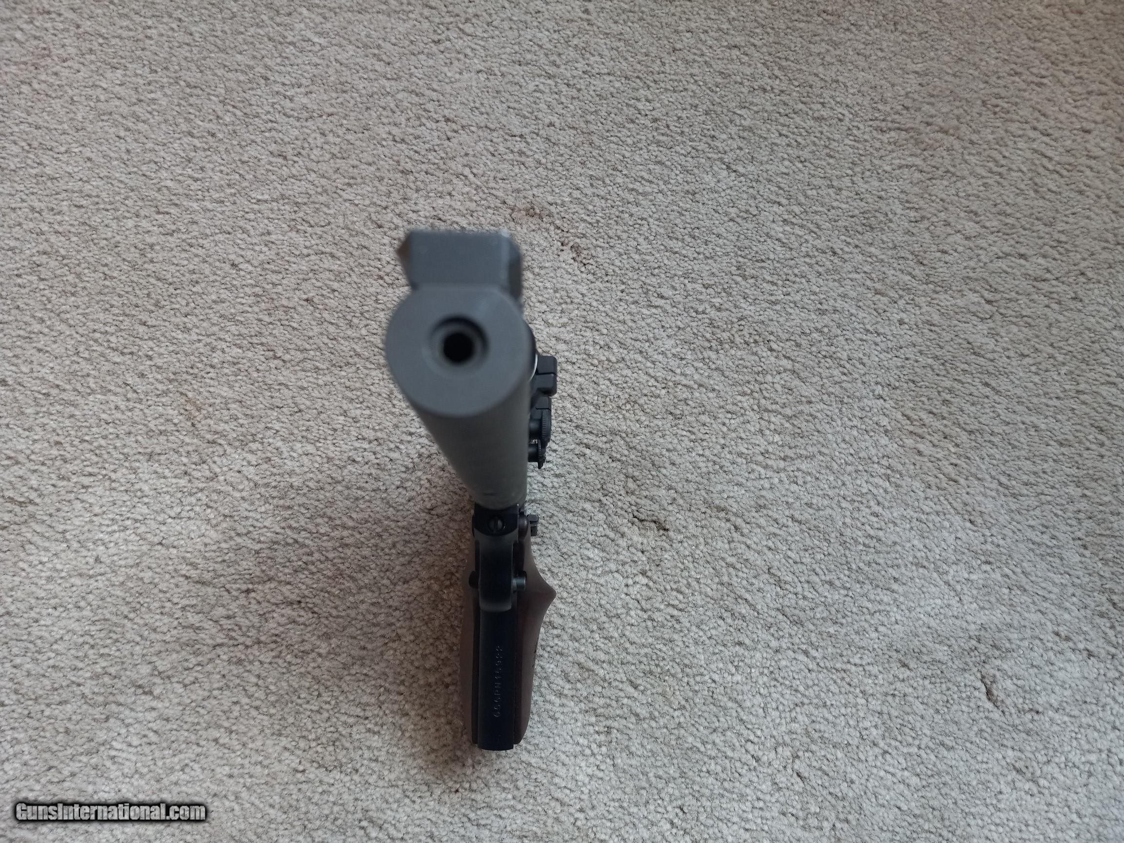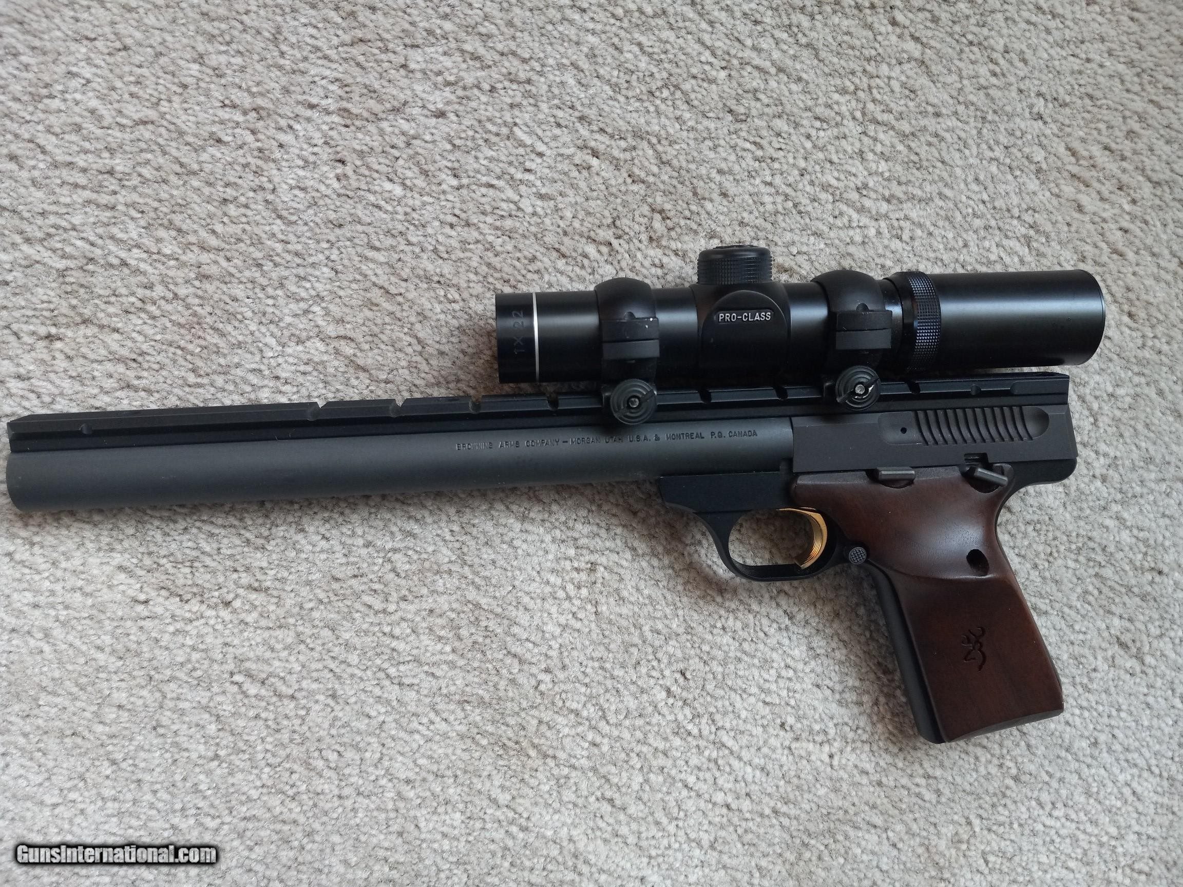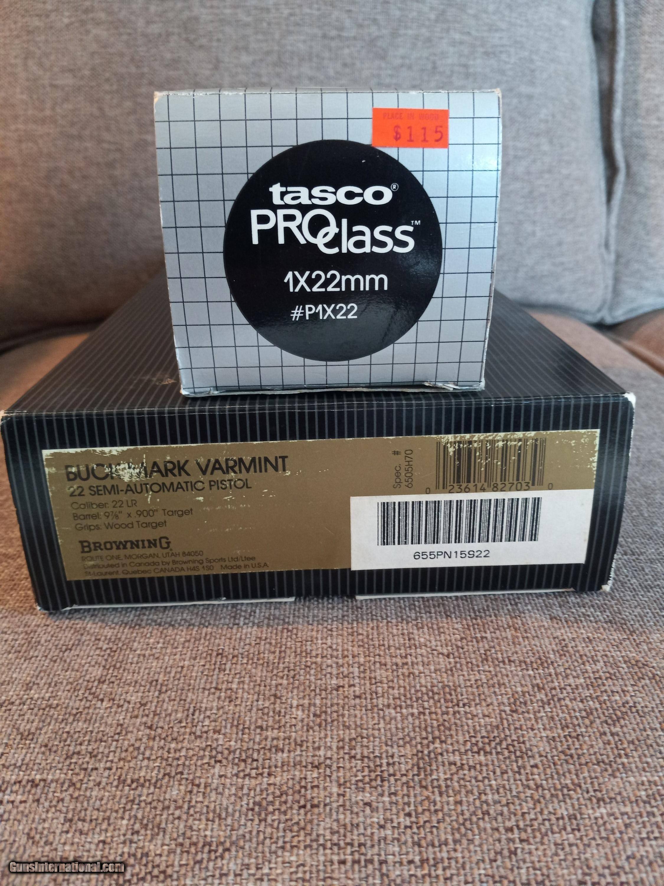 Description: Browning buck Mark Varmint 22 Pistol 9 7/8' bbl w/serrated top rib.....Pictured as it was purchased new from the dealer.... No fore end....No open sights.....Thumb rest walnut traget grips .......Mounted Tasco Pro Class 1X22 scope w/fine cross hair and dot reticle....Clean and crisp rifling..... .900" bull bbl....es with 1 mag..... Original Owners Manual....... Functions flawlessly......FREE shipping to the lower 48......... This is a cash sale and all credit sales will incur a 3.5% lost discount........... I will ship within two business days of receiving payment subject to clearance and your dealer's FFL, subject to verification………. I accept MC/Visa, Disc. Card and USPS money orders and business or bank checks subject to clearance..... California sales OK.................... Thank you for looking. SOLD |