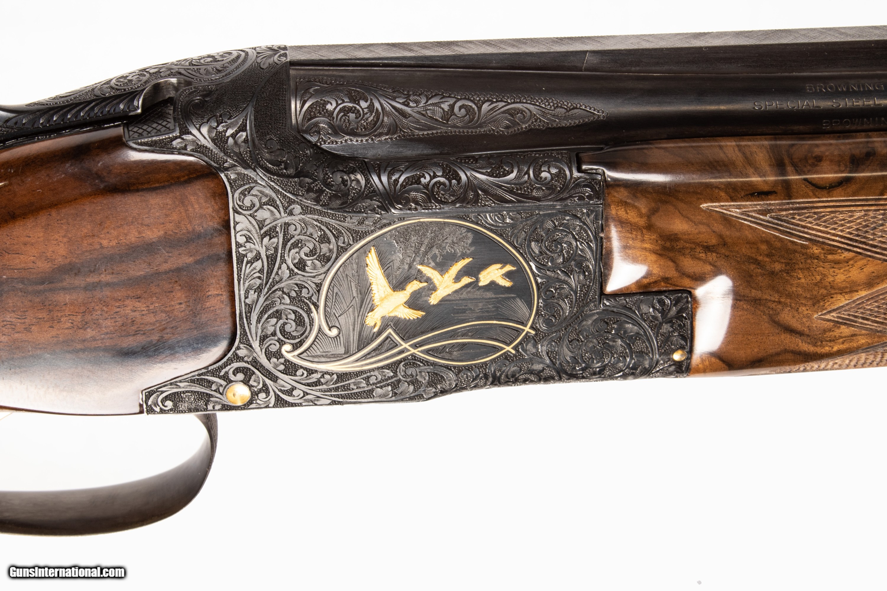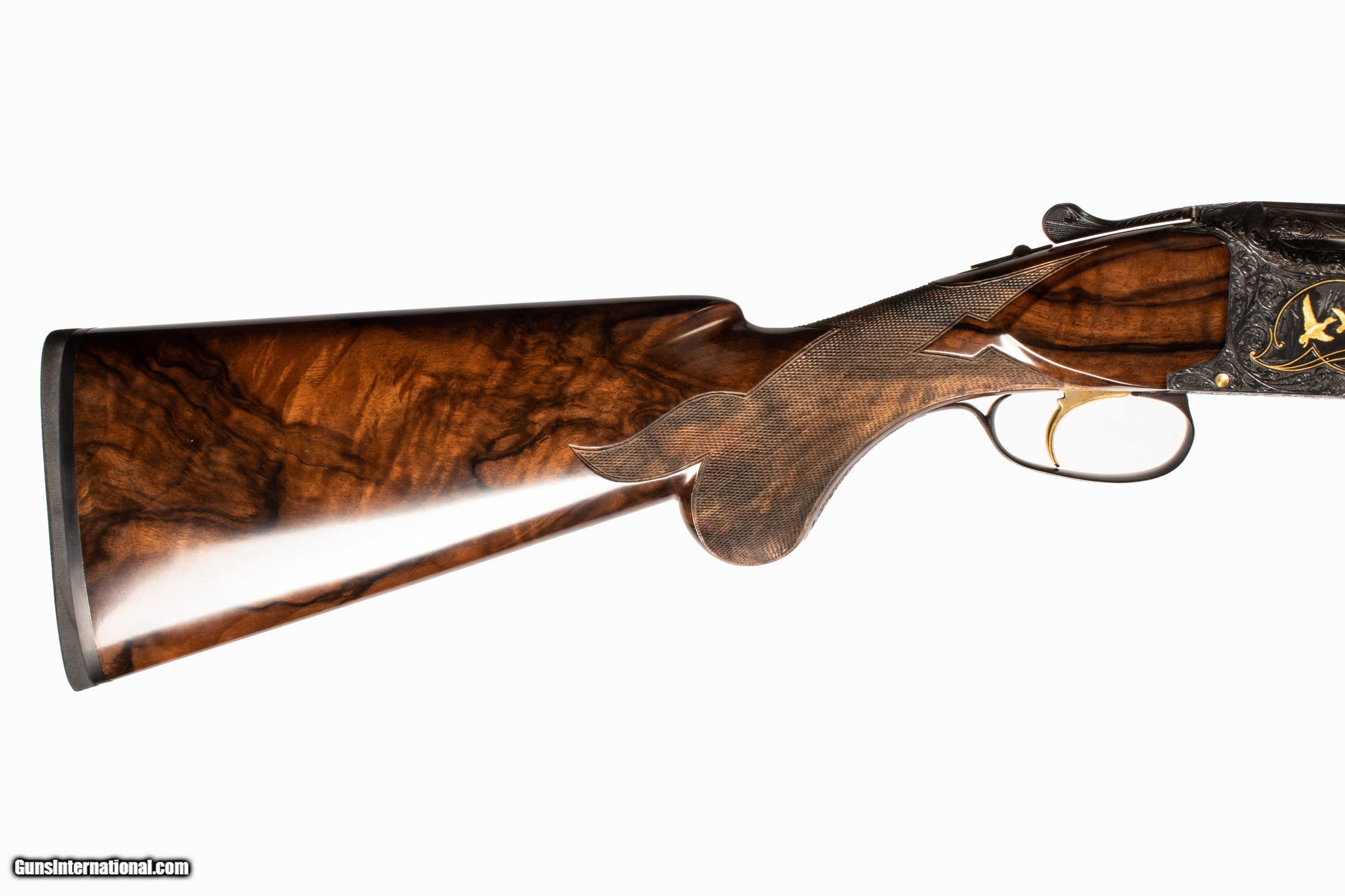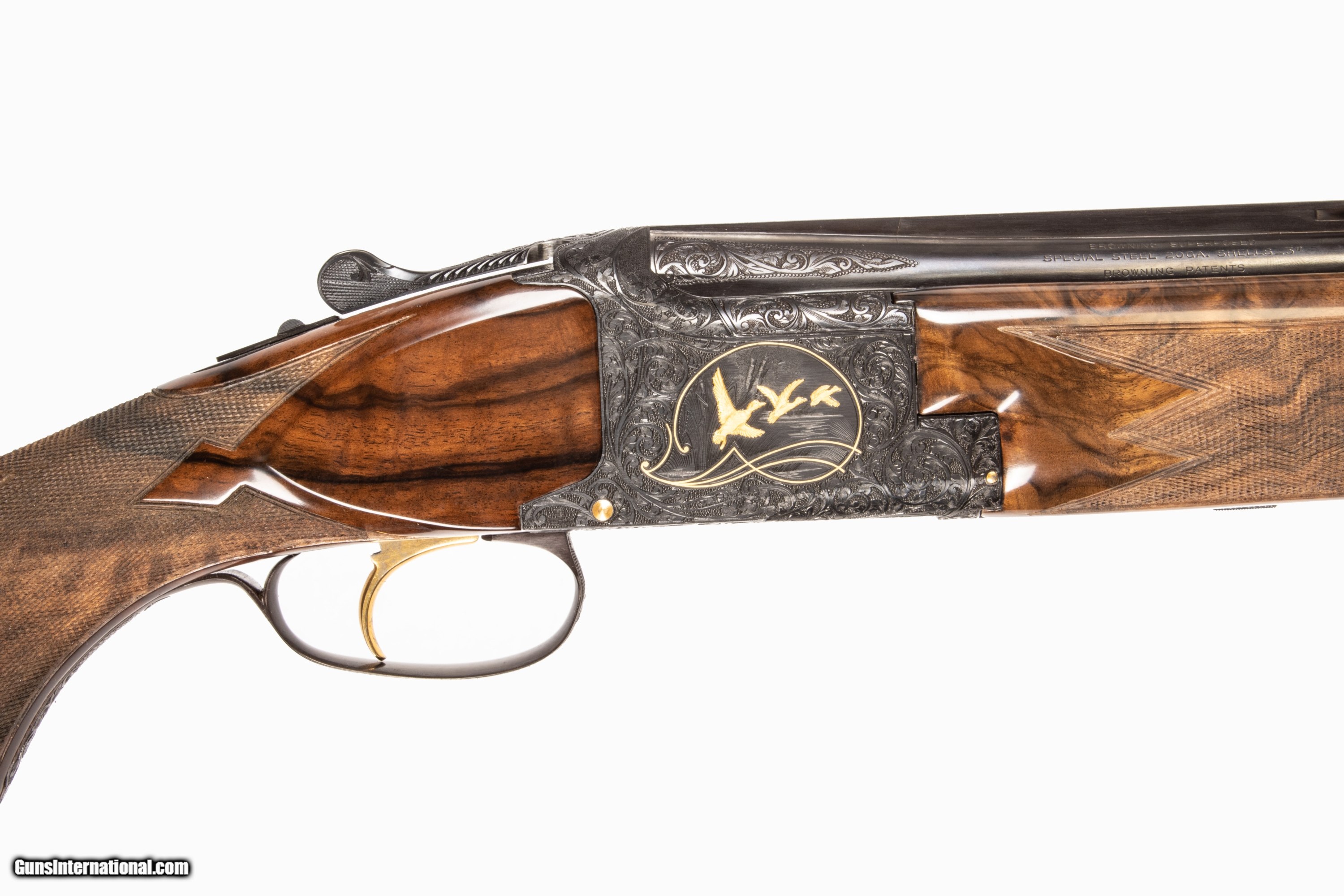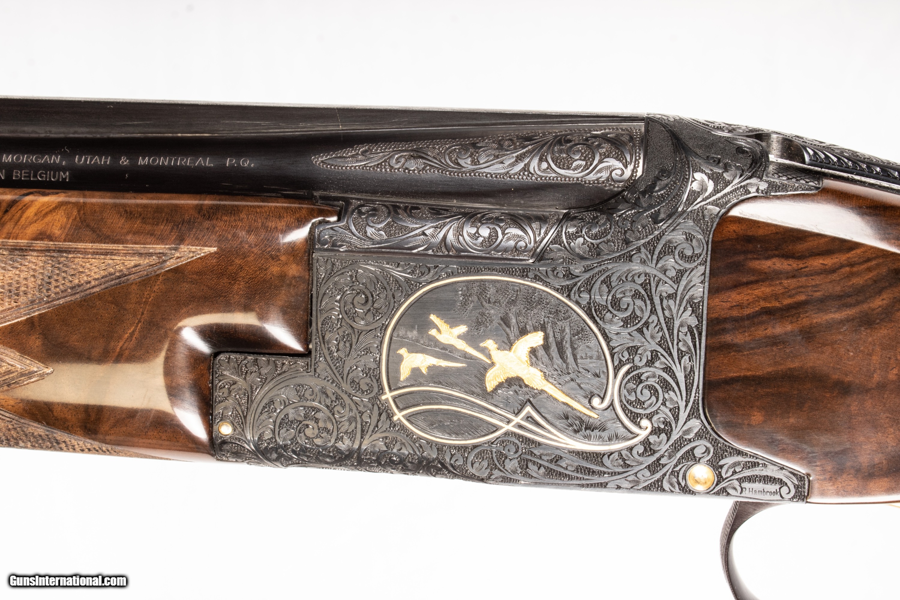 Browning Superposed Midas Grade with 28 inch 20 gauge barrel that has a bright & shiny bores fixed full/full chokes and 3 inch chambers. This combo set alos comes with a 28 inch 12 GA barrel with bright & shiny bores fixed IC/CYL chokes and 2 3/4 inch chambers. The amazing checkered walnut stock has a 14 1/4 inch LOP. This shotgun also comes with a Browning leather hard case. This highly engraved gun is a Richard Hambrook upgrade. The NRA grading condition for this firearm is Excellent and is covered by Dury's Lifetime Warranty.