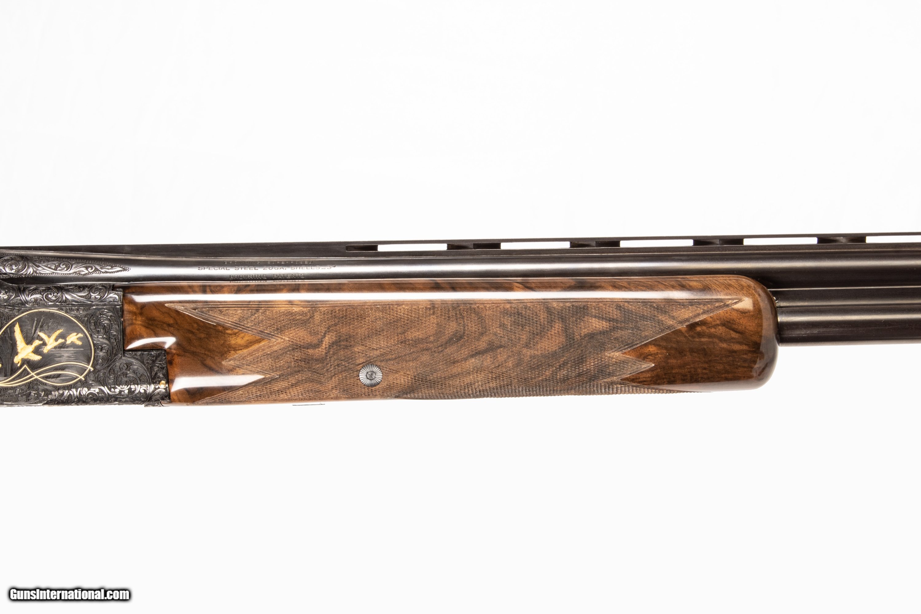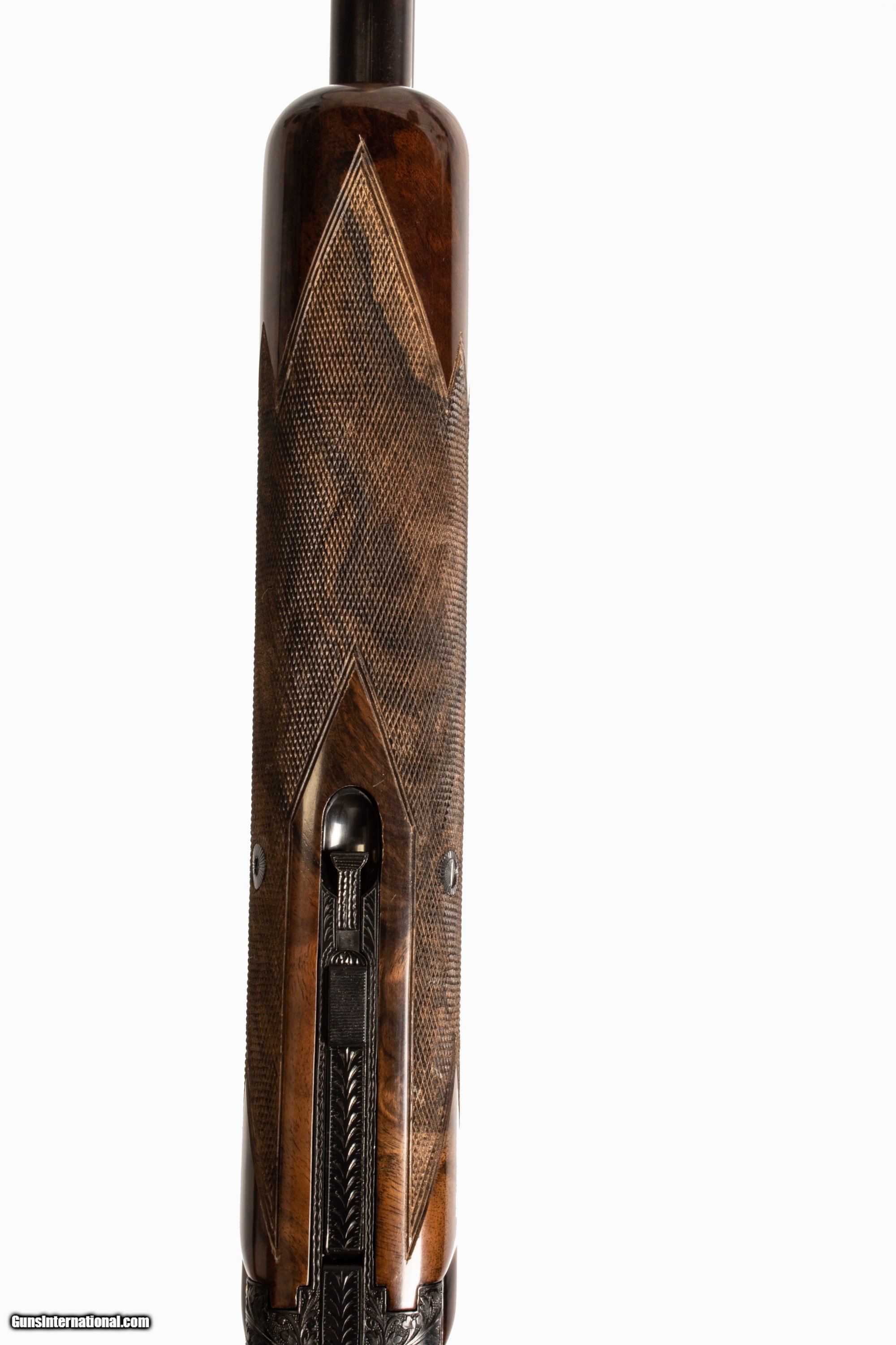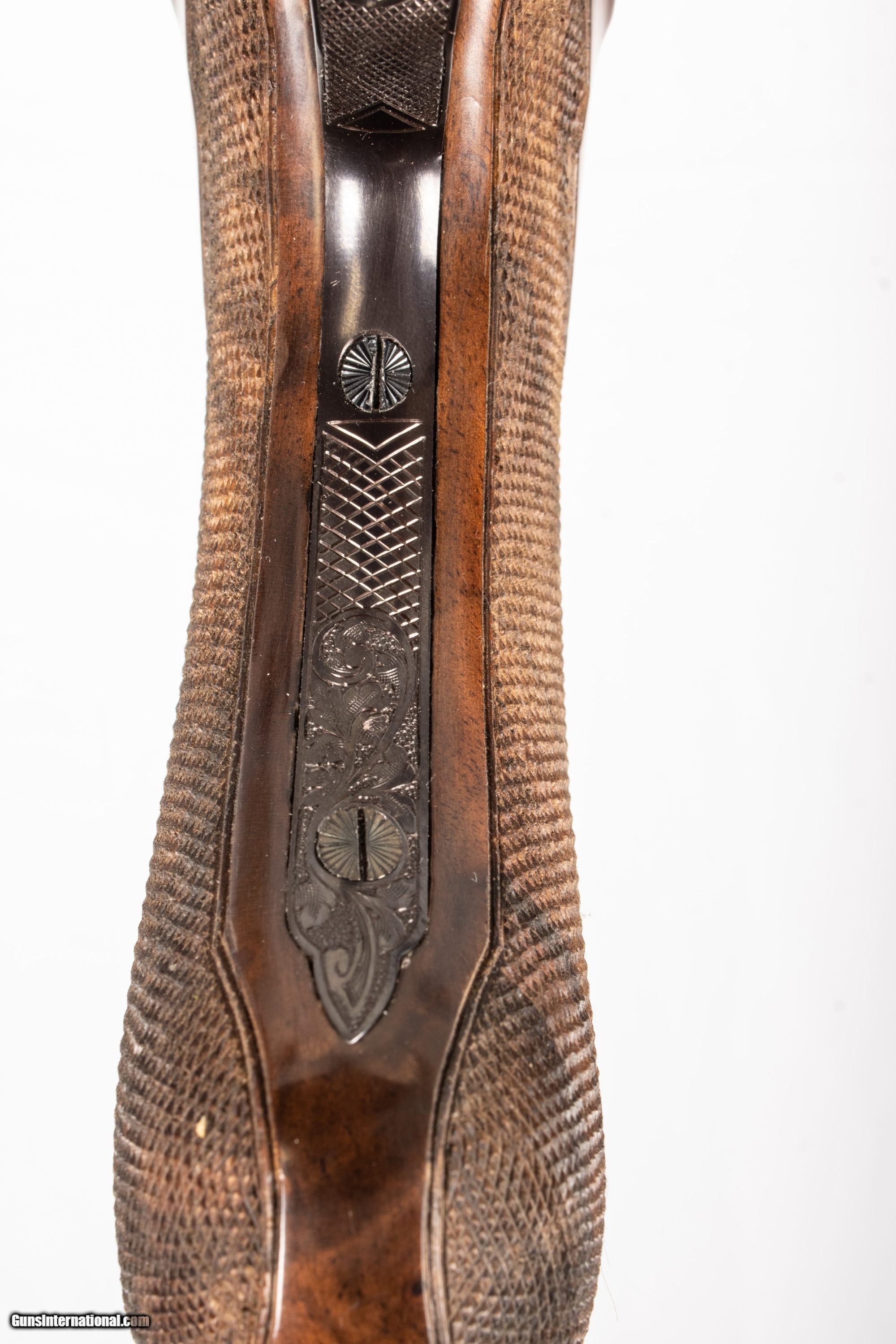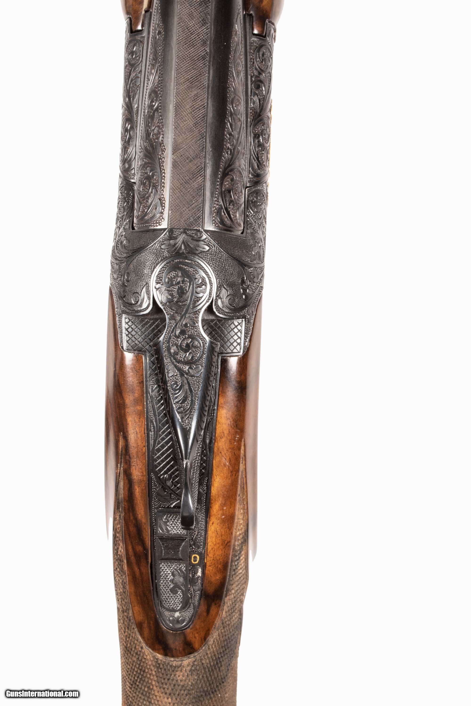 Browning Superposed Midas Grade with 28 inch 20 gauge barrel that has a bright & shiny bores fixed full/full chokes and 3 inch chambers. This combo set alos comes with a 28 inch 12 GA barrel with bright & shiny bores fixed IC/CYL chokes and 2 3/4 inch chambers. The amazing checkered walnut stock has a 14 1/4 inch LOP. This shotgun also comes with a Browning leather hard case. This highly engraved gun is a Richard Hambrook upgrade. The NRA grading condition for this firearm is Excellent and is covered by Dury's Lifetime Warranty.