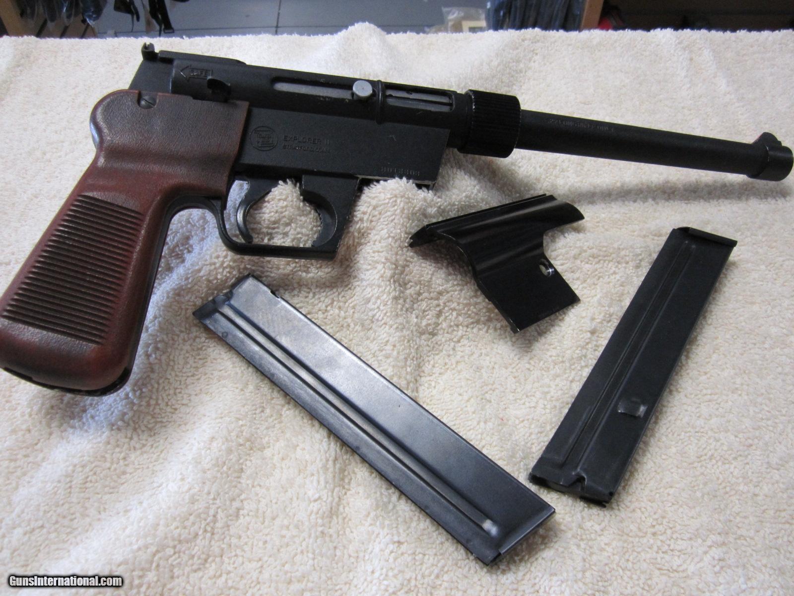 Description: This is a used Charter Arms Explorer II that has a 8" barrel and comes with 2-10 round magazines and is chambered in .22LR. Tough to find pistol. Shipping and insurance is $25.00. SOLD Manufacturer: Charter Arms Model: Explorer II Caliber Info: .22 LR Condition: used Item Location: Parker Az |