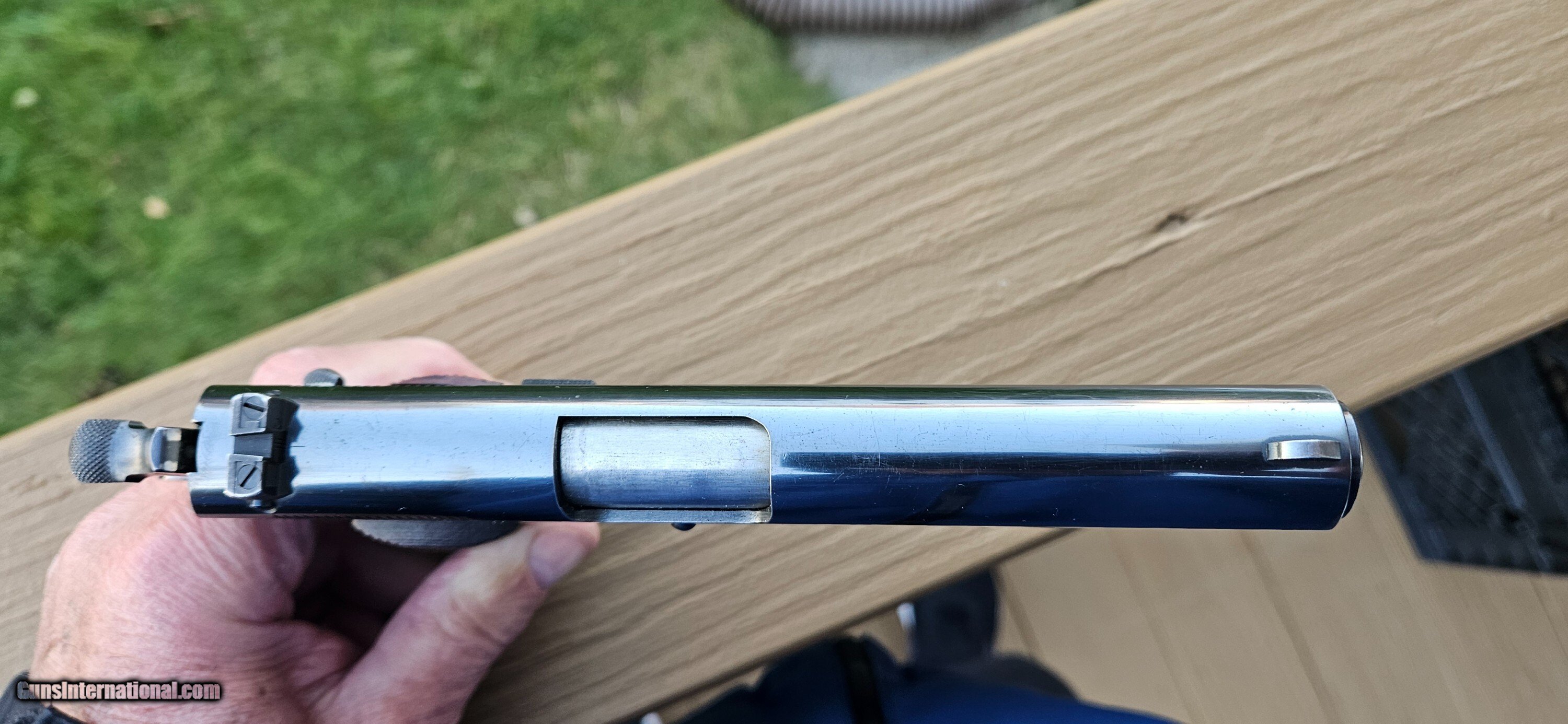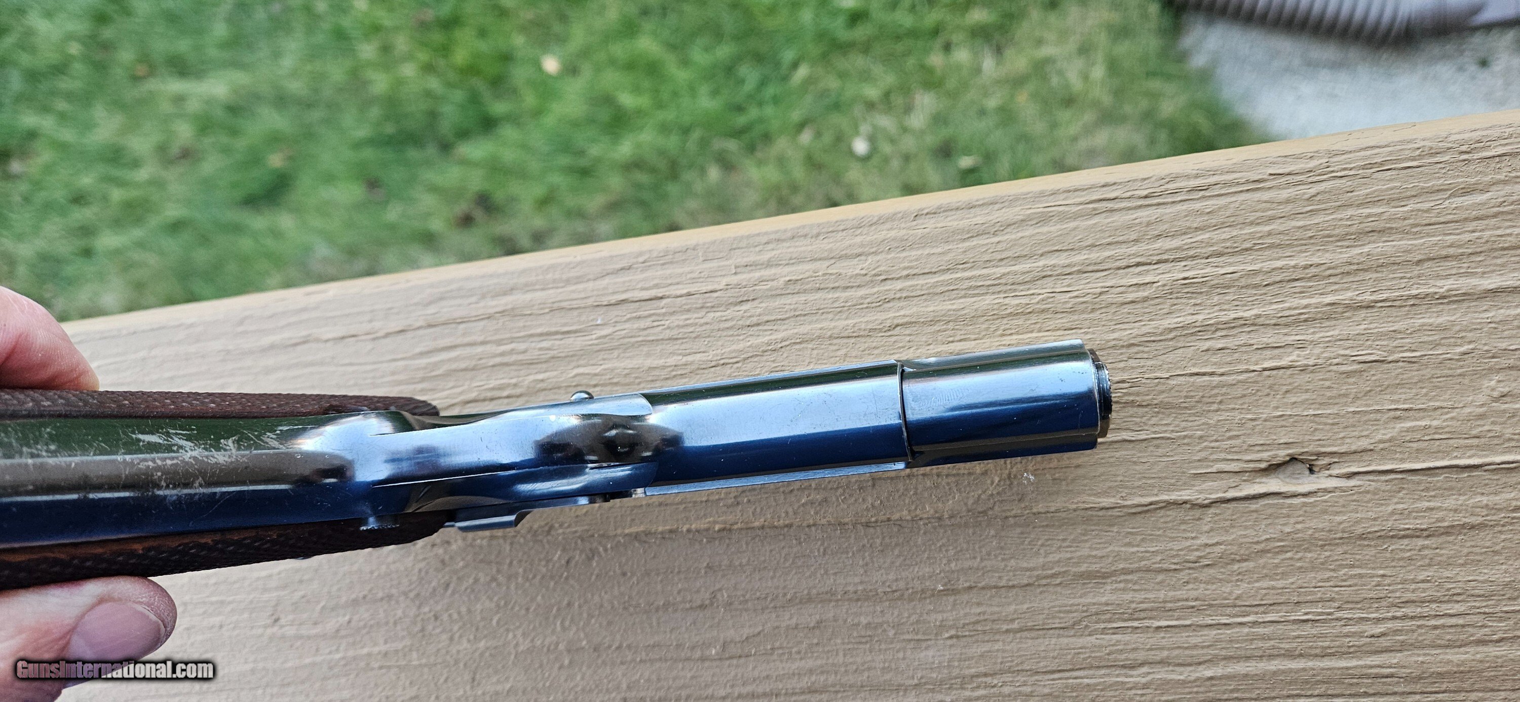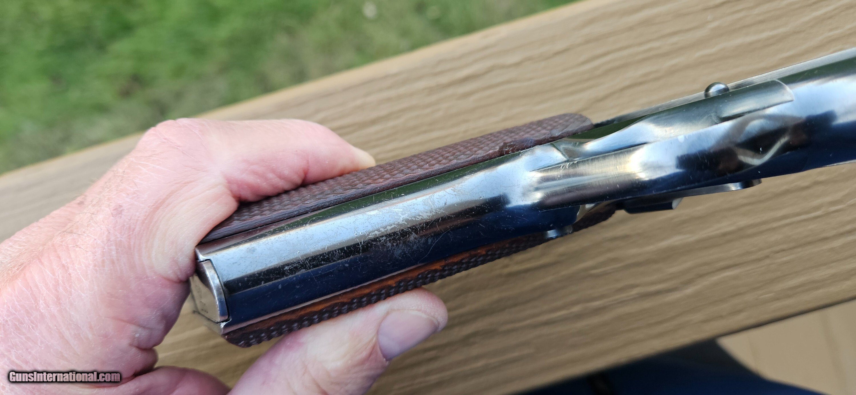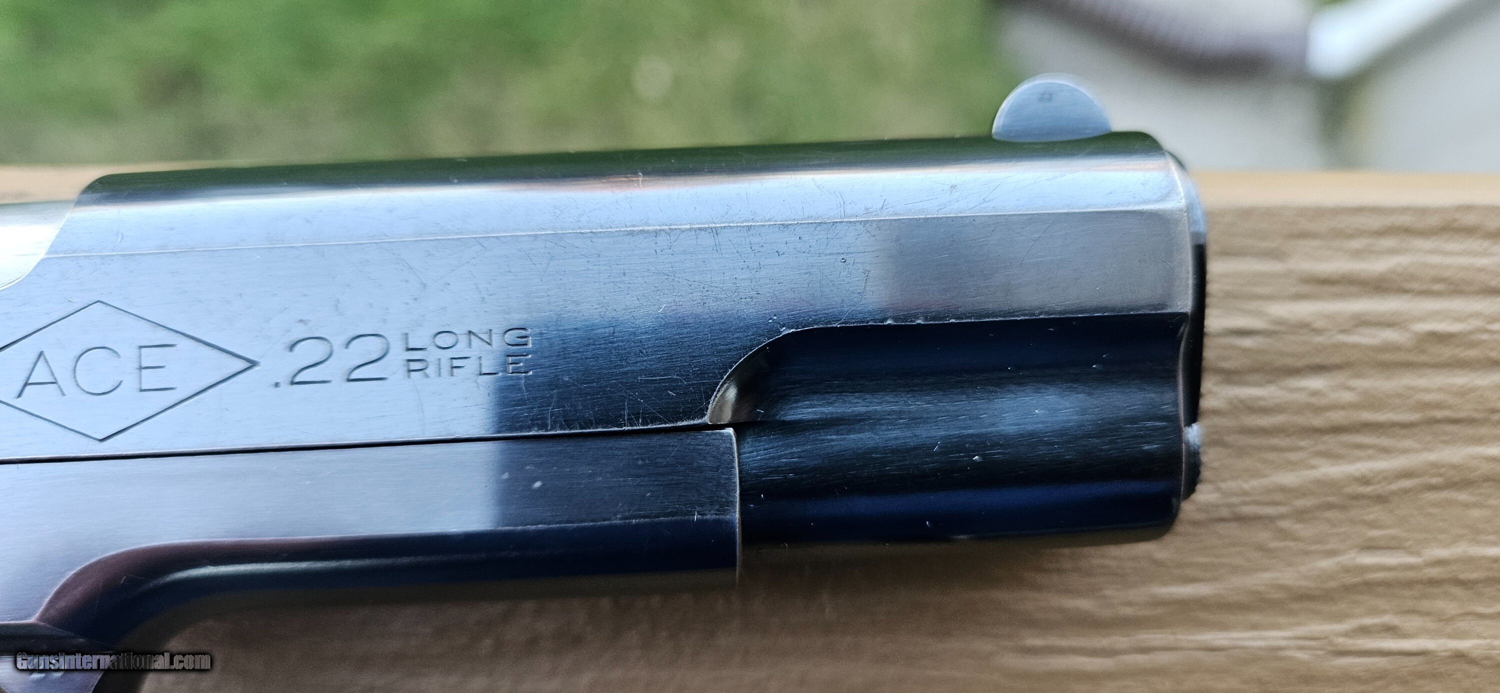 Colt Ace Pre War 1931 Mfg. First Year Production in Amazing Original Condition,beautiful early Colt High Polish blue,only very slight wear on the high edges and grip strap,correct two tone mag in excellent condition,grips also in excellent condition,slide is serial numbered to the frame,this is probably the best pre war Ace i have seen,they dont come up for sale in this condition often. $4500.00 + $50.00 shipping