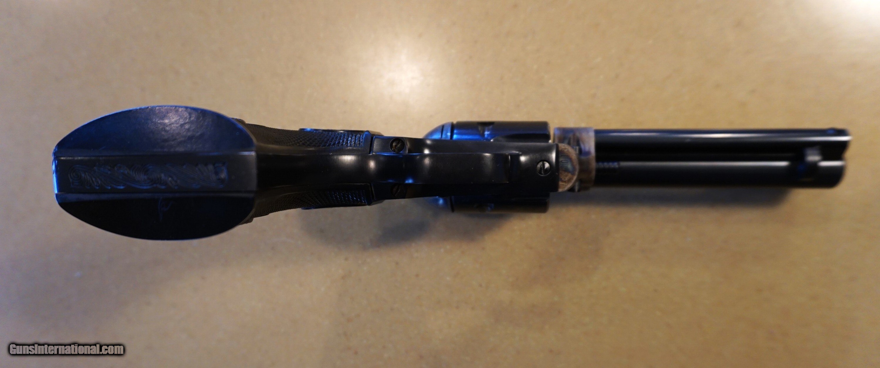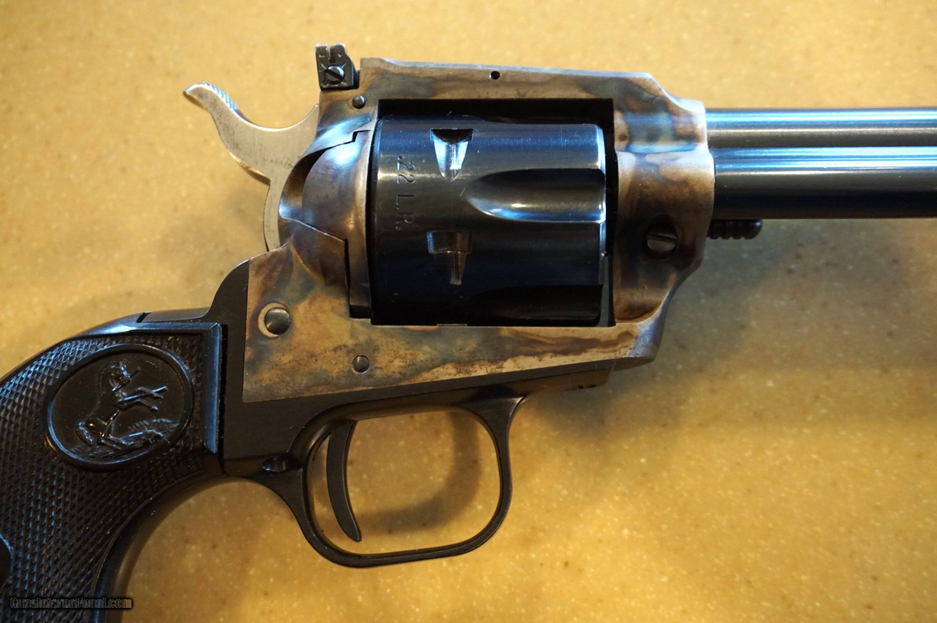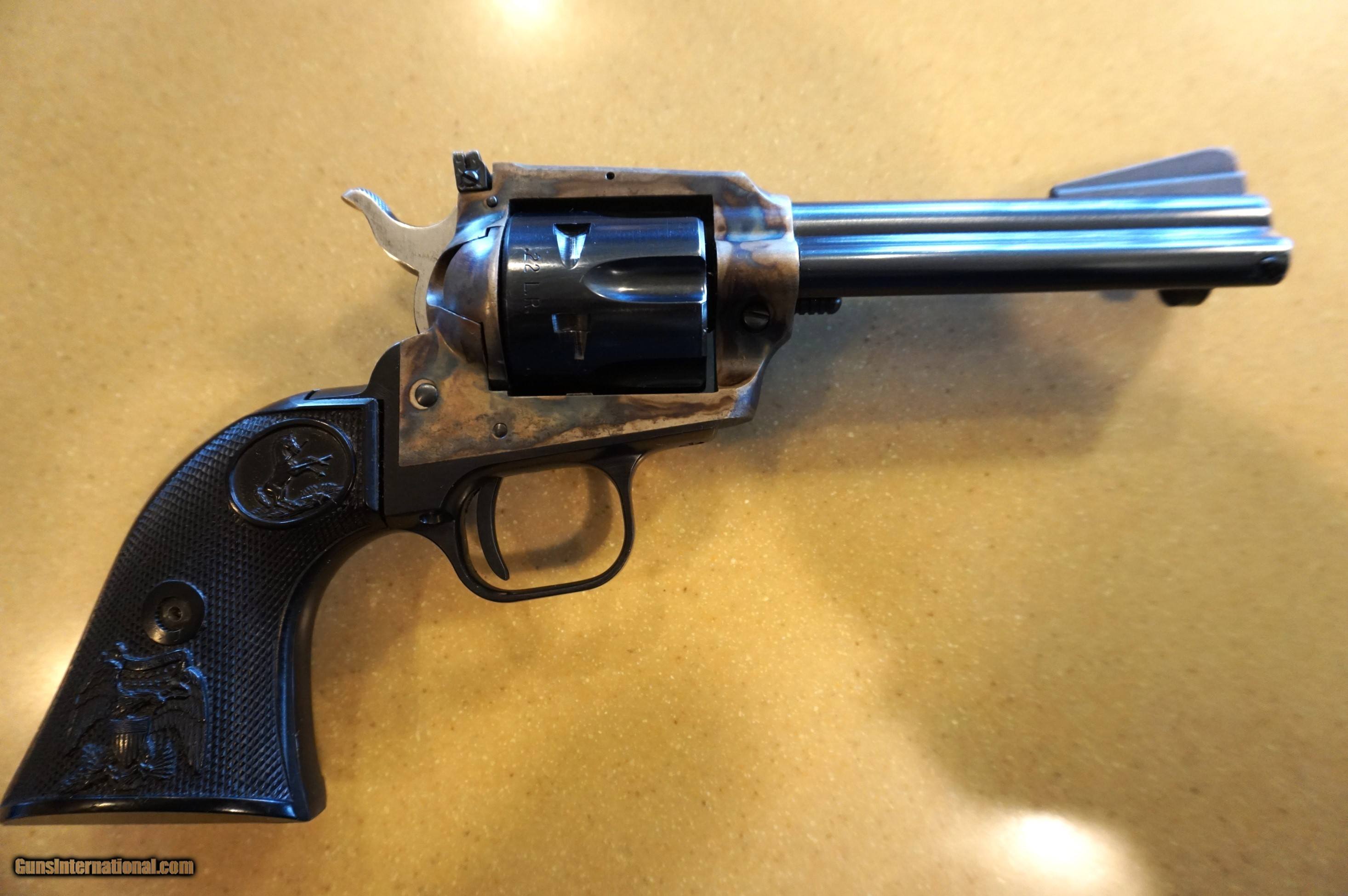 Description: Colt New Frontier .22 LR SAA. Hard to find 4 3/8" barrel. Easily rated 95% with vibrant case colors. Very slight muzzle holster wear as shown and one small scratch on bottom of left grip panel. This is a single cylinder gun. no 22 Mag, and no box. Great shooter. Rattlesnakes hate it! 1974 manufacturer date. Not for sale in California. Buyer pays actual shipping cost. Open to reasonable offers SOLD Handgun Caliber: .22 Long Rifle Manufacturer: Colt Model: New Frontier Serial Number: G109387 Barrel Length: 4 3/8 Condition: very good Metal Condition: excellent Bore Condition: Excellent Action: single action Manufacture Date: 1974 |