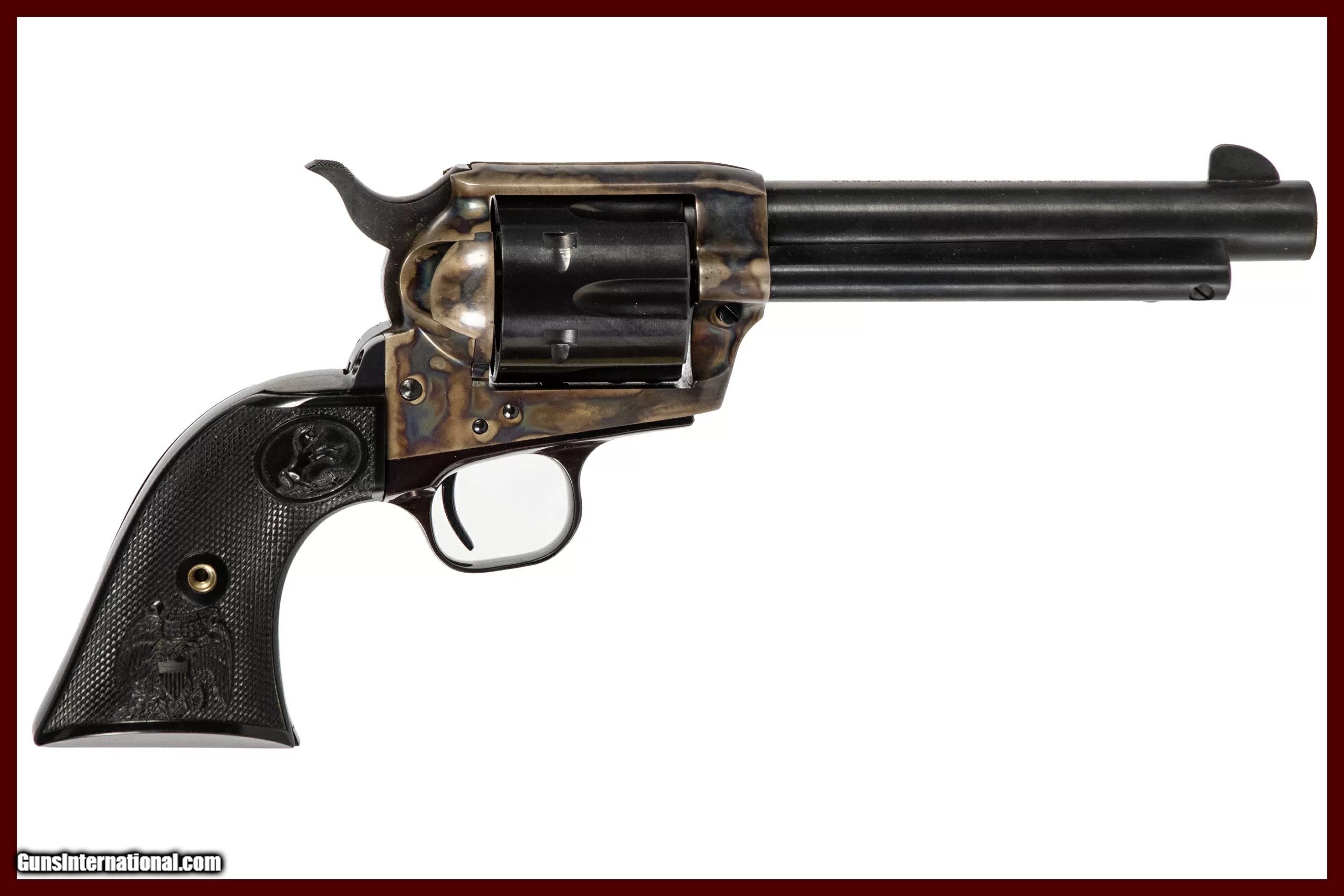 Description: Colt Single Action Army 3rd Generation chambered in 45 Long Colt with a 5½ inch barrel, pristine bore with pristine rifling as this revolver is unfired . This revolver comes with the original box. The NRA grading condition for this USED firearm is Excellent. Dury's Lifetime Warranty: All firearms purchased from Dury’s Gun Shop, NEW or USED, are covered by a lifetime warranty. We will repair or replace, at our discretion, any firearm purchased from Dury’s Gun Shop, Inc. for as long as it is owned by the purchaser. This warranty is not transferable. WE BUY GUNS! NO COLLECTION TOO BIG OR SMALL FOR OUR GUNS INTERNATIONAL CUSTOMERS ALL OF OUR FIREARMS CAN BE PURCHASED DIRECTLY FROM OUR DURY'S GUNS SITE ! SOLD Manufacturer: Colt Model: Single Action Army Caliber Info: 45 LC Barrels: 5inches |