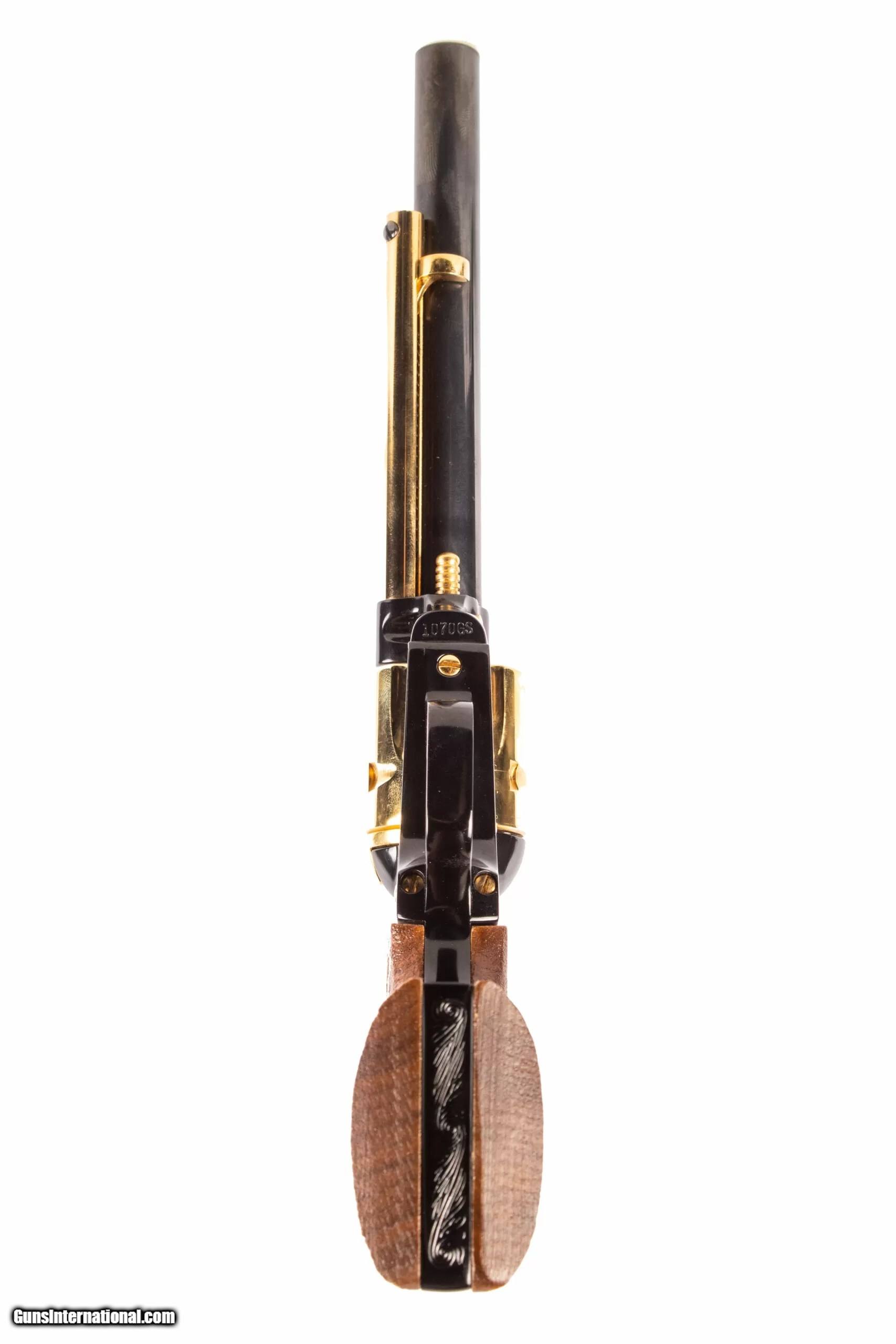 Description: Colt Single Action Frontier Scout Golden Spike Edition chambered in 22 Long Rifle with a 6 inch barrel, bright shiny bore with nice sharp rifling and excellent working action. This revolver was created to commemorate the joining of the first transcontinental railroad of the Central Pacific to the Union Pacific Railroads. As such, Colt created this revolver to reflect the significance of the occasion by taking inspiration from the ceremonial golden spike which was crafted from 18 karat gold. Finished with a deep blue complimented by hints of gold, this revolver captures that very essence and comes with a presentation case to help appreciate its pedigree to such a time in history. The NRA grading condition for this USED firearm is Excellent. Dury's Lifetime Warranty: All firearms purchased from Dury’s Gun Shop, NEW or USED, are covered by a lifetime warranty. We will repair or replace, at our discretion, any firearm purchased from Dury’s Gun Shop, Inc. for as long as it is owned by the purchaser. This warranty is not transferable. WE BUY GUNS! NO COLLECTION TOO BIG OR SMALL FOR OUR GUNS INTERNATIONAL CUSTOMERS ALL OF OUR FIREARMS CAN BE PURCHASED DIRECTLY FROM OUR DURY'S GUNS SITE ! SOLD Manufacturer: Colt Model: Single Action Frontier Caliber Info: 22 Long Rifle Barrels: 6inches |