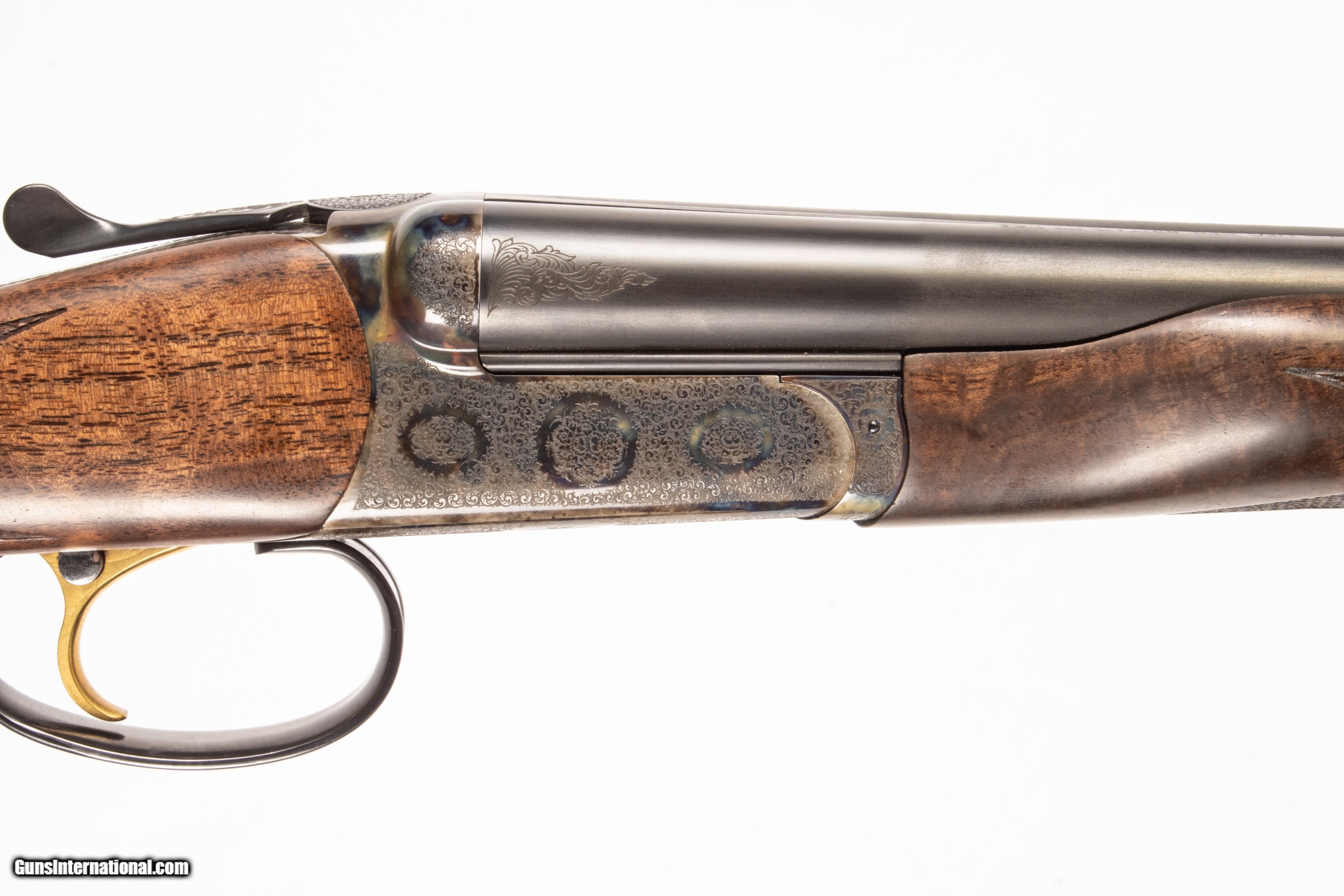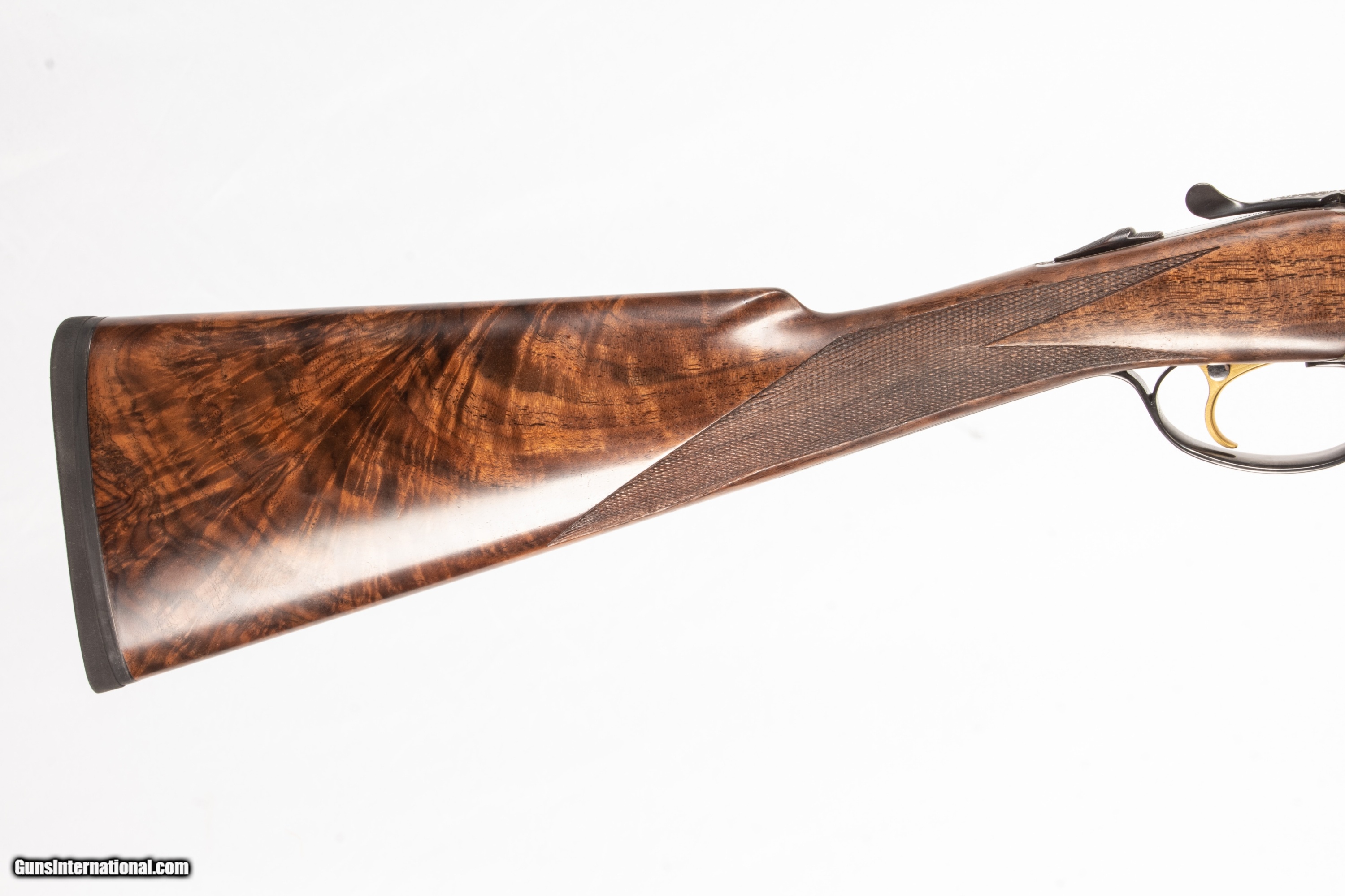 Connecticut Shotgun Manufacturing RBL Reserve chambered for 2 3/4 inch 28 gauge shells with 28 inch barrels and IM/F screw-in chokes bright & shiny bore and case. This firearm has a solid game rib exhibition full feathercrotch American black walnut straight grip stock beavertail forend TruOil finish single selective trigger automatic ejectors full coverage miniature rose bouquet scroll engraving over spectacular case coloring factory butt plate and is hand made in the USA by the master gunsmiths of Connecticut Shotgun. This is a used firearm that is in excellent condition and is covered by Dury's Lifetime Warranty.