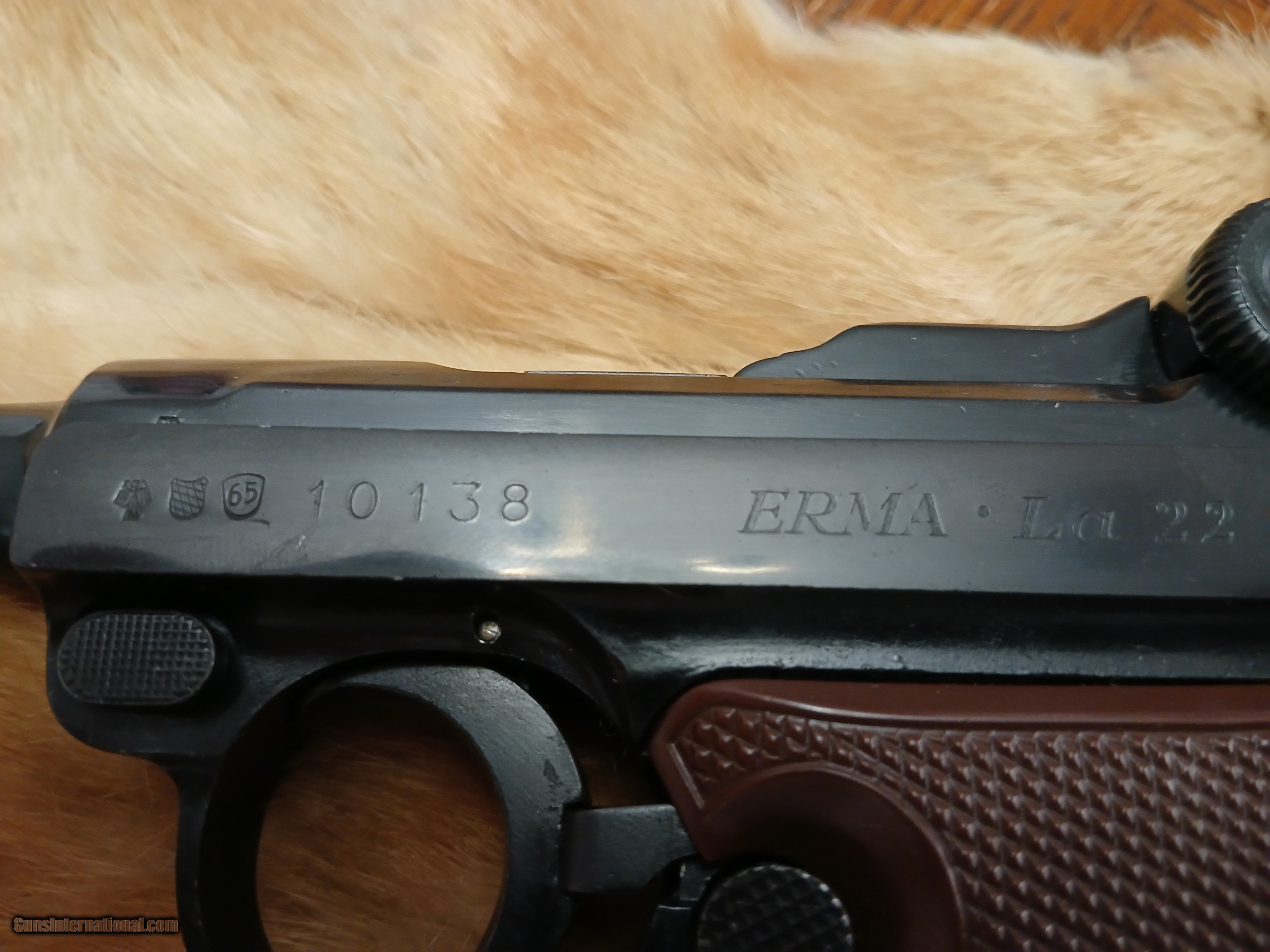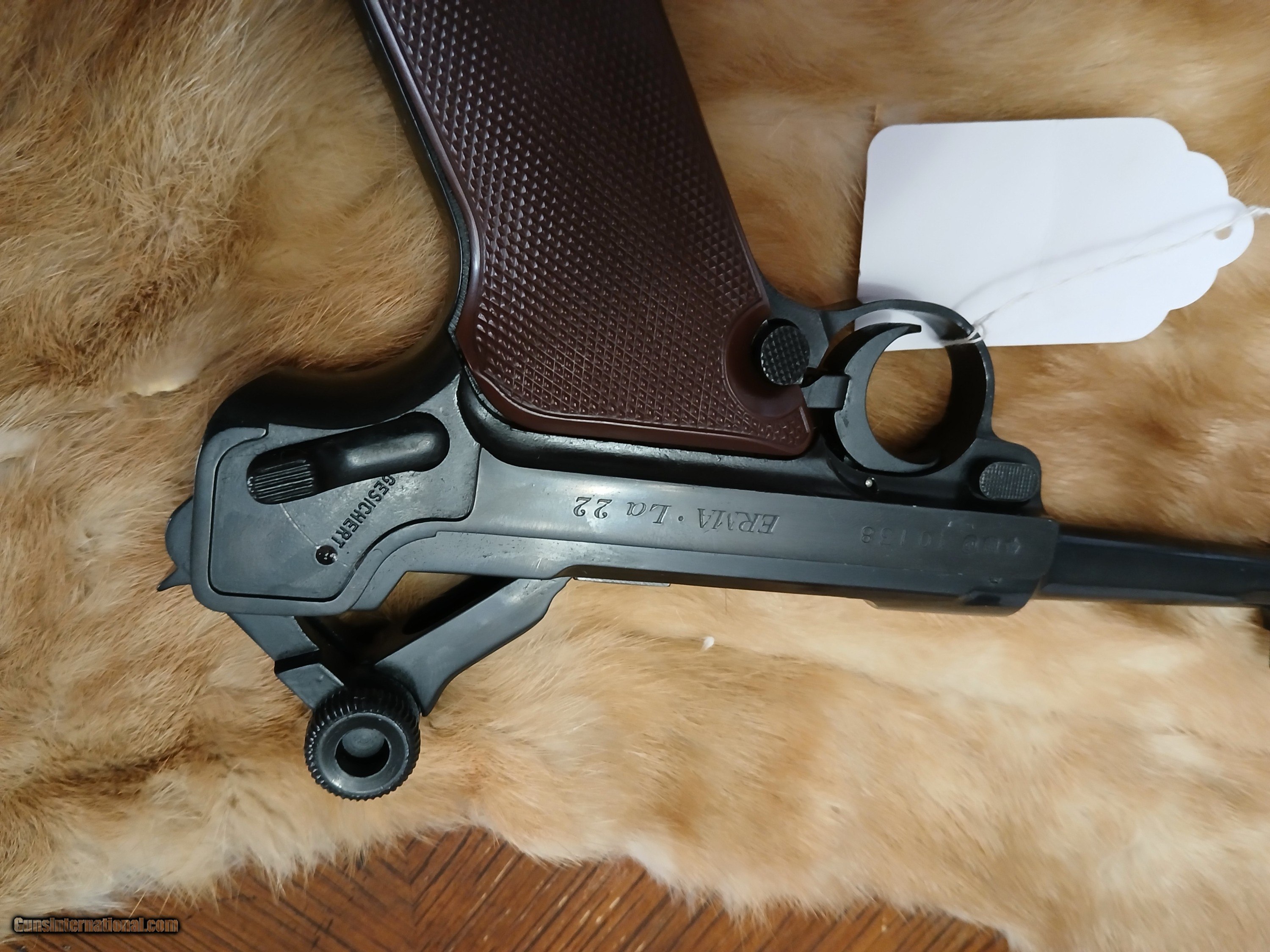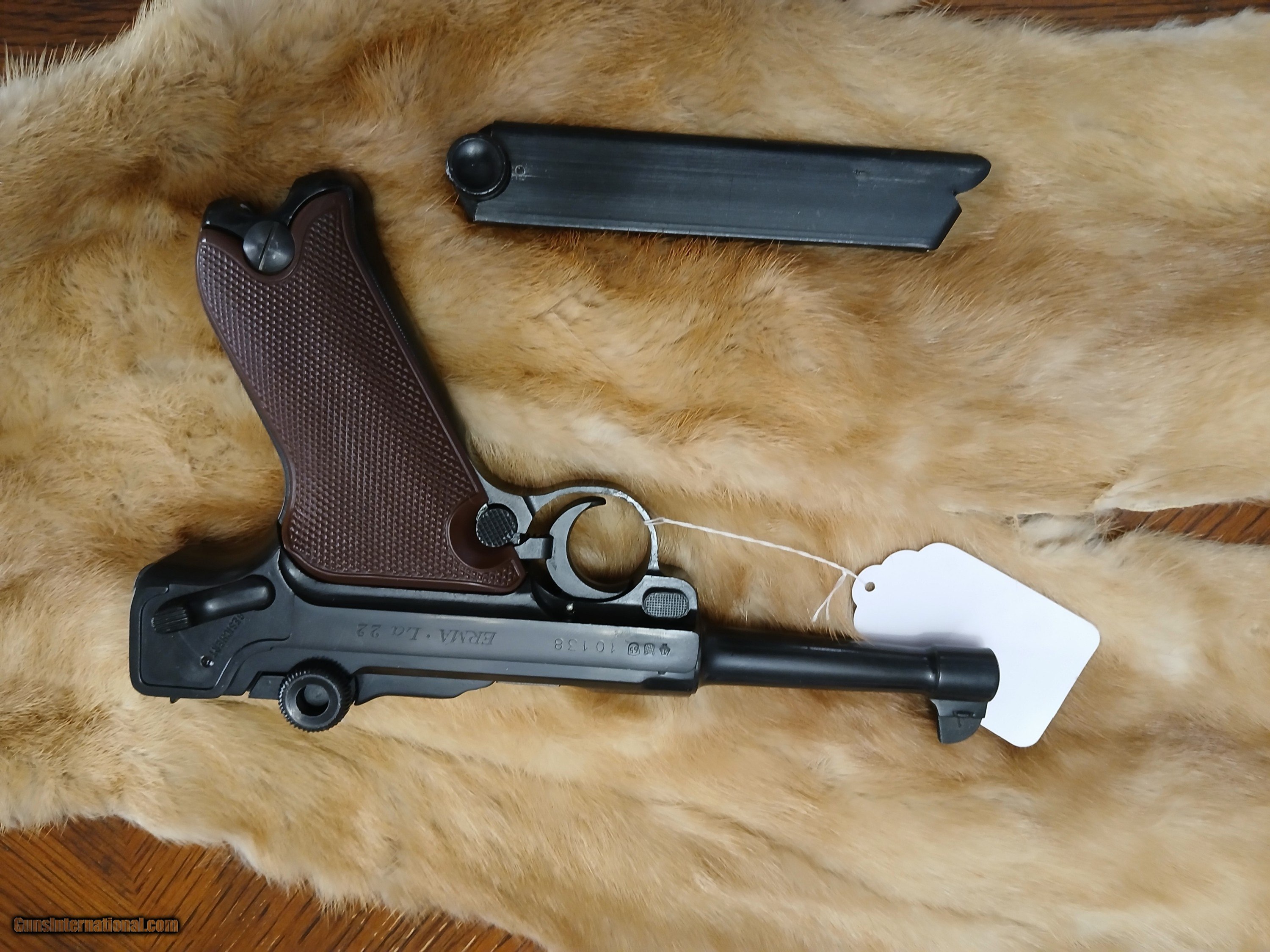 Description: Erma Luger .22 Auto La.22 with one magazine. $400.00 This is a very nice Erma luger .22 auto Pistol. No box or paper work is included. What you see is what you get. This little pistol looks to have been used very little and is great shape. Check out the photos. Please reach out to us with any questions you may have before you purchase. This item is for sale in our shop as well as this listing. If you purchase, we will pull the item from our shelf. Shipping to your FFL will $40.00 and will need to be added for shipping and insurance. Shipping and tracking information will be provided ASAP after fund have been cleared. We make no warranties or guarantees as to the function, fire-ability or safety of doing so on any of this item. Firearm has not test fired by us, however we have tested the action to see if it functions properly for a dry fire. Thank you for looking Custom Gunworks SOLD Manufacturer: Erma Model: Luger |