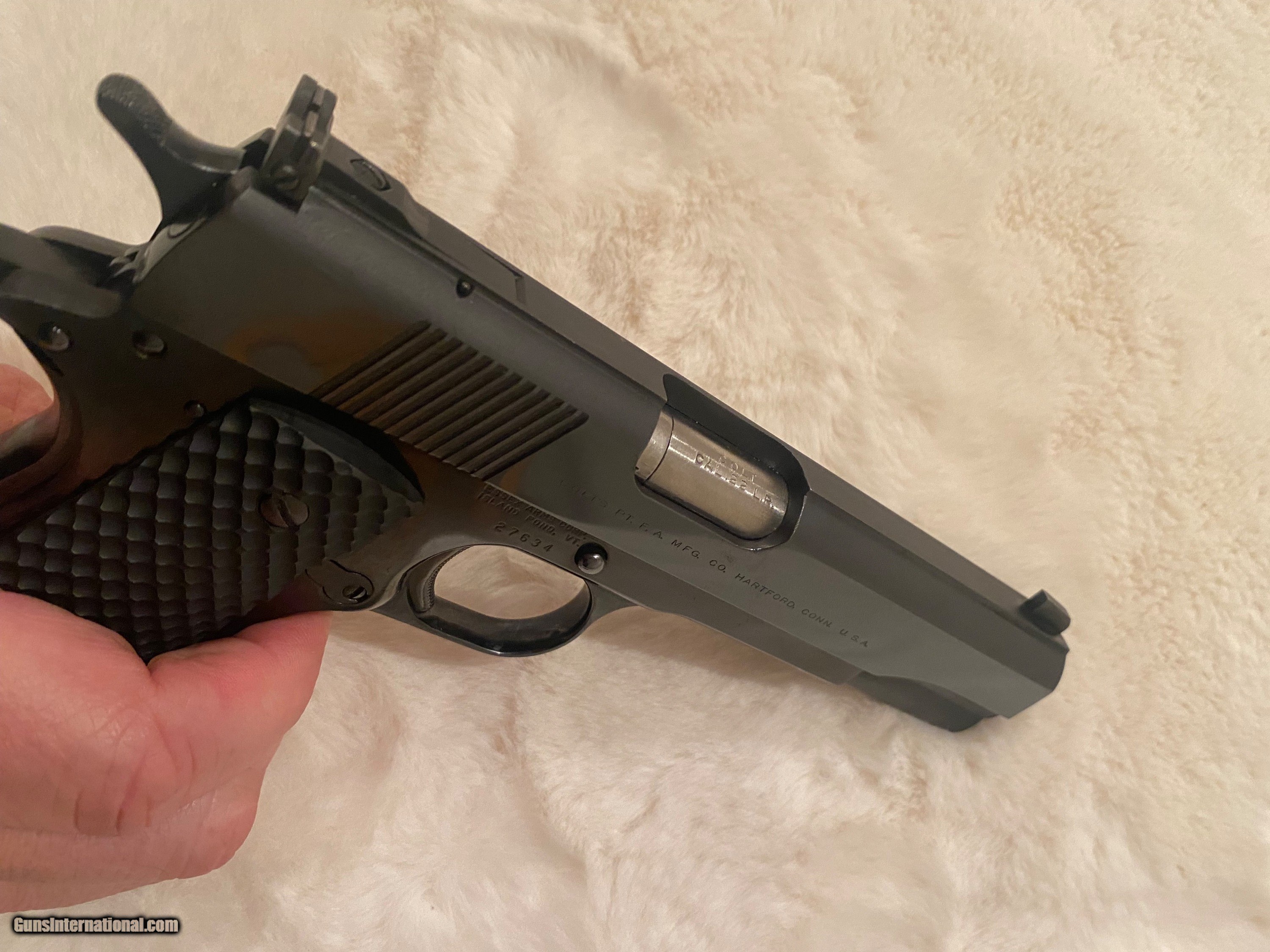 Description: This is an Essex Arms frame with a 60's era 22 conversion slide on top. Pistol is in nice shape, the colt conversion is all original, the Essex frame has been blued, the look well together and function just as well. Cokes with 2 factory Colt 22 conversion mags, no box. SOLD |