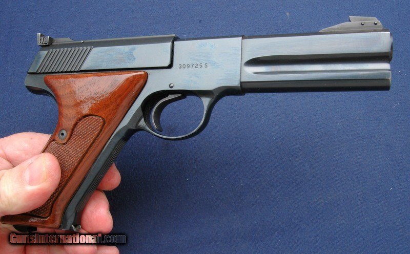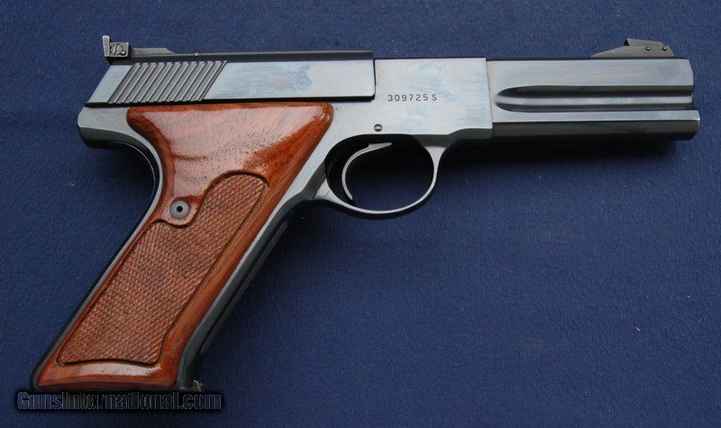 Description: Beautifull 3rd Gen Match Target Woodsman with the 4.5" barrel. Mint bright bore, basically a 98% gun with a couple of scratches that barely picture. The most obvious is on the right side of the frame above the serial number. A little edge wear on the trigger guard. Grips are mint, great trigger, bright mint bore. Just a sweetheart! $35 shipping to the lower 48, 3% surcharge for using a CC. If you choose to pay with a personal check, we will hold the item for up to 10 days to make sure that it clears. Please expedite such pymts as we will hold an item on your word for 5 days. SOLD Handgun Caliber: .22 Long Rifle |