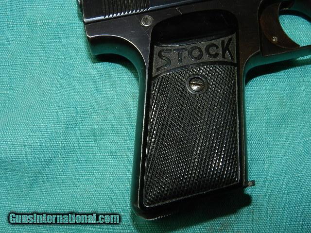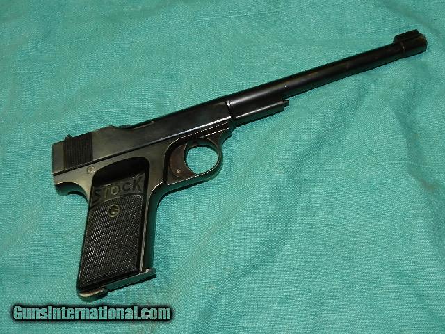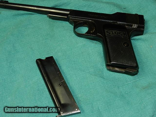 Description: A rare pre WWII semi-auto .22 lr cal. target pistol made by Franz Stock of Berlin, with a 7 1/2" barrel with a super clean shiny rifled bore. The action is very good, and the black hard rubber factory grips are very good showing very little weares with one blued mag, and the blue finish remaining is about 90% with some fading. These were made right after WWI and not many were imported into the U.S. This gun looks like a Walther Olympic pistol. We don’t have asite .I prefer money orders or a check. Item ships when funds come in. If you can only pay with a card let me know. I’m sorry I don’t list my phone number, did that for 30 days, never again.. I can’t talk on the phone all day…who will ship the guns? I’m just one person, and it’s very bust here! I do a brisk volume! I hope you like my wide selection of unusual guns, knives and gun parts. Shipping price determined by zip code. I try to keep the prices affordable, which means I make less money than most dealers. You won’t get altitude sickness with my prices! I consistently have the best selection of older guns If you BUY IT NOW you must still contact us for details buy it now doesn't end the sale, it just sends an email telling us you want to buy this gun. A phone call won’t secure a sale! Not home many times, the first buyer by email buys the gun !Thissite doesnot close down a sale when you do a BUY IT NOW like Ebay!I can get six buy it nows in an hour, first buyer to email gets the guns, others are in second place! Best to send another email . Sometimes not home to get calls. Some guns are required shipment to a gun dealer near you for a transfer to you when it arrives. With the widest selection of older guns at great prices, We don’t have a store, and sell on the internet only. SOLD Curio/Relic: Yes |