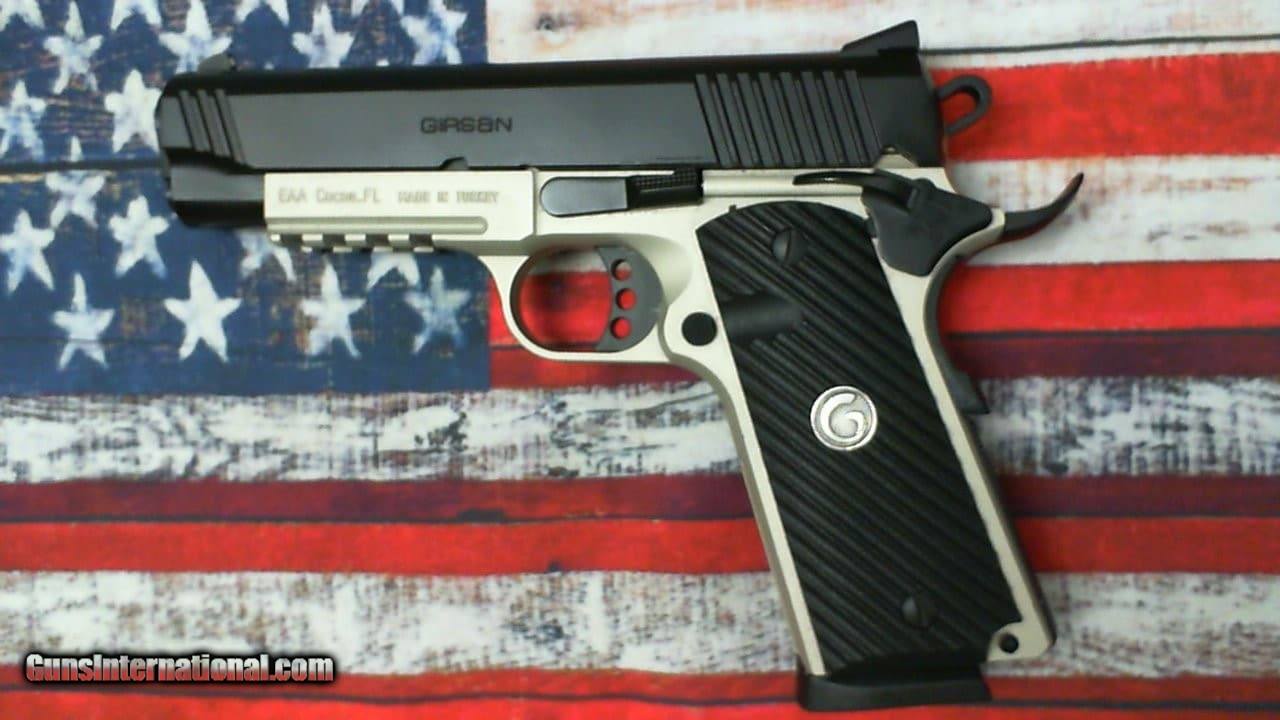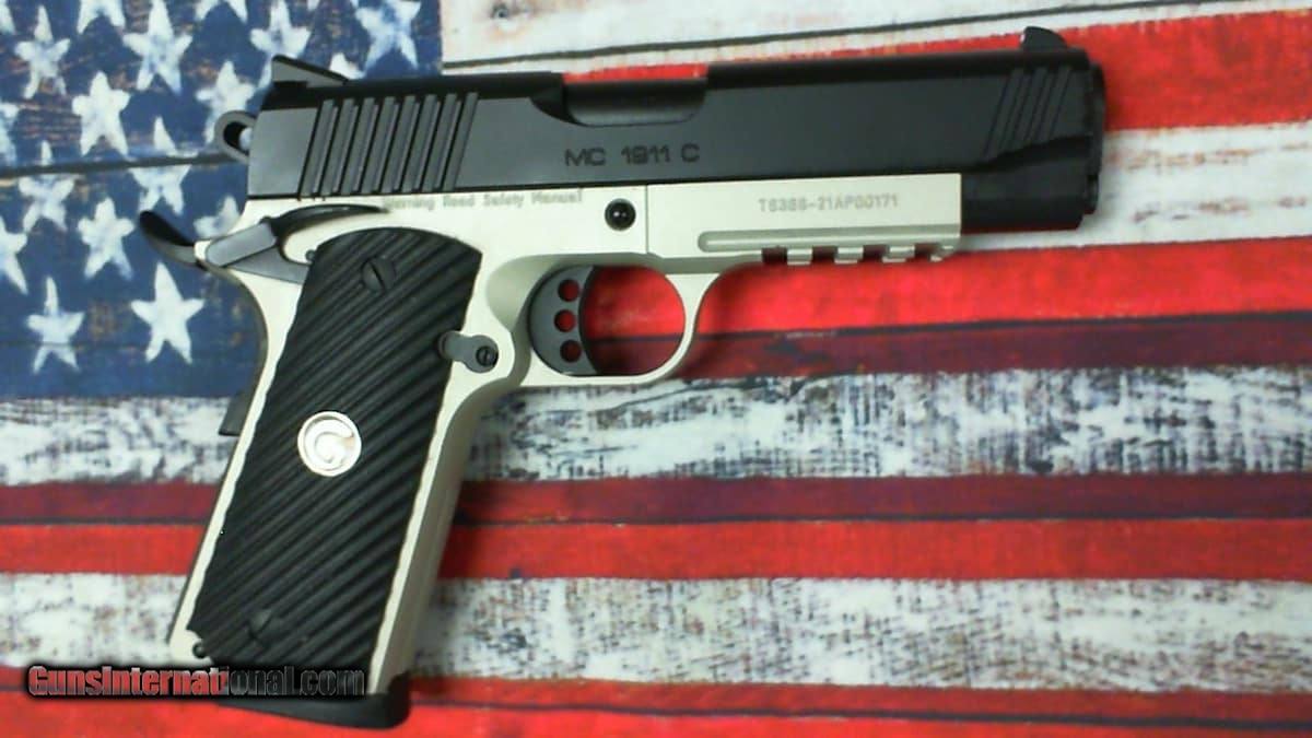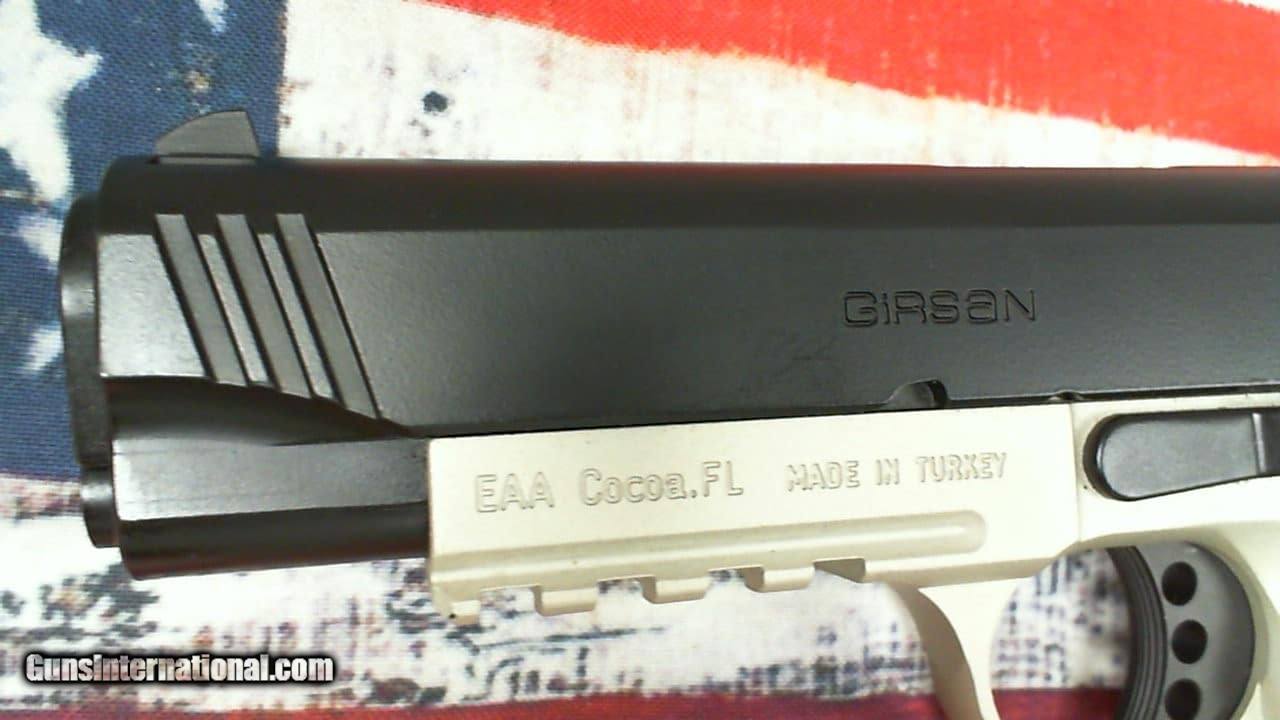 Description: Guns Listing ID: 551287 The GiRSAN MC1911C brought to you by EAA is a high quality 1911 Commander that is the perfect personal protection or home defense option for anyone on a tight budget. With many of the same features as the more popular 1911 pistols, the MC1911C was built to perform on the range, in the field and when you need it most. Purpose built for the legally armed citizen, with a steel fame, ambidextrous safety and Novak style rear sight you get a quality pistol on par with the higher priced brand name 1911‚‚s. This is a Commander sized pistol with a full size grip and 8 round magazine paired with a shorter barrel and slide to make it easier to carry. The extended beaver tail with checkered front and backstraps provides great command and control for ideal shot placement. The steel frame is machined with an under barrel accessory rail for a tactical light or laser sight. You get all of the same familiar easy to operate 1911 controls with deep slide serrations to give you a positive grip when manipulating the pistol. Much more than just another 1911, GiRSAN has a reputation for producing top quality reliable firearms at affordable prices. With a safe strong and proven design, the GiRSAN MC1911C from EAA offers excellent value and performance, making it an ideal handgun for legally armed citizens everywhere. EAA GiRSAN MC1911C Specifications and Features: EAA Item Number: 390072 1911 Semi Automatic Handgun Single Action Only Commander Profile .45 ACP 8 Rounds 4.4\" Barrel Compact Steel Frame Under Barrel Accessory Rail Checkered Front and Backstrap Ambidextrous Safety Novak Style 3-Dot Rear Sight Extended Beaver Tail Grip Safety Synthetic Grips Two Tone Finish Overall Length 8\" Weight 2.35 lb SOLD Manufacturer: GIRSAN Model: mc 1911 c Caliber Info: 45 ACP Condition: Used - Non-Certified Barrels: 5 BARREL Finish: BLACK |