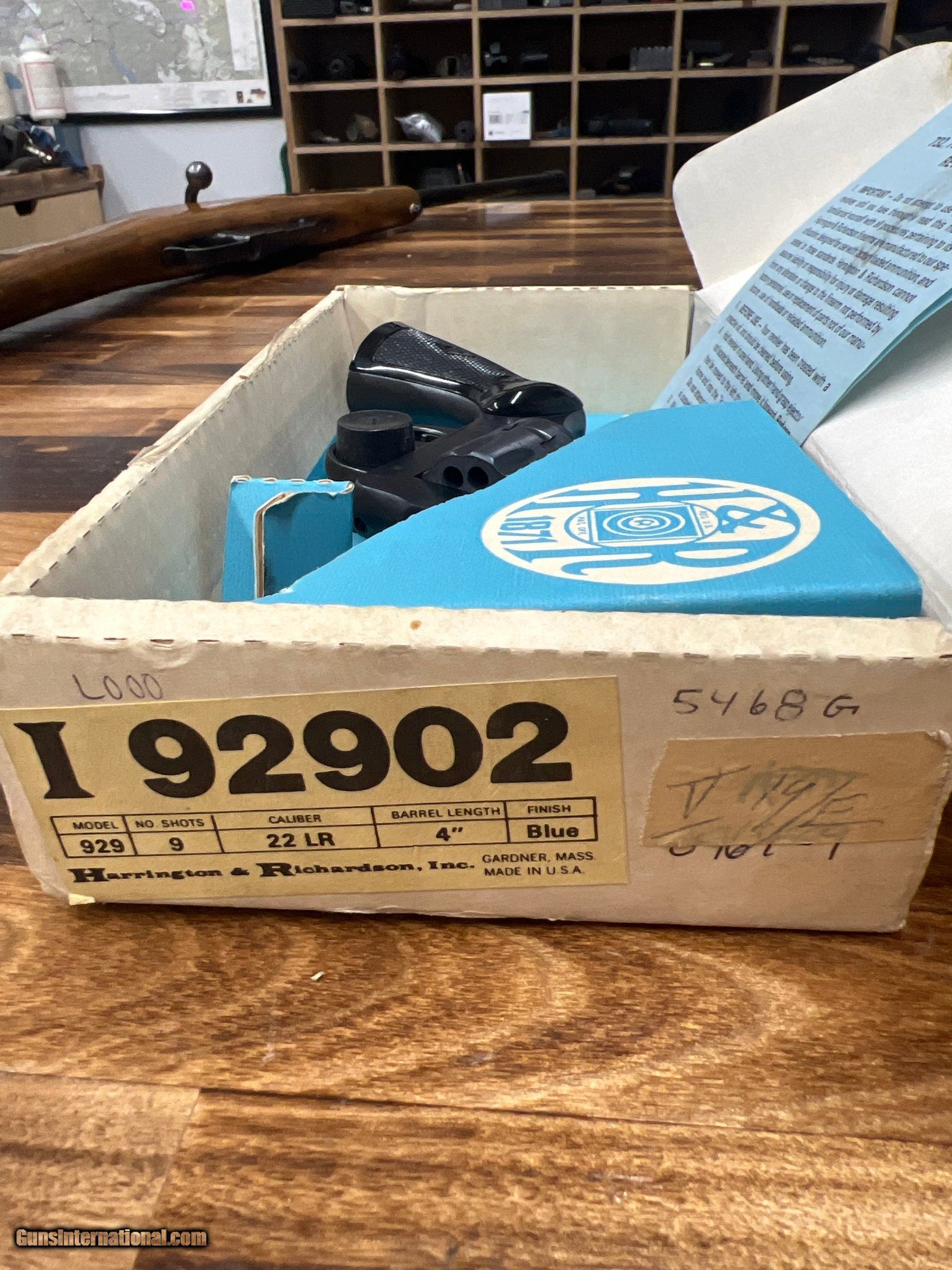 Description: Guns Listing ID: 1407604 This is definitely the most pristine H&R model 929 I have ever seen. This H&R has a 4” barrel and his chambered in 22 long rifle. This little revolver is basically brand new in the box with the original box and the original instruction manual. SOLD Manufacturer: H&R Model: 929 Caliber Info: .22 LR Condition: Used - Non-Certified Barrels: 4 BARREL Finish: BLUED |