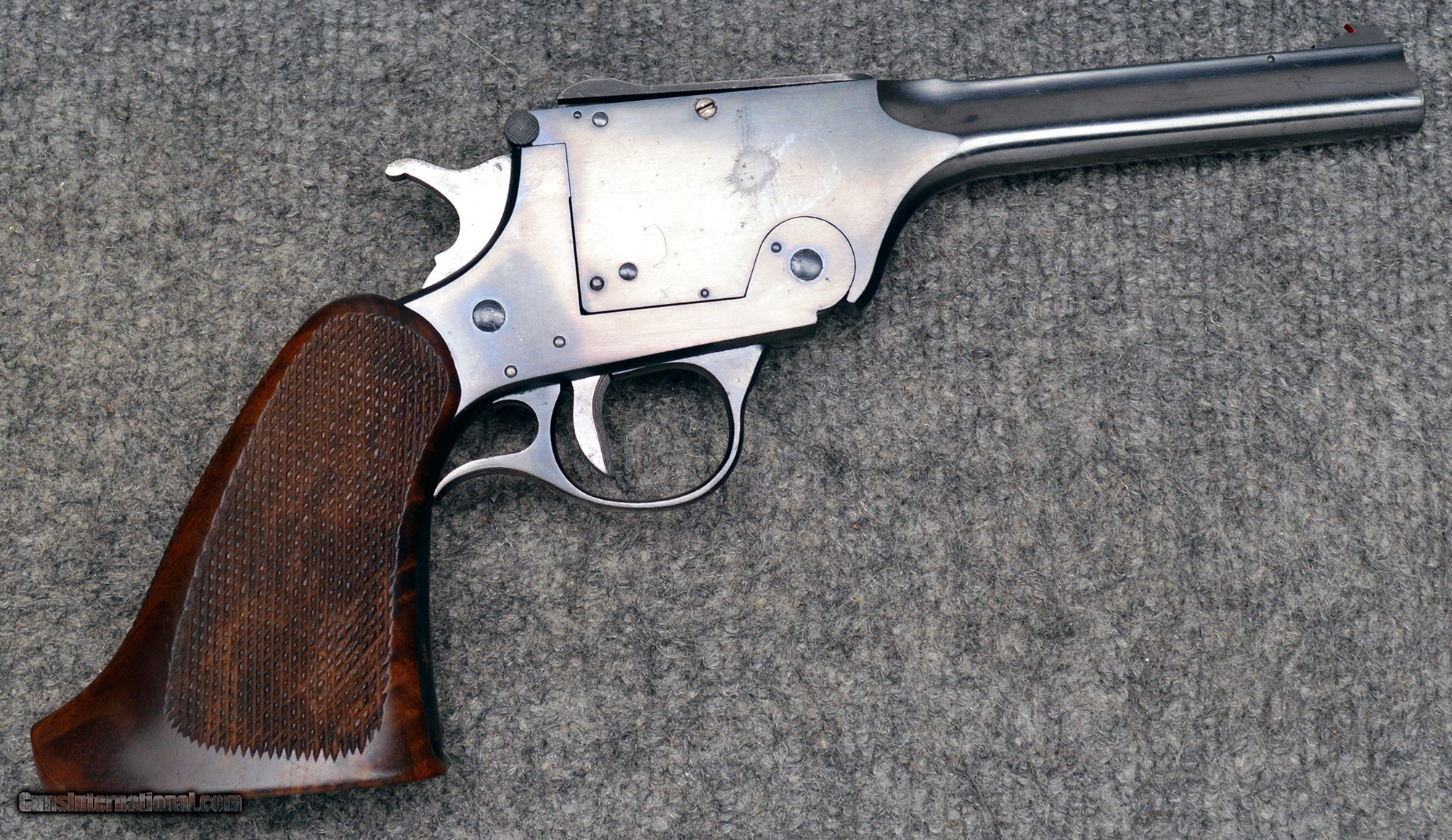 Description: For your consideration, a Harrington & Richardson U.S.R.A. Model chambered in .22 Long Rifle. Serials on barrel and grip frame beneath grips are matching. Sighting consists of an undercut patridge front and a windage and elevation adjustable, square notch rear. .22 Long Rifle Metal Condition: Excellent Wood Condition: Excellent Bore Condition: Excellent Barrels: 7 Triggers: Serrated Face Weight: 1.75 lbs Sights: Iron Sights Item Location: Hamburg, PA Price: $1,269.99 Contact Seller |
