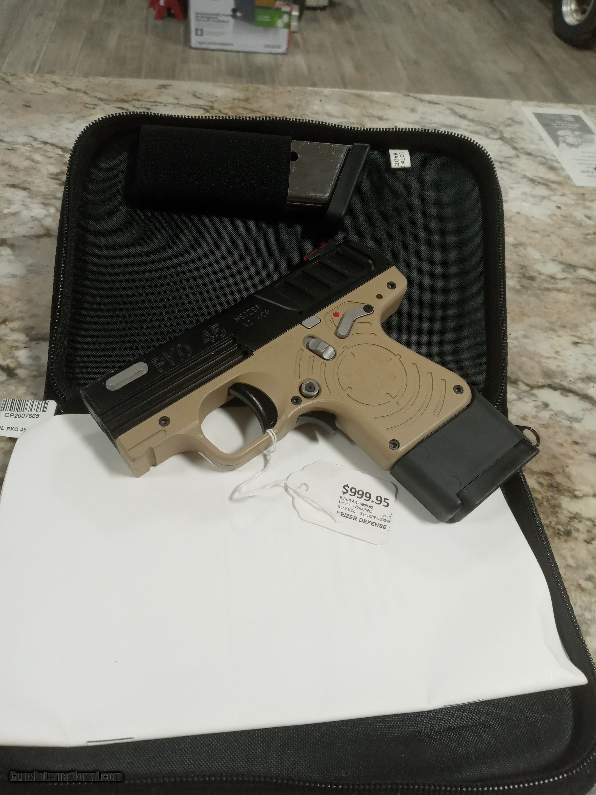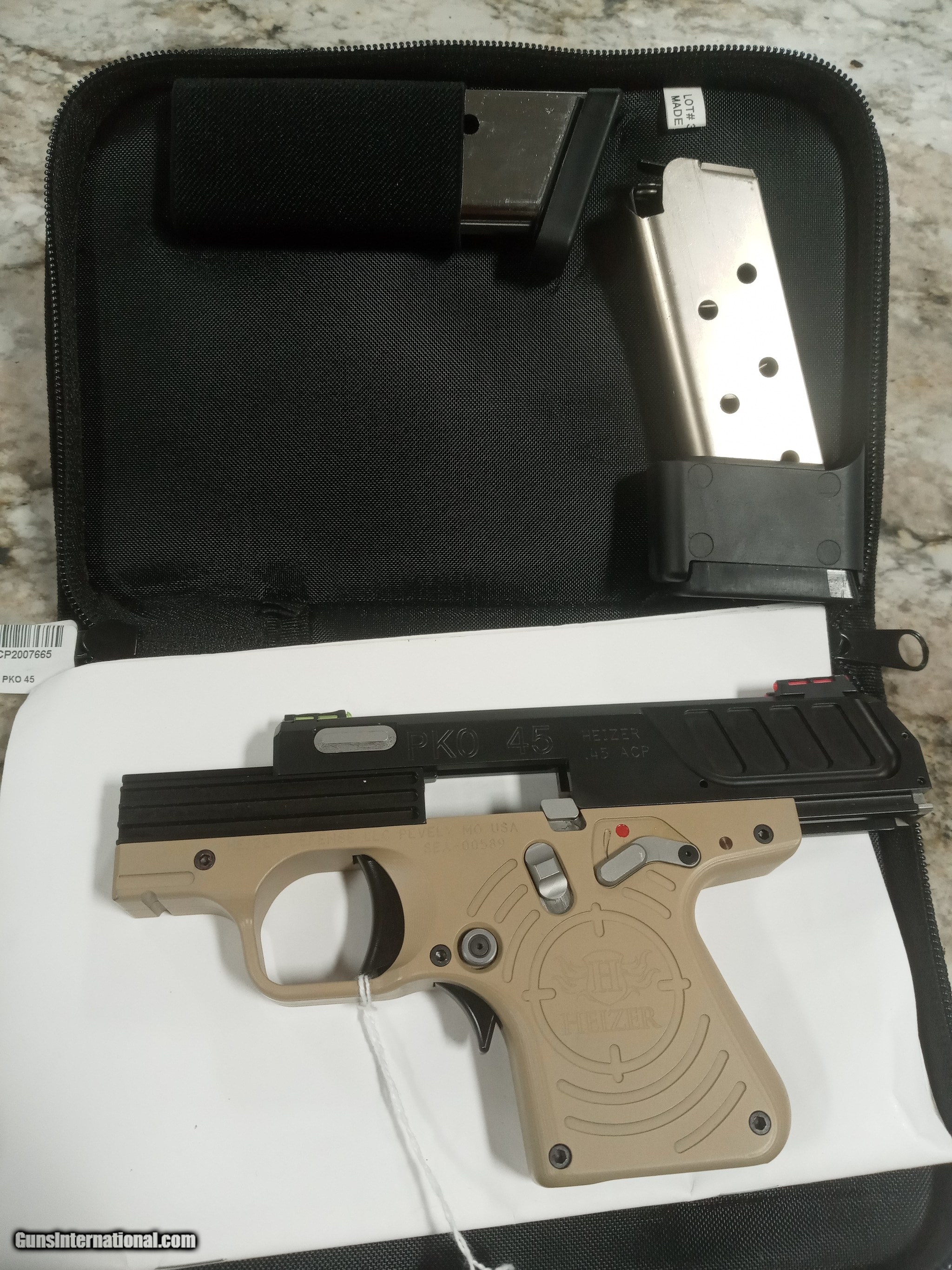 Description: Guns Listing ID: 926747 Heizer PKO 45 in FDE for sale at Catalina Pawn! In very good condition with little to no wear, includes extra mag and includes soft carry bag and safety manual. Contact us with any questions, we also buy sell and trade! Ask for Juan SOLD Manufacturer: HEIZER DEFENSE Model: pko 45 Caliber Info: .45 ACP Condition: Used - Non-Certified Barrels: 3 BARREL Finish: FDE |