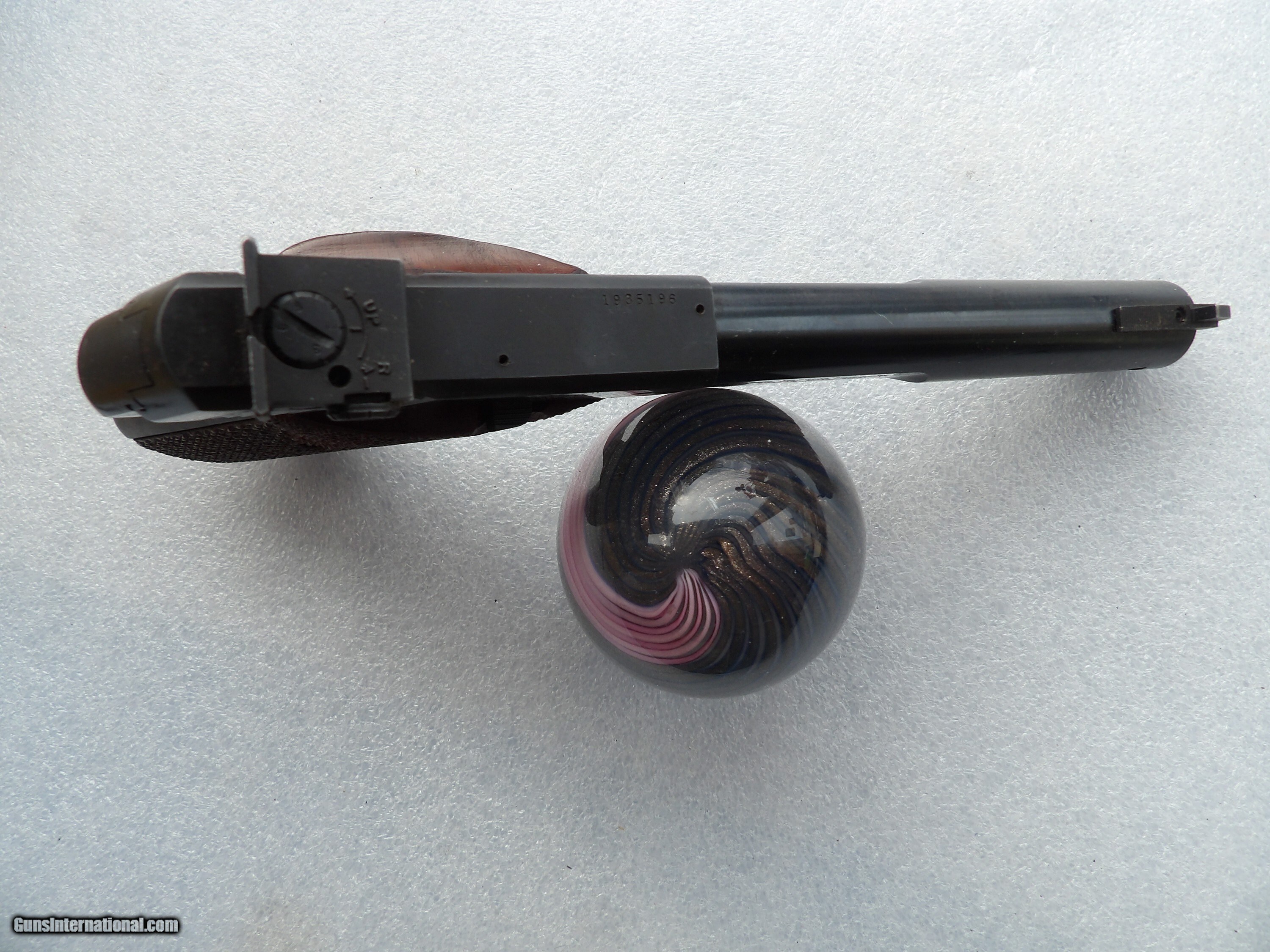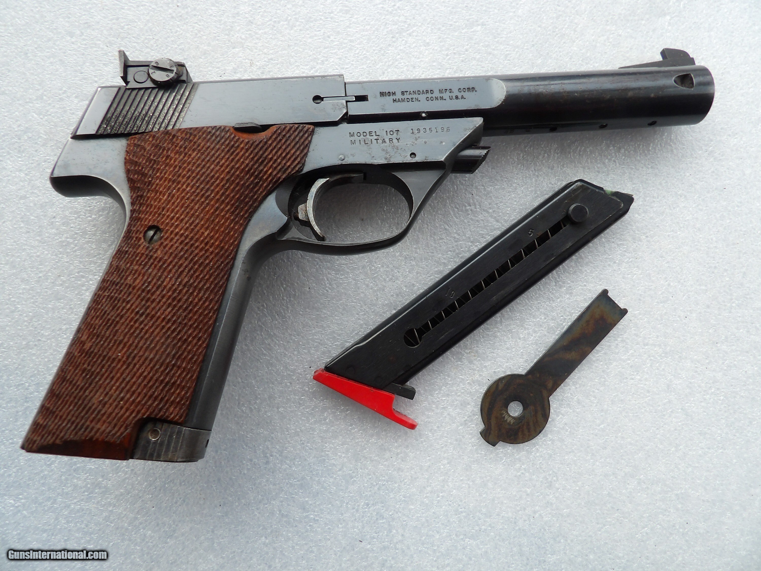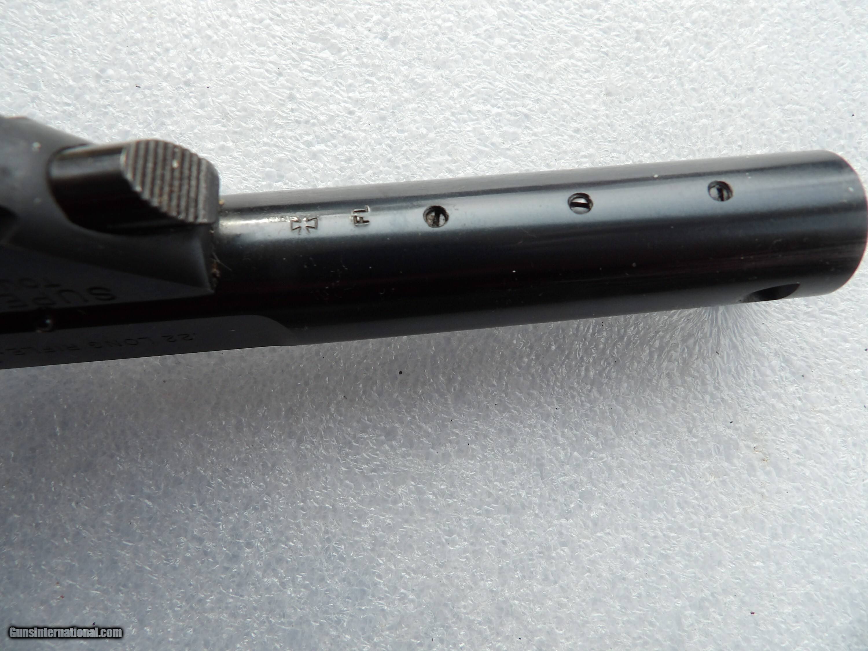 Description: SEE THI PICTURES OF HIGH STANDARD MILITARY SUPRMATIC TOURNAMENT PISTOL CALIBER .22 LR IN ORIGINAL BOX IN EXCELLENT ORIGINAL CONDITION WITH BRIGHT AND SHINY BORE BARREL. IT IS ONE OF THE BEST TARGET SHOOTING HAND GUNS, IT WILL BRING YOU THE HIGHEST SCORE READINGS. PRICE $1,195, PLUS $35 SHIPPING/INSURANCE Please check our other listings. We accept bank & postal money orders or personal & business checks, but those take time to clear. We also offer 90 days layaways with 25% down & three more payments of 25% per month. The layaway plan does not have 3 days inspection privileges; therefore there is “NO RETURNS” policy. If you have offered to buy my guns, and the payment has not made soon after (from 3 to 5 days), I will not guarantee you will be the buyer of it. I can secure your purchase only when you have paid for it. If your payment comes too late, I will return it back to you. Please check our other nice listings. SAFETY NOTICE: Buyer solely responsible for following all safety requirements in handling guns. The buyer agrees to hold seller harmless against damages, injury or death caused by defective merchandise or ammo. Handgun Caliber: .22 Long Rifle Manufacturer: HIGH STANDARD Model: MILITARY SUPERMATIC TOURNAMENT SEMI-AUTO PISTOL Serial Number: 1935196 Barrel Length: 5.5 INCHES Bore Info: SHINY & BRIGHT Condition: EXCELLENT Wood Condition: 98%+ Bore Condition: SHINY & BRIGHT Grips: LIKE NEW Price: $1,195.00 Shipping: $35.00 Contact Seller |