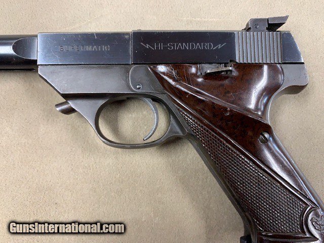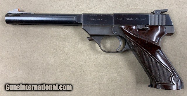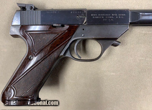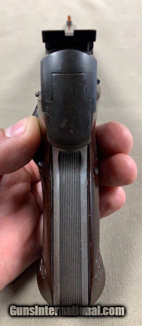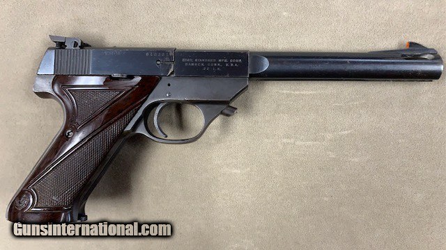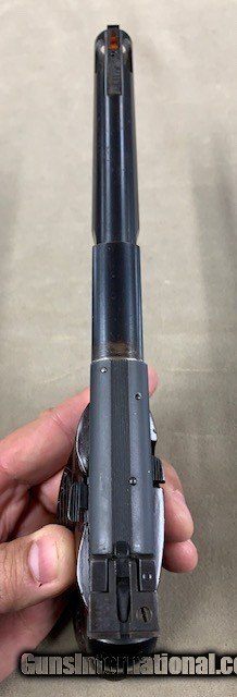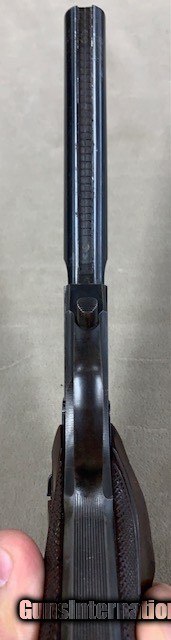 Description: A ver nice target pistol with 6.75 inch compensated barrel which is cut for weights. Pistol has an excellent bore and chamber and factory magazine. Some flecking due to poor storage but still a 95% + pistol. Factory original magazine looks as if the gun were never fired.` SOLD Handgun Caliber: .22 Long Rifle |