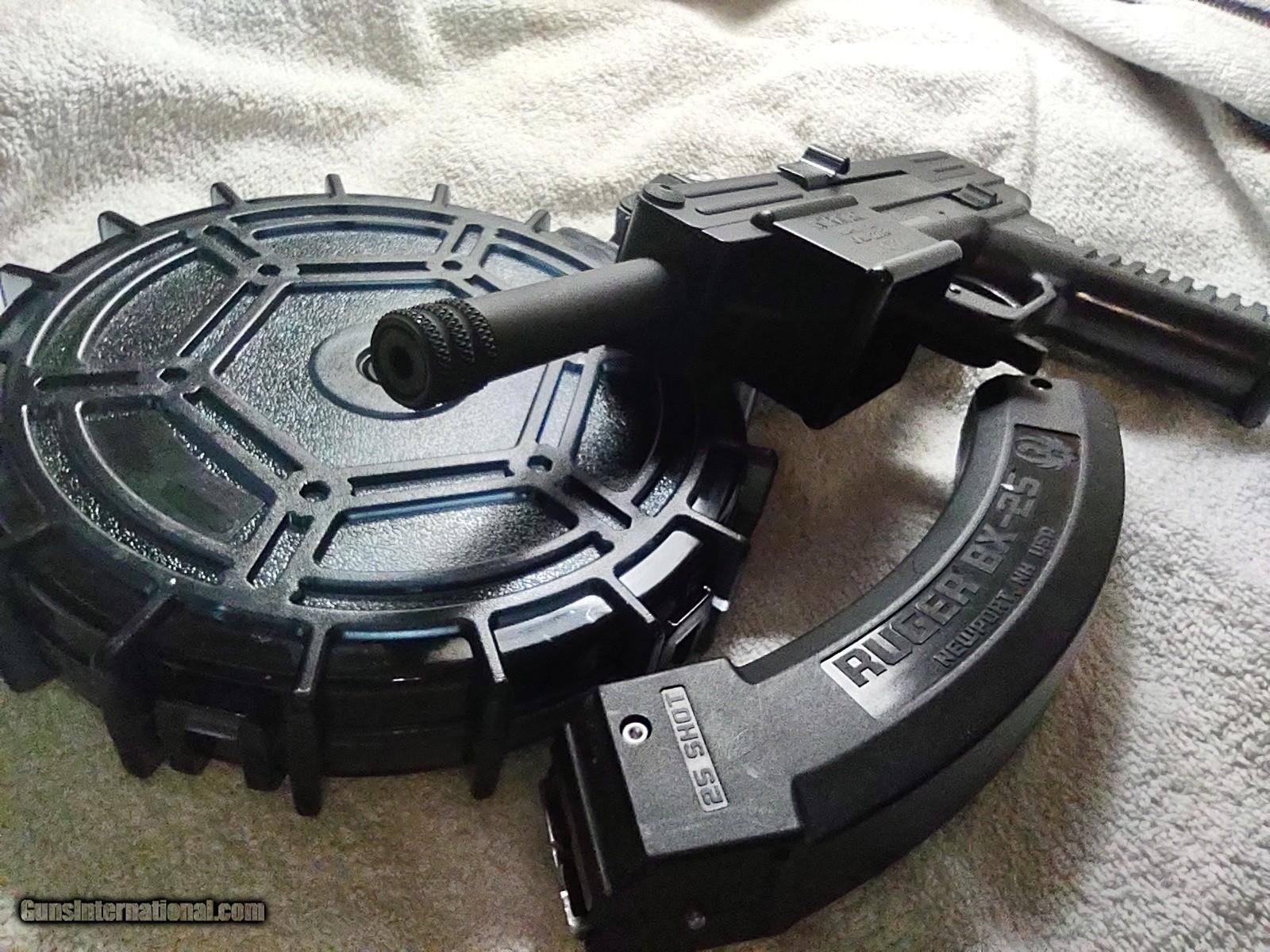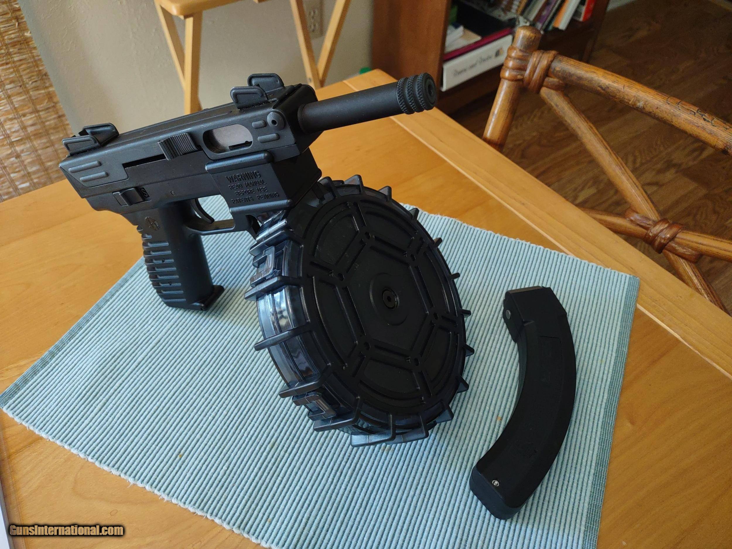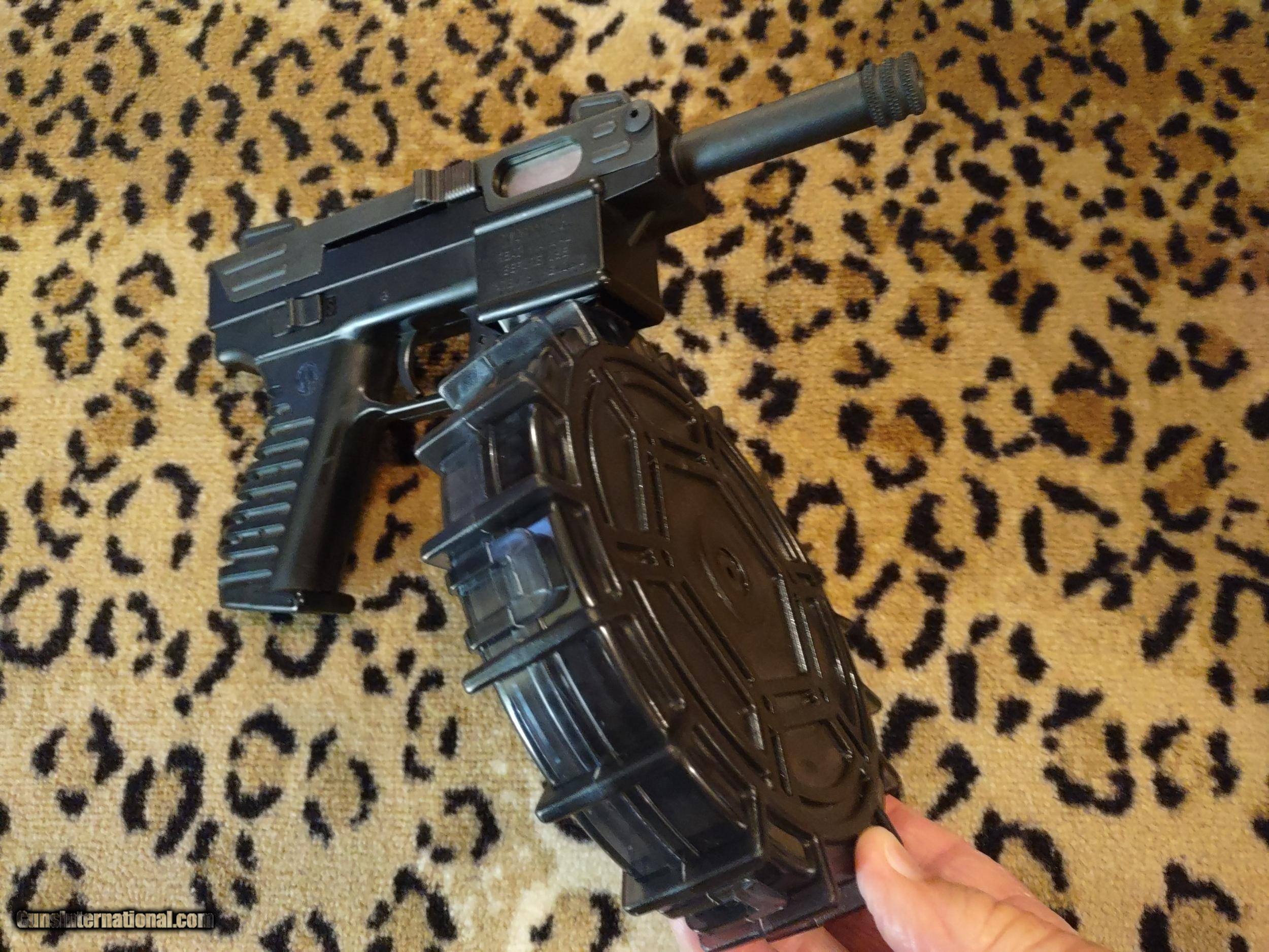 Description: INTRATEC TEC-22 semi-automatic tactical pistol in .22LR caliber with 3 3/4" barrel (threaded) with bright glossy bore, Ruger BX-25 25-round banana magazine and PROMAG 100-round drum all in flawless condition, all black, like new! Pistol has ambidextrous safety and bolt slide, fixed sights with sight guards and storage compartment in grip for parts and accessories. This great pistol is inexpensive to shoot plus lots of fun, very accurate and fires as fast as you can pull the trigger. The price is $800 including UPS shipping to the FFL dealer near you. Call or text me at 318-780-4242 if you are interested. THE DRUM IS VERY EASY TO LOAD AND UNLOAD!! SOLD Manufacturer: INTRATEC Model: TEC-22 Serial Number: 049026 Barrel Length: 3 3/4", threaded Bore: bright and glossy Chambers: Excellent Ejectors: Semi-automatic Condition: Excellent Metal Condition: Excellent Wood Condition: No wood Bore Condition: Excellent Barrels: Single Barrel Type: Pistol Action: Semi-automatic Triggers: Single Finish: Black Sights: Fixed, open Manufacture Date: Not sure Engraving: Magazine and drum Case: Hard polymer carry case Item Location: Shreveport, Louisiana |