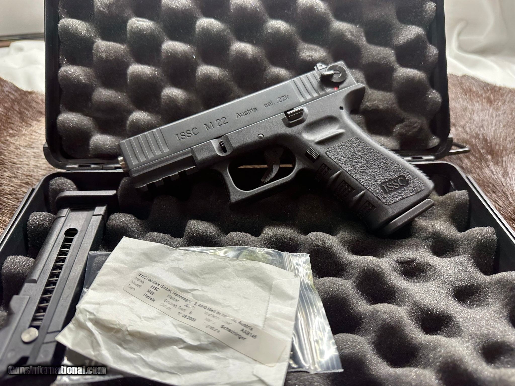 Description: Guns Listing ID: 596116 As new in box this was the earliest glock clone in 22LR 2 mags Manufacturer: ISSC Model: M 22 Caliber Info: .22 LR Condition: Used - Non-Certified Barrels: 3" BARREL Action: SEMI AUTOMATIC Finish: black Price: $239.99 Contact Seller |