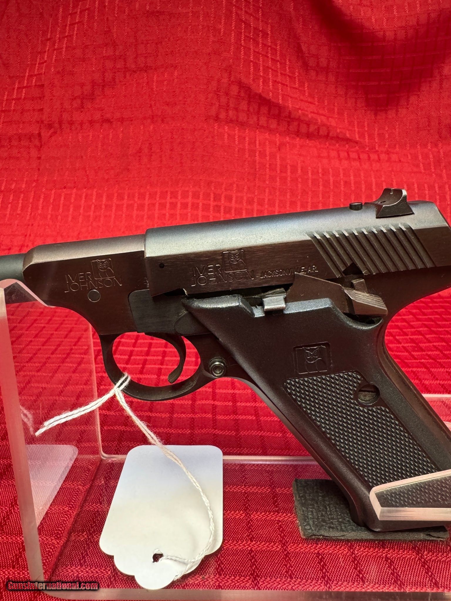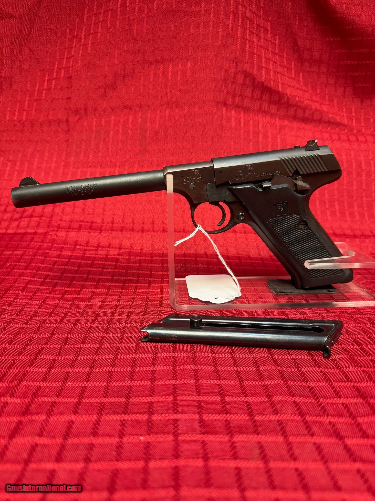 Description: Guns Listing ID: 600444 IVER JOHNSON TRAILSMAN - .22 LR, ONE MAGAZINE 10 ROUNDS, 6 \" BARREL This Iver Johnson Trailsman, sn: FG02682, was manufactured between 1984-1988 and chambers the fun and economical .22LR cartridge. The pistol is a contemporary of the Colt Woodsman and is an excellent option for plinking and training. The gun has a 6" barrel, 99% factory finishes, features a mirror bore, one 10-round magazine. This .22 LR cal., large frame, single action, copy of Colt Woodsman, blue finish, plastic or wood grip panels, 4 1/2 or 6 in. barrel, 10 shot mag., sear block safety, internal hammer mechanism, fixed sights, slide hold open latch, push-button mag. release, 63 oz. First 500 mfg. in Argentina and assembled in the USA (not all of these 500 were assembled). Mfg. 1985-1991. Manufacturer: IVER JOHNSON Model: TRAILSMAN Caliber: 22 LR Magazines: ONE - 10 RDS Sights: FIXED BLADE & NOTCH Weight: 33 OZ Overall Length: 10.25\" Barrel Length: 6\" SERIAL NUMBER: FG02682 SKU NUMBER: DJ1035613 Manufacturer: IVER JOHNSON Model: TRAILSMAN Caliber Info: .22 LR Condition: Used - Non-Certified Barrels: 6" BARREL Action: SEMI AUTOMATIC Finish: black Price: $449.99 Contact Seller |