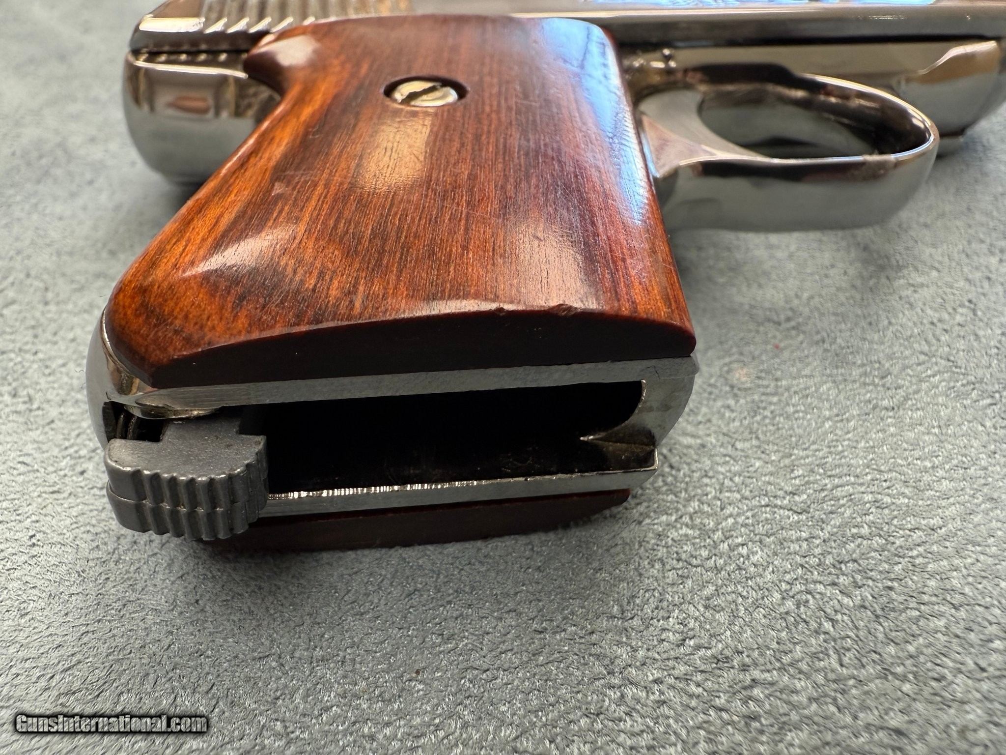 Description: Guns Listing ID: 580049 Excellent example of a vintage Jennings J – 22 pistol in chrome finish. Does not come with any magazine or box firearm only. You will need to source a magazine as none is included. Manufacturer: JENNINGS FIREARMS Model: j-22 Caliber Info: .22 CAL Condition: Used - Non-Certified Barrels: 2" BARREL Action: SEMI AUTOMATIC Finish: chrome Price: $199.99 Contact Seller |