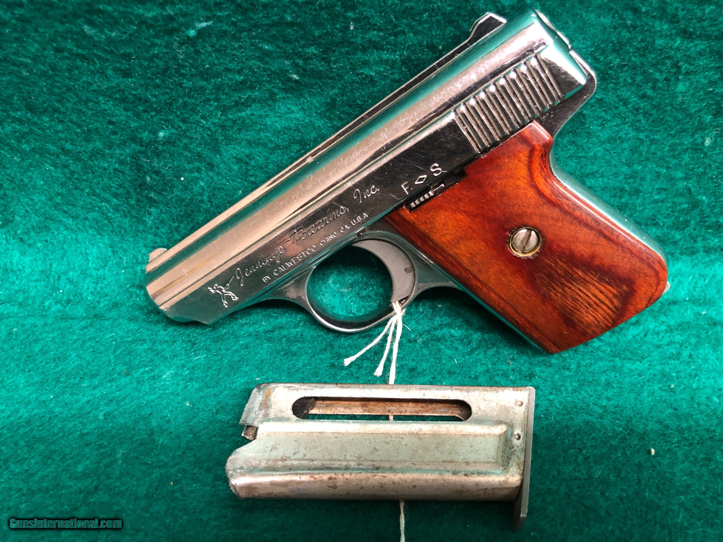 Description: JENNINGS J22 22LR CALIBER PISTOL. THIS PISTOL IS SOLD AS-IS AND COMES WITH 1 MAGAZINE. NOT FOR SALE IN CA. SHIPPING IS $20.00 SOLD Handgun Caliber: .22 Long Rifle Manufacturer: JENNINGS Model: J22 Serial Number: 377542 Condition: AS-IS |