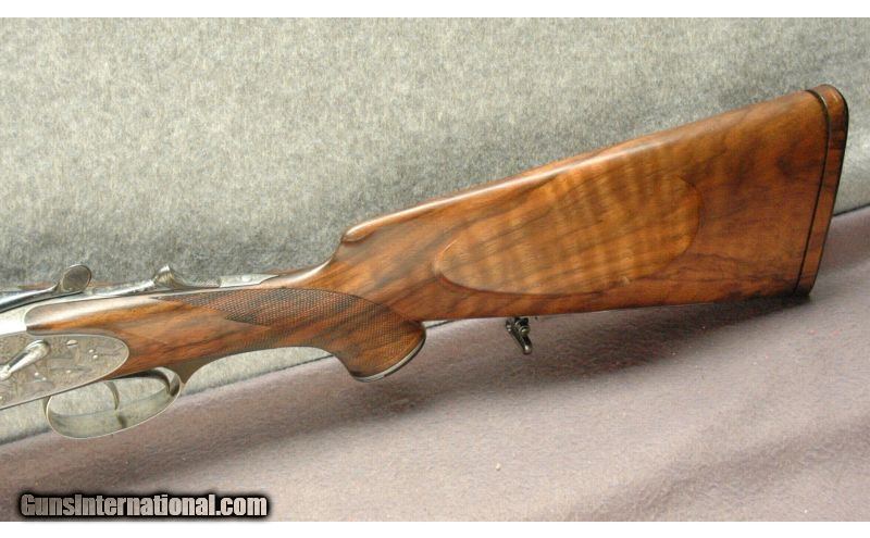 Description: Krieghoff Neptune Drilling - This beautiful drilling is chambered in 16 gauge over 7x57R and features relief engraving, a cartridge trap, detachable triggers, side locks with cocking indicators and horn inserts behind the trigger guard and in the forend. The main rear sight folds up when the cocking lever is pushed forward in the Krieghoff style. A second leaf rear sight allows for a slight elevation adjustment. Krieghoff scope mounts are dovetailed into the top rib.The shotgun barrels are choked cylinder / cylinder and features extractors while the rifle barrel features an ejector. It is an incredible firearm. SOLD Caliber Info: 7.57R Rifle Barrel, 16 Gauge Shotgun Barrels Metal Condition: Excellent, Few Light Wear & Handling Marks Wood Condition: Stock is in Excellent Condition Bore Condition: Bright Barrels: 24 Triggers: Double Triggers Stock: Premium Wood, Semi Gloss Finish Stock Dimensions: 14" LOP Fore End: Fine Checkering Butt Pad: Factory Butt Plate Weight: 7 Lbs 4 ozs Sights: Factory Leaf Sights Chokes: Fixed Cylinder Extras: No box Item Location: Farmington, UT |