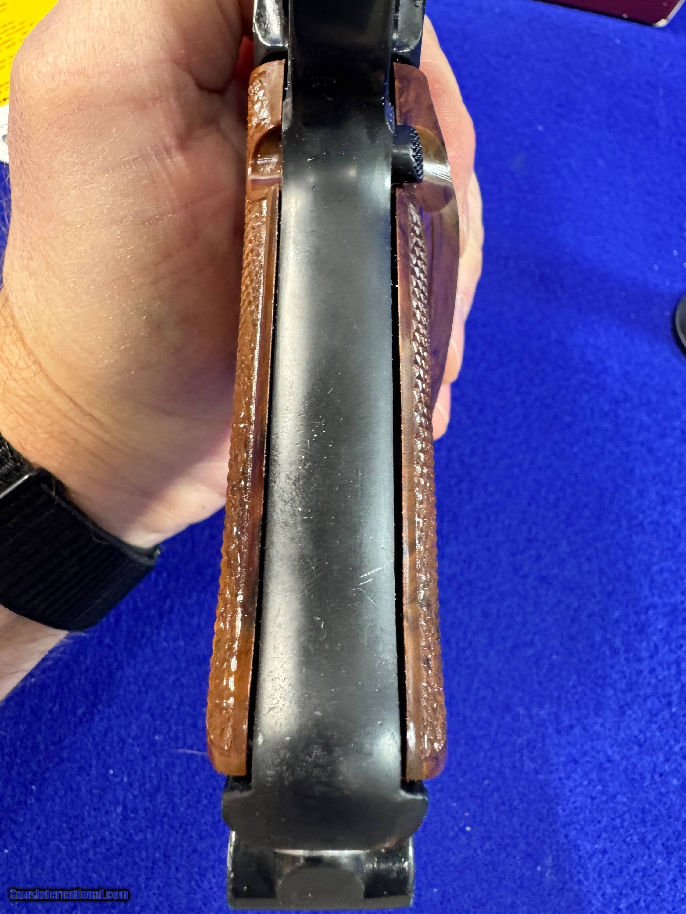 Description: Like new in box German Erma manufactured KGP 69 Luger style pistol chambered in .22 LR. Features a 3.75" barrel and one factory 8 shot magazine. Luger toggle action, blued finish and plastic, checkered target stlye grips. Mint bore and overall in excellent condition. Only minor storage marks. Features factory matching box and paperwork. Manufactured beginning in 1969. Most likley C&R, but I have yet to find data on years. So must go to 01 FFL. I accept Post Office Money Orders, Personal Check, Zelle and credit card as payment. All Credit Cards incur a 2.99% fee which is in addition to the final price as shown in the Order. Please allow me to give you a complete total. All Credit Cards will need to be done over the phone. Thank You. Insurance is not included in shipping. Please allow me to add that to the total at your request at a rate of 2% per every $100. Thank you for looking. Please let me know any questions. Many more pictures available. Handgun Caliber: .22 Long Rifle Manufacturer: Erma Model: KGP 69 Serial Number: 309384 Barrel Length: 3.75 Condition: 95-97% Bore Condition: 9 out of 10 Action: Single Finish: Blued Sights: Fixed Manufacture Date: ? Extras: Box, Papers Price: $599.00 Shipping: $45.00 Buy Now Contact Seller |