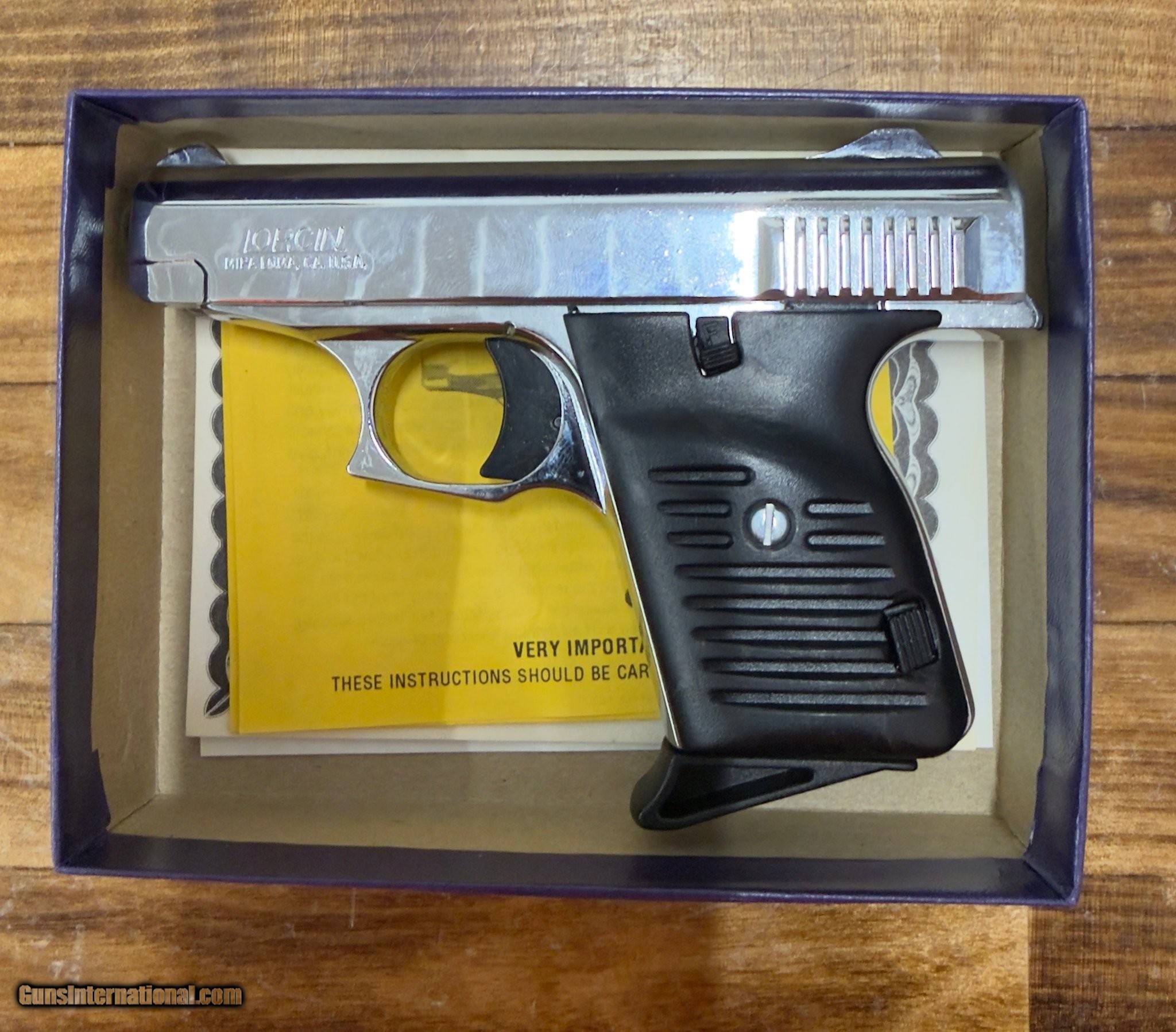 Description: Guns Listing ID: 588511 Up for sale is a Lorcin Engineering Co. L-22 chambered in .22 LR. This is the chrome finished compact L-22 with black polymer grip panels and a 2.5" barrel. Functions as a simple, pocketable .22 auto — great as a budget backup/collection piece or range plinker. Slide, frame and controls are all present and the bore/chamber appear clear in photos. Cosmetic condition is good for this style of pistol — bright chrome finish with normal light handling marks and minor surface wear visible in the photos. Manufacturer: LORCIN ENGINEERING CO Model: L-22 Chrome /Blk Grips Caliber Info: .22 LR Condition: Used - Non-Certified Barrels: 2.5" BARREL Action: SEMI AUTOMATIC Finish: chrome Price: $299.99 Contact Seller |