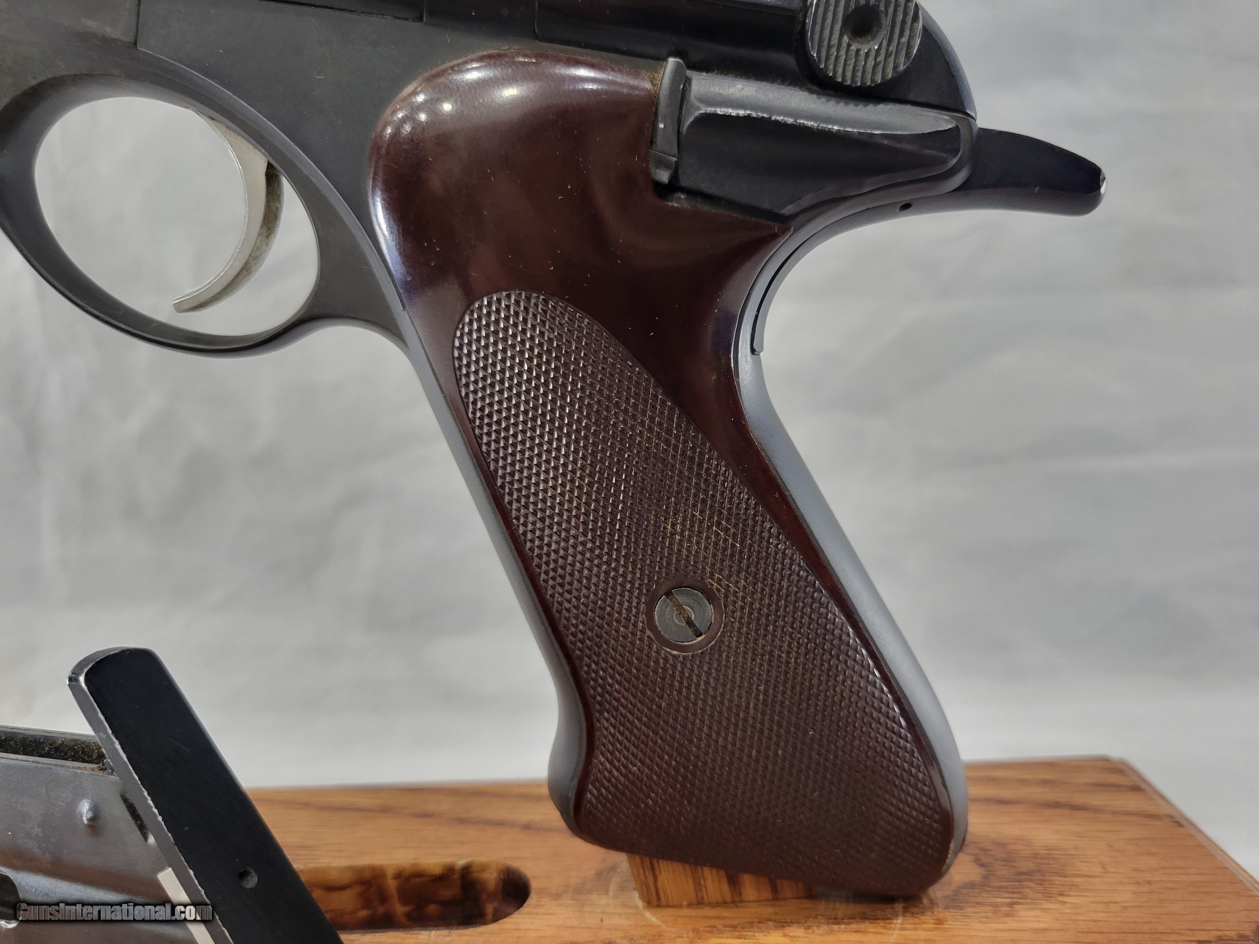 Description: NV. 10506 MINT Whitney Wolverine, Cal..22 LR, Ser. 30125. Rare, minty condition and st American's first aluminum frame gun. Designed by Rpbert Hillberg of Branford, CT. A well known designer for several major firearms companies and lastly for High Standard, famous for their high quality precision target pistols. This little beauty has retained about 99.99% of the original factory finish. The only loss there is, is from some very slight sharp edge silvering .The rest of the gun is pristine All parts are original to the gun. The brown plastic grips are flawless as is the grip screw. The slide rails, feed ramp and bolt face show little or no evidence of use. The bore is super, mirror bright with scalpel sharp rifling and not a wisp of frost anywhere. It comes with one original magazine and a rare original Wolverine box with the scarce Alcoa Alumanum label on the back. This is a real investment prize for the most critical automatic pistol collector. And should be real fun at the range. Modestly priced a... $2395.*** ***100% of the gun's price is satisfaction To purchase this firearm or if you want to request more information contact us at: Email ckguns[at]ymail[dot]com Phone 201-512-0002 Cell 201-575-6838 FAX 201-215-4759 We accept most major credit cards. Prices shown are Discounted 3% for Cash or Check. The buyer must be familiar with all the laws governing the purchase and the ownership of firearms in their own city and state. The Yankee Armorer, Inc is not responsible for any failure to comply with or observe these laws. The Yankee Armorer, Inc will only ship after full payment and receipt of all required documents. Shipping: Add $35.00 for handguns, $45.00 for long guns. New Jersey buyers are subject to a 7% sales tax. The Yankee Armorer, Inc offers a 3 day inspection period with full refund upon return of intact firearm and in the original condition. The Yankee Armorer, Inc offers a no interest lay away program - 25% down; 25% in 30 days; 25% in 60 days; and full payment in 90 days. Any violation of this policy is subject to restocking and forfeiture of all payments. Any variation from this policy must be agreed to in advance. Unshipped Cancelled sales are subject to a 20% restocking fee. Be advised that all firearms sold by The Yankee Armorer, Inc. or the Gun Exchange, LLC (SELLER) are sold as collector’s items. They have not been fired or tested for safety and must be examined by a license gunsmith prior to use. By purchasing any item from the (SELLER), you are agreeing to hold the (SELLER) free from any damages or lawsuits of any nature. Any item left for transfer or storage will be charged to $25.00 per month, per item from the day of its receipt. Any variation from this policy must be agreed to in advance. Store hours 10:00 am to 5:00 pm Tuesday -Saturday. It's always best to call for appointment. Store 201-512-0002, cell 201-575-6838. SOLD |