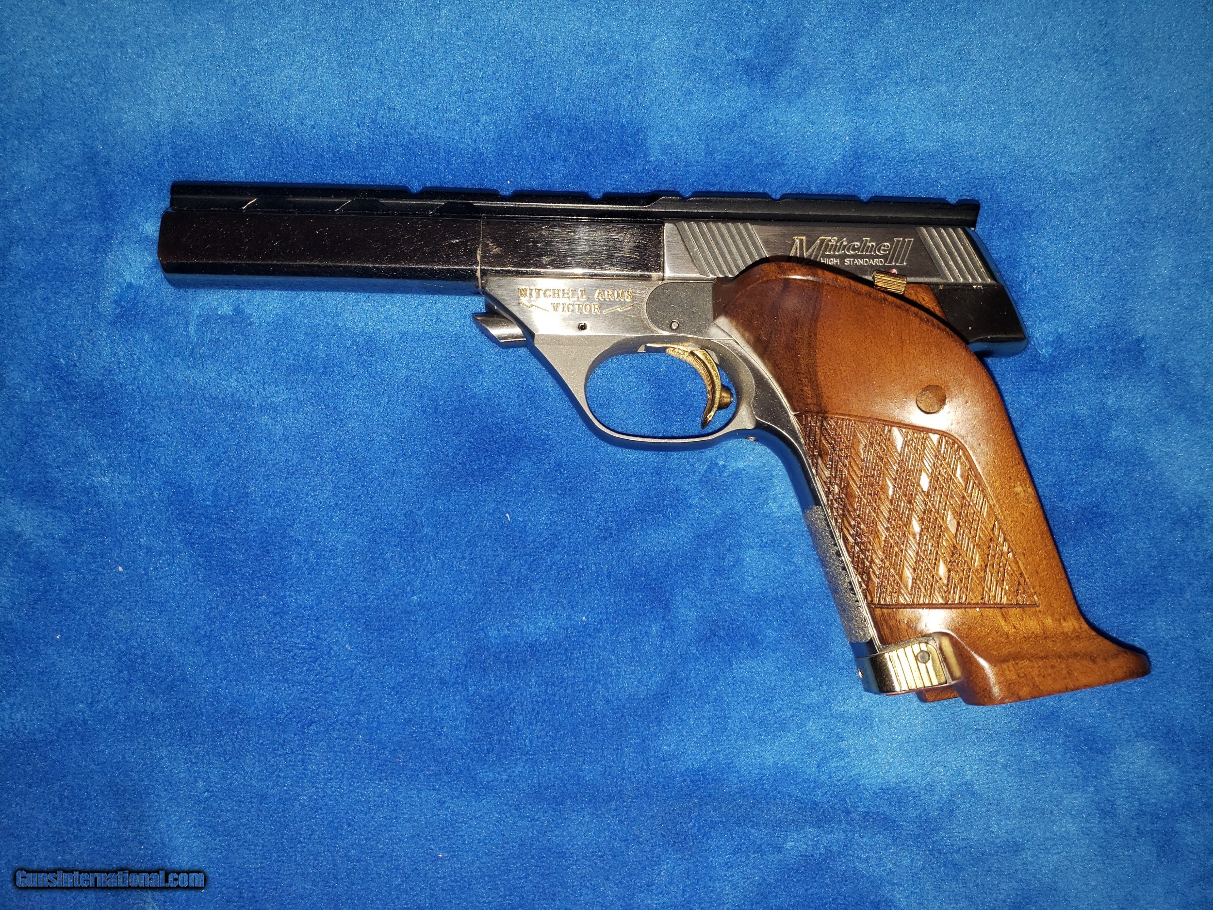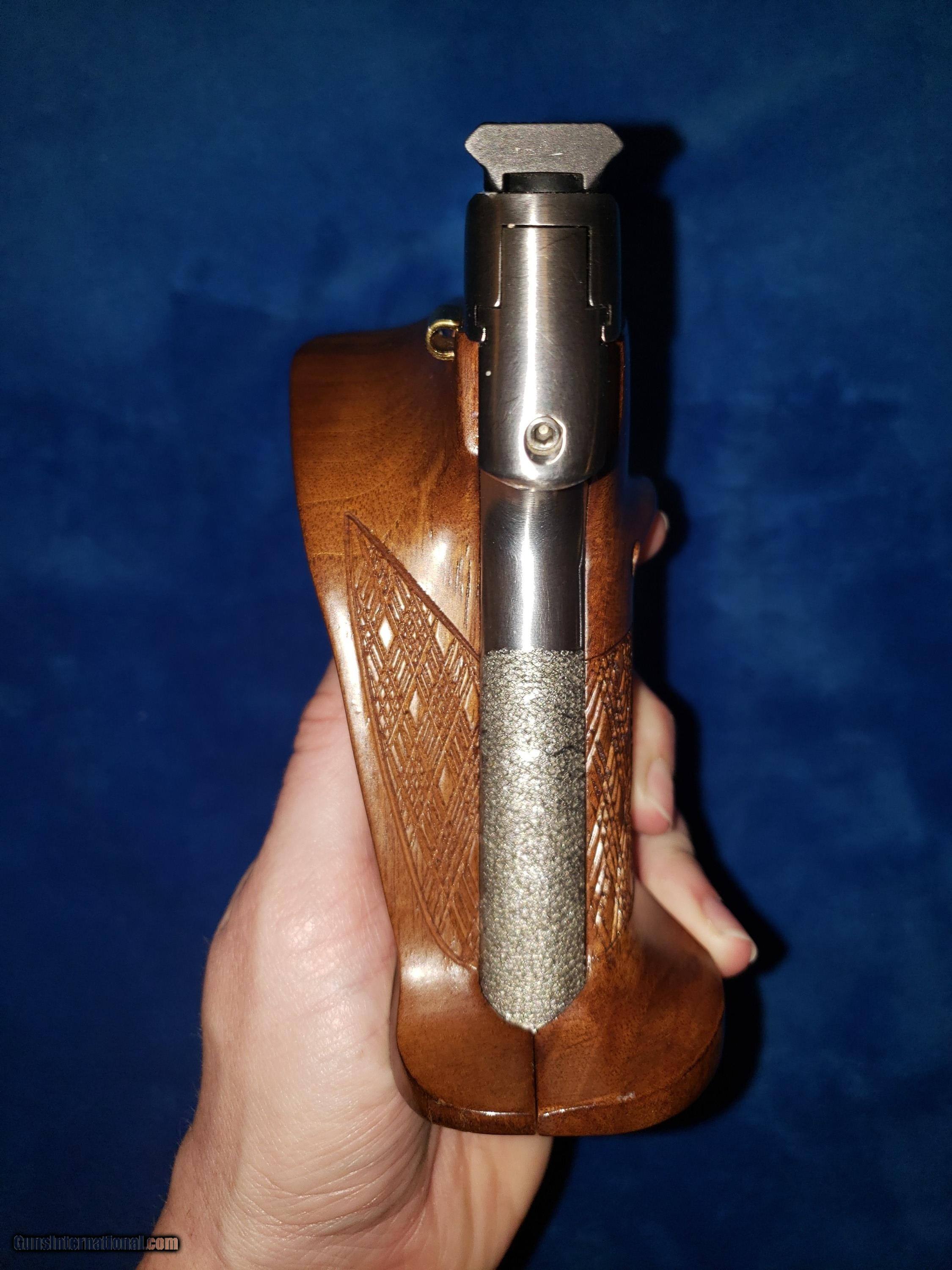 Description: Hi Standard Mitchell arms victor II stainless steel, 22 target pistol. In excellent condition. 2 barrels one with top rail mounted for optical sights. Beautiful wrap-around thumb rest checkered right hand extended grips .Also included is a pair of left hand regular checkered grips , 2 magazines included. All in foam fitted case. Shot very little, great for the serious target shooter or just plinking. Shoot one barrel. Save one for competition. Mitchell arms pistols manufactured under license of Hi Standard Priced for quick sale ! OkOr Will trade for vintage double SxS Hammer shotgun I have throat cancer I can't always talk on the phone,it is best to E-mail me at ( kol2603outlook ) or leave me a message nwith your Email address. Thanks. SOLD Pending payment SOLD |