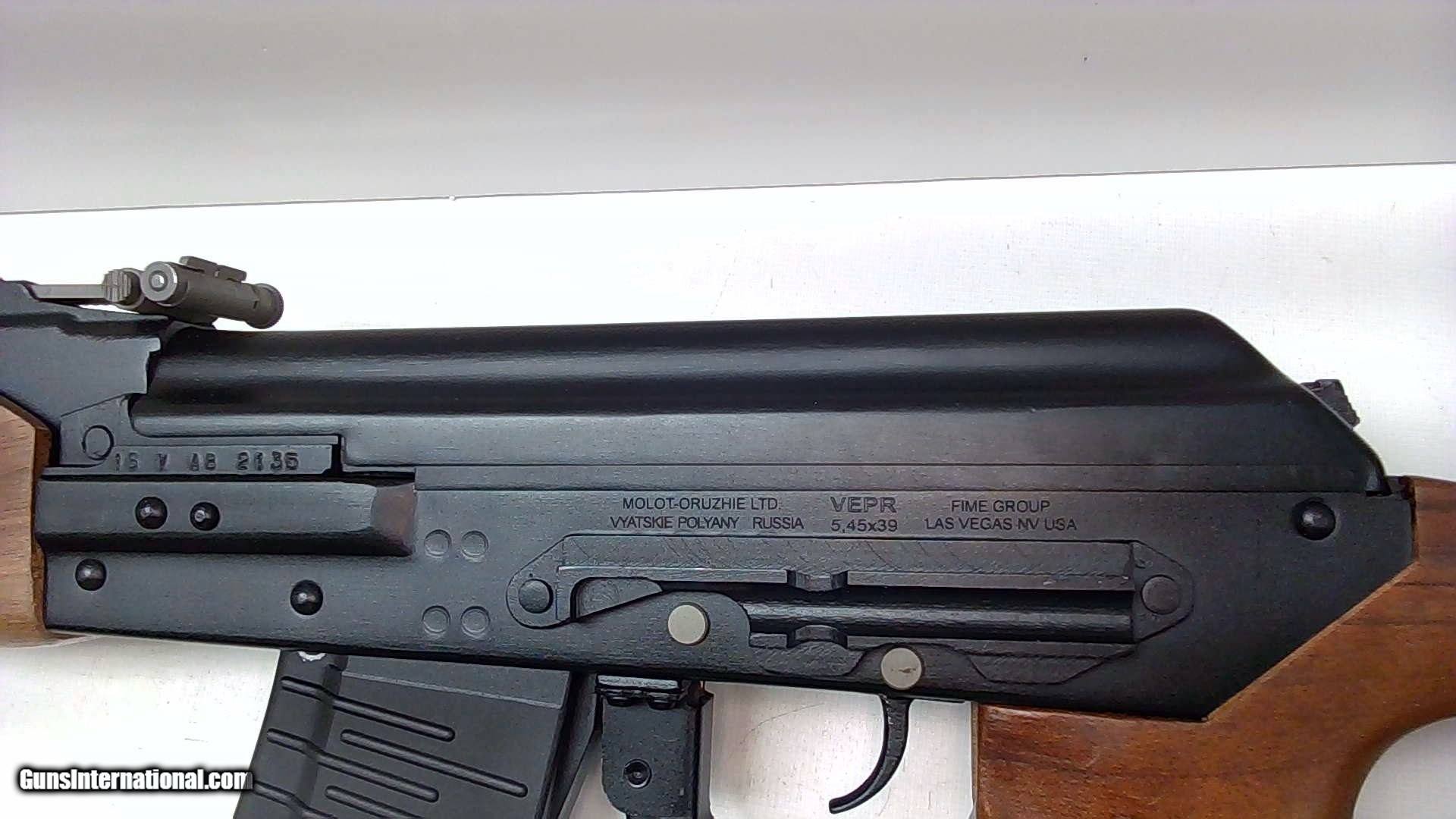Description: Guns Listing ID: 498251 This item is rare, as these rifles are no longer allowed to be imported into the US. ****This item is preowned and in very good condition. It appears unfired. There is a blemish on the front of the stock, looks like it is from rubbing in a safe. Also, there is a scratch under the safety lever. Otherwise, this firearm is in near perfect condition. 1-5rd magazine included**** The VEPR is simply the highest quality rifle based on the Kalashnikov design. The VEPR Rifles are sporting arms based on the famous Soviet designed RPK machine gun. VEPR rifles are manufactured at the historic Vyatskie Polyany Machine Building Plant (a.k.a. \"MOLOT\"). Molot has been building excellence into their firearms for over 50 years. 5.45 X 39 semi auto rifle with beautiful wood stock comes with 1 -5 round magazine. Veprs are built for extreme demands above and beyond all others with extra heavy-duty receiver, extra heavy-duty reinforcement each side and an extra heavy hammer forged chrome lined target like barrel. These photos represent the exact firearm for sale. As with many used firearms, this item may contain scratches and/or signs of wear. This is not always the case but should not be unexpected. Firearm as shown, no box or other accessories. Manufacturer: MOLOT-ORUZHIE Model: AK47 VEPR Caliber Info: 5.45X39MM Condition: Used - Non-Certified Barrels: 16" BARREL Action: SEMI AUTOMATIC Finish: walnut stock matte b Price: $2,999.99 Contact Seller |