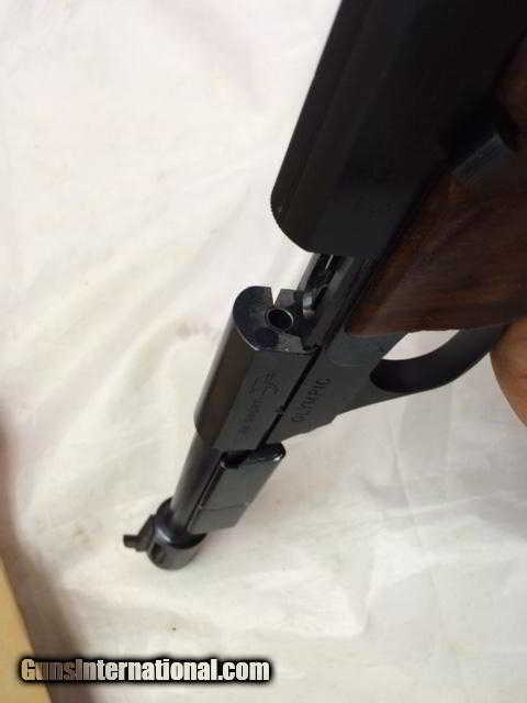 Description: This is a the rarest variation of a Hi-Standard Olympic Pistol with only about 200 guns made in mid-70s, that still had a slanted grip of an earlier Olympic line, were chambered in .22 Short and had a G-prefix to the serial number. This particluar gun is pretty much ANIB with just a hint of "box wear", on the left side of the tip of the muzzle break/compensator. It is complete with its original weights and with beautiful mint wood grips. I don't believe more than a few rounds were ever shot from this gun, as it looks unused with a mint bore as well. Original matted finish on the grip straps and on top of the slide(the slide was made out of anodized aluminum on Olympic .22 short guns as the weaker cartridge could not cycle a steel slide). Olympic was the only US-made target pistol that won a gold medal at the Olympic games. The box is an original Hi-Standard box with a worn label, buit otherwise in nice shape. Although it came with the gun, I cannot guarantee that it is an actual original box,as the label is worn, but the gun fits well without any slop. An absolutely stunning example of a rare G-prefix ISU Olympic. 3-day inspection. No sales anywhere where prohibited. FFL required for purchase/transfer. SOLD Manufacturer: Hi Standard Model: Olympic ISU Caliber Info: .22 short Condition: minty |
