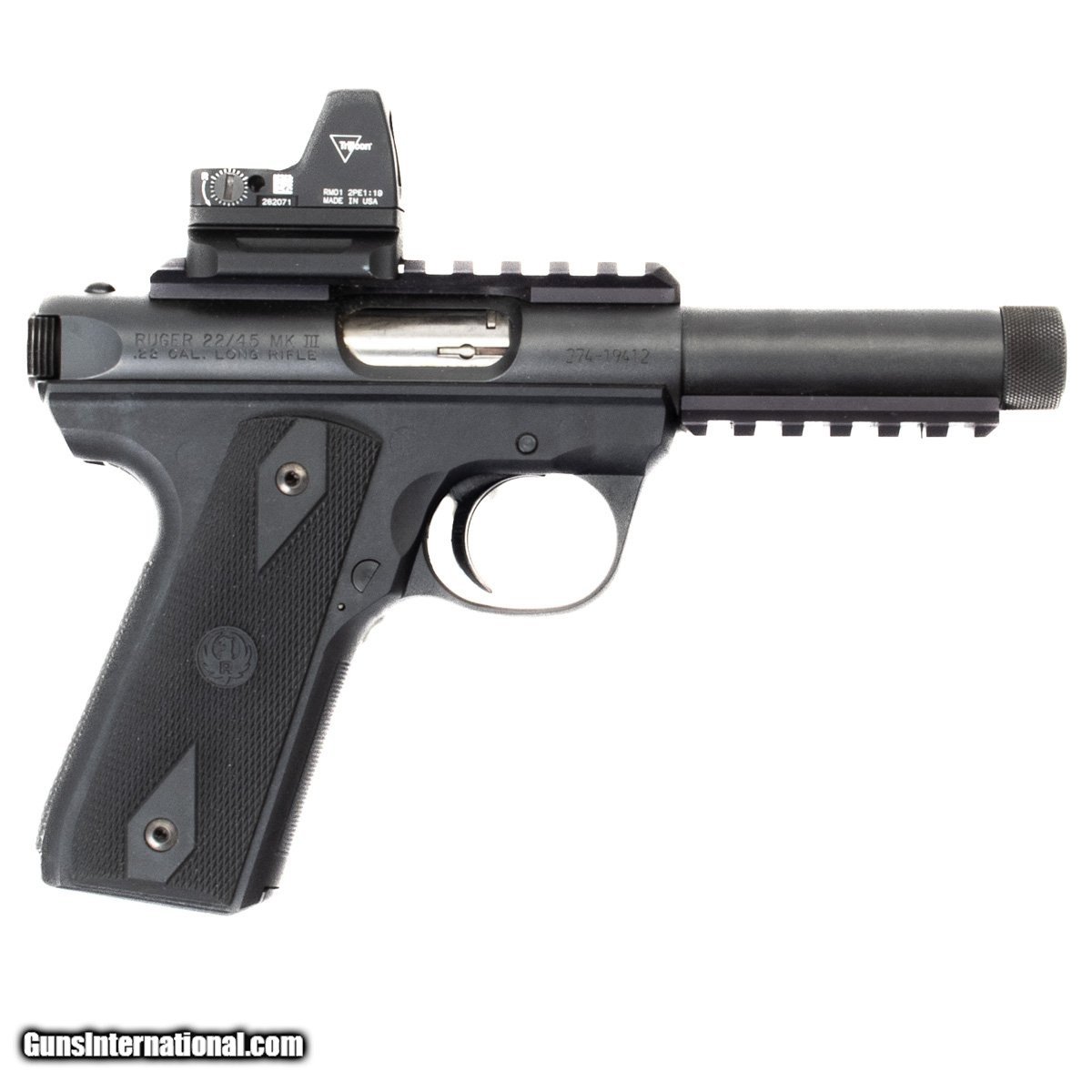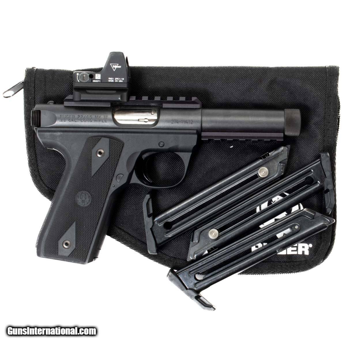 Description: Guns Listing ID: 618227 This variant of the 22/45 Mark III features a threaded barrel, optics rail and an accessory rail. 4-10 round magazines and the original soft case are included. Get the best bang for your buck when you get a Certified Used Firearm . When you see the Certified Used stamp on any of our firearms, you can be confident that you‚re getting exactly what you want – a gun only in very good to excellent condition and held to the highest quality standard. All Certified Used Guns come with a ‚no questions asked‚ return policy . Manufacturer: RUGER Model: 22/45 MK III Caliber Info: .22 LR Condition: Used - Certified Barrels: 4.50" BARREL Action: SEMI AUTOMATIC Finish: black Weight: 2.2 Price: $649.99 Contact Seller |