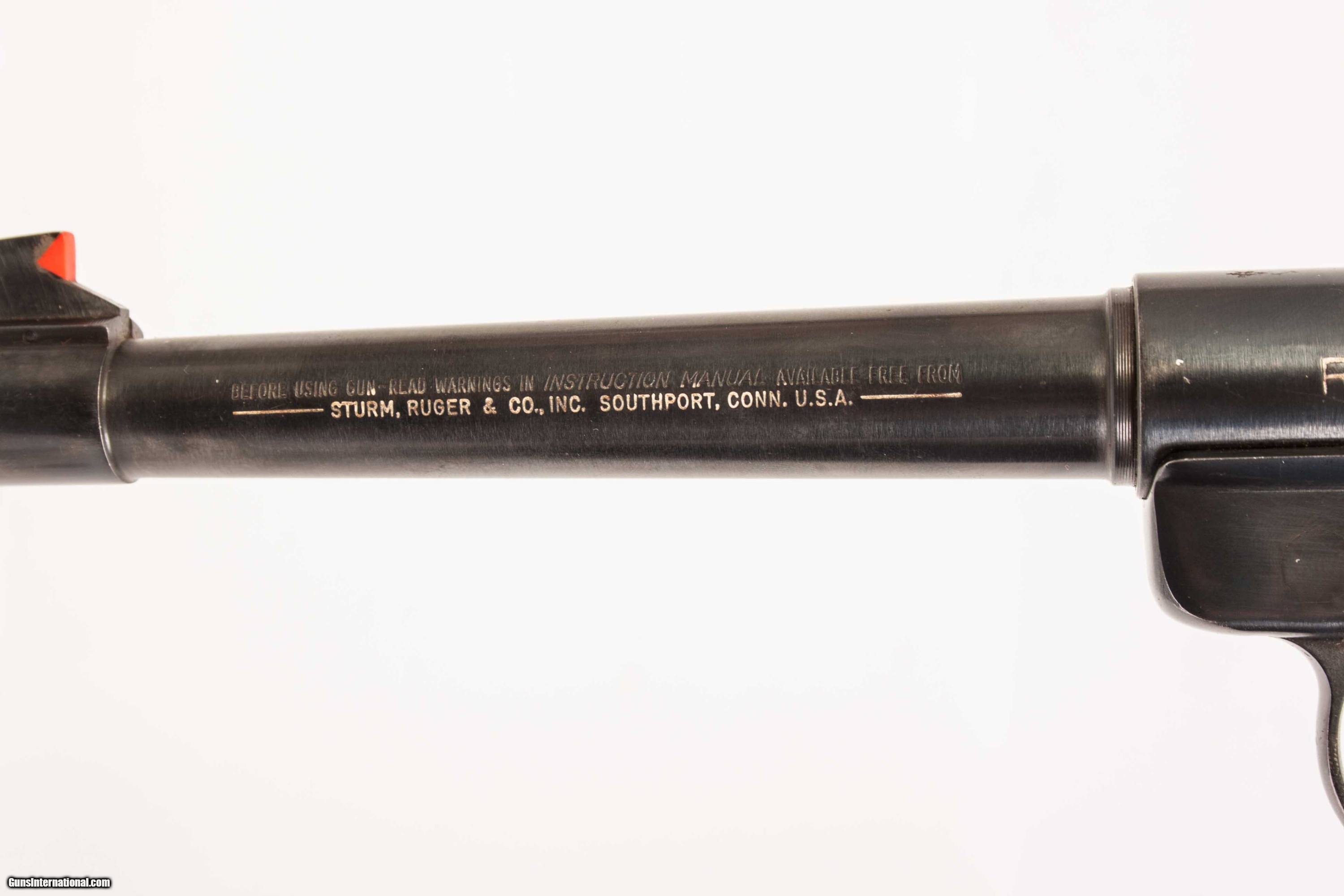 Ruger Mark I chambered in .22 LR with a 7 inch barrel bright bore good grooves and 1 extra magazine. This gun is in very good condition and is covered by Dury's Lifetime Warranty.