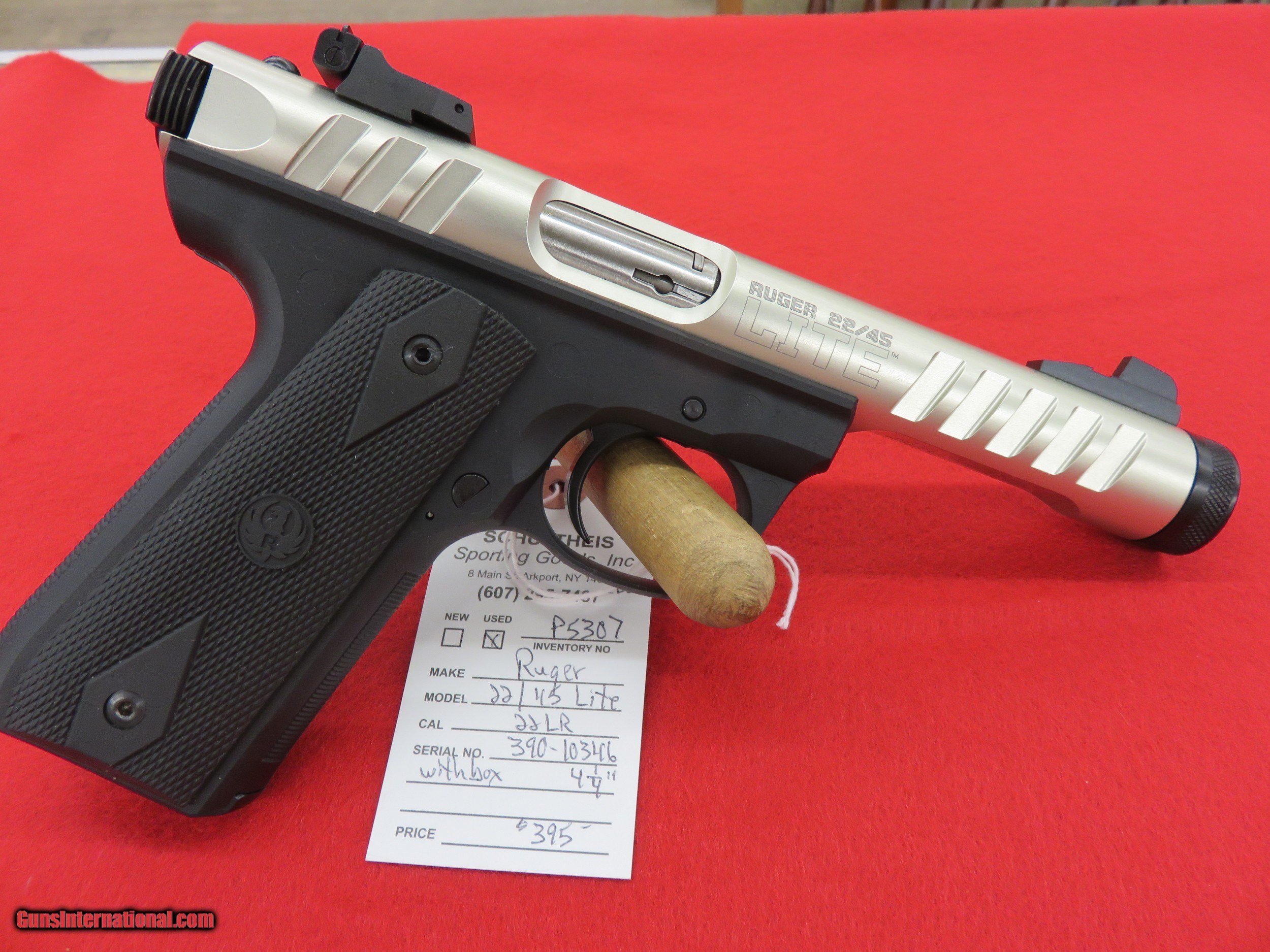 Description: Ruger MarkIII 22/45 Lite, 22LR, with box, 4 1/4" barrel, two tone, overall condition 99%. SOLD |