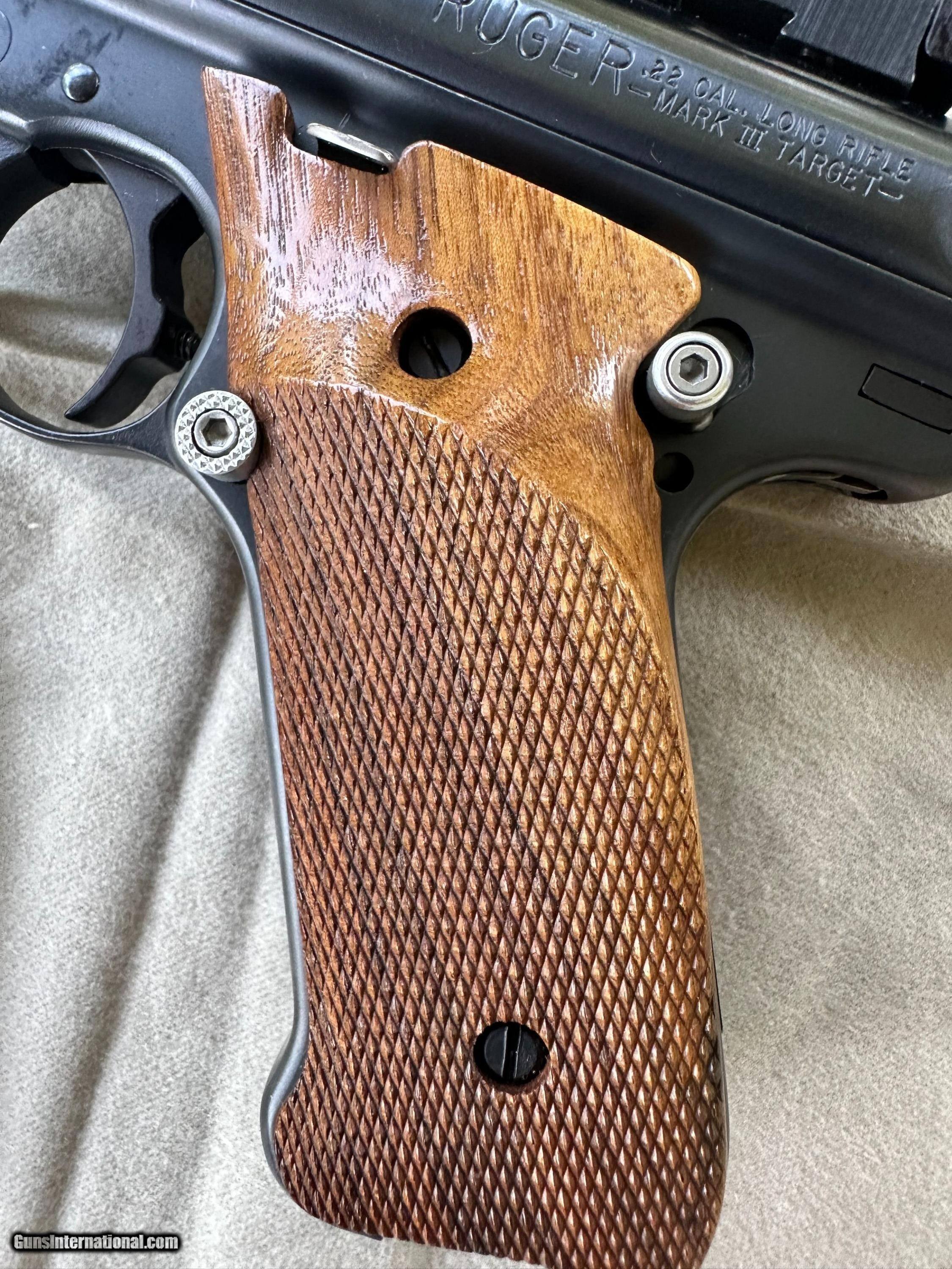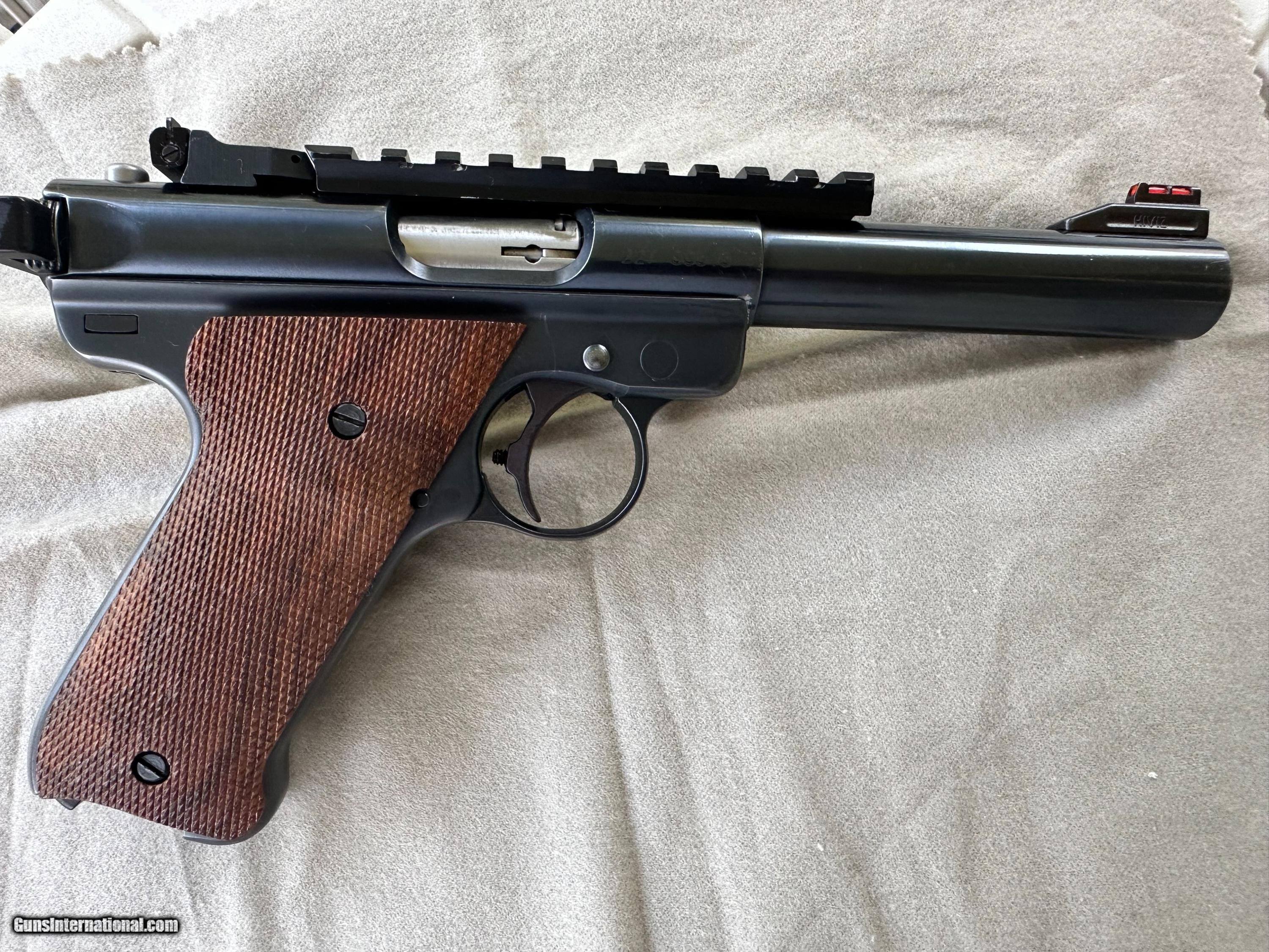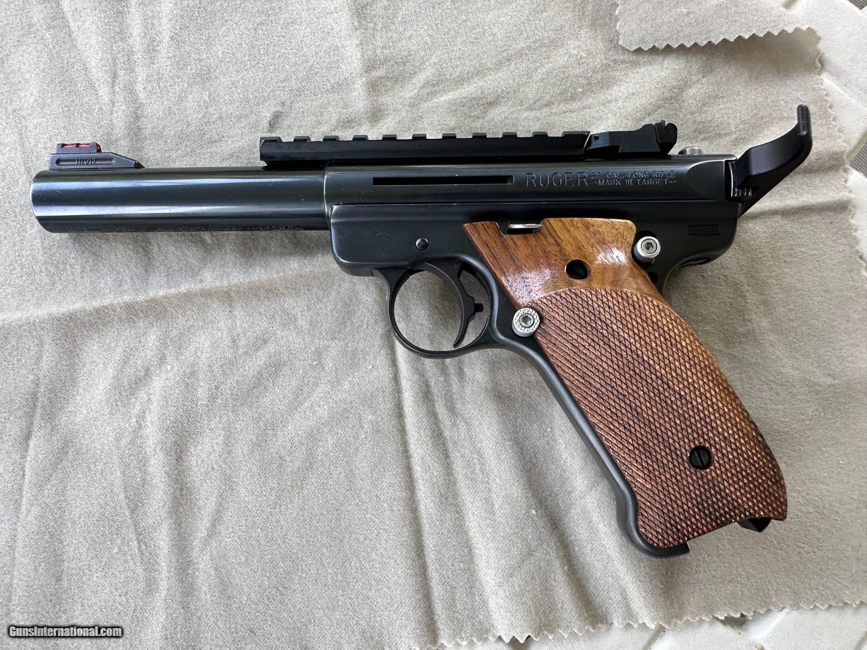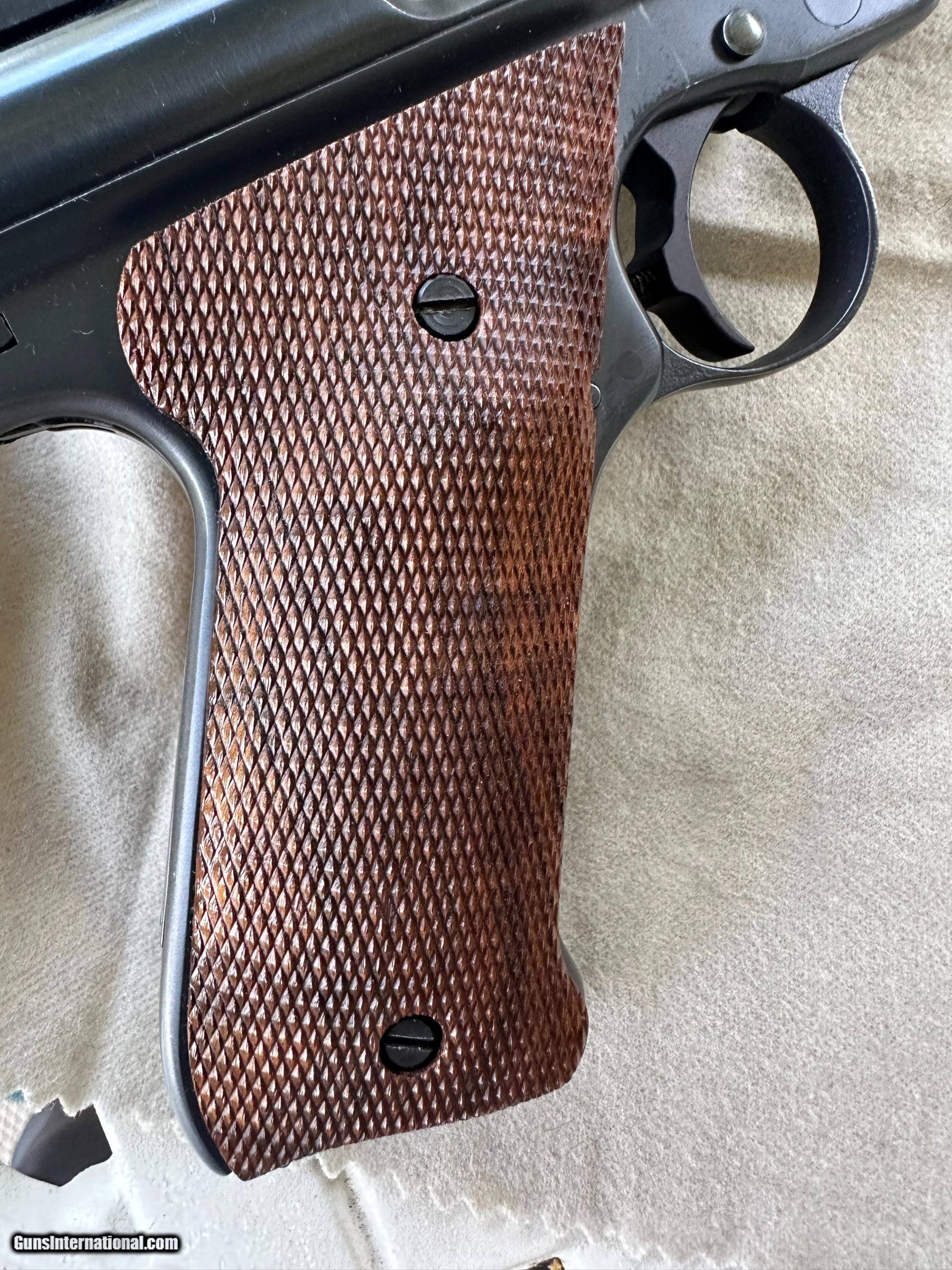 Description: Opportunity to own a one-of-a-kind Ruger Mark III. Selling a completely customized and unique Ruger Mark III built by Dino Longueira of Majestic Arms, one of the best Ruger Pistol Masters of all time. Dino not only specialized in customizing the Ruger Mark’s but learned how to improve them by using his gunsmithing and engineering skills to develop his own improvements. This pistol was a display showpiece used primarily to show customers what was possible. It has been fired but clearly not much based on the condition of the exterior, barrel, and chamber; the outside has some handling marks but overall, the entire pistol is in excellent condition, like a 9.5 out of 10. The pistol features a Majestic engineered strip kit (this feature allows the bolt to be completely removed for complete cleaning and easy reassembly not unlike the Mark IV – see instructions photo), a Bull barrel that has been milled an 11-degree crown, High Viz replaceable front sights, custom Bolt Racker, Bolt Release, and Mag Release, full length Picatinny Rail, a fantastic Speed Trigger measured at 2+ Lbs, and beautiful custom Cocobolo Grips. The upgrades on this pistol alone are easily over $1000! This is a true one-of-a-kind custom gun for a serious collector/shooter who wants something truly special. The pistol will be shipped and insured with 2 ten-round custom Majestic Magazines. Shipping plus insurance is $40 to the lower 48. Payment can be made by Zelle, or check. Priced at $849 or Best Offer SOLD Handgun Caliber: .22 Long Rifle Manufacturer: Ruger Model: Mark III Serial Number: 227-99515 Condition: Excellent Metal Condition: Very Good Wood Condition: Excellent Bore Condition: Excellent Barrel Type: Bull |