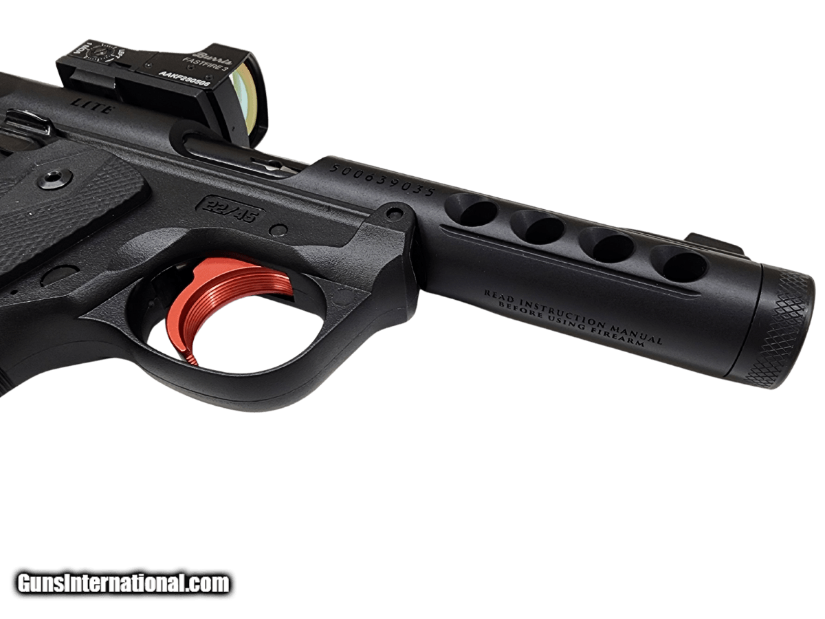 Description: Guns Listing ID: 612710 Ruger Mark IV .22 LR Pistol – Burris FastFire Red Dot Installed, Includes Original Box The Ruger Mark IV in .22 LR is a highly regarded rimfire pistol known for its accuracy, reliability, and ease of use. Featuring Ruger’s innovative one-button takedown, the Mark IV allows for quick and simple field stripping and reassembly—making cleaning and maintenance easier than ever. This pistol comes equipped with an installed Burris FastFire red dot, providing fast target acquisition and making it an excellent choice for range shooting, training, or recreational use. The low recoil and affordable .22 LR ammunition make the Ruger Mark IV ideal for shooters of all experience levels. This package includes: Installed Burris FastFire red dot sight Original Ruger box Key Features: Caliber: .22 LR Semi-automatic rimfire pistol One-button takedown system Burris FastFire red dot installed Renowned Ruger accuracy and durability Comfortable grip and balanced design Whether you’re looking for a fun range pistol, a training firearm, or a rimfire handgun with an optic already mounted, this Ruger Mark IV is a fantastic option. Manufacturer: RUGER Model: MARK IV Caliber Info: .22 LR Condition: Used - Non-Certified Barrels: 4.4" BARREL Action: SEMI AUTOMATIC Finish: black Weight: 1.56 LBS. Price: $799.99 Contact Seller |