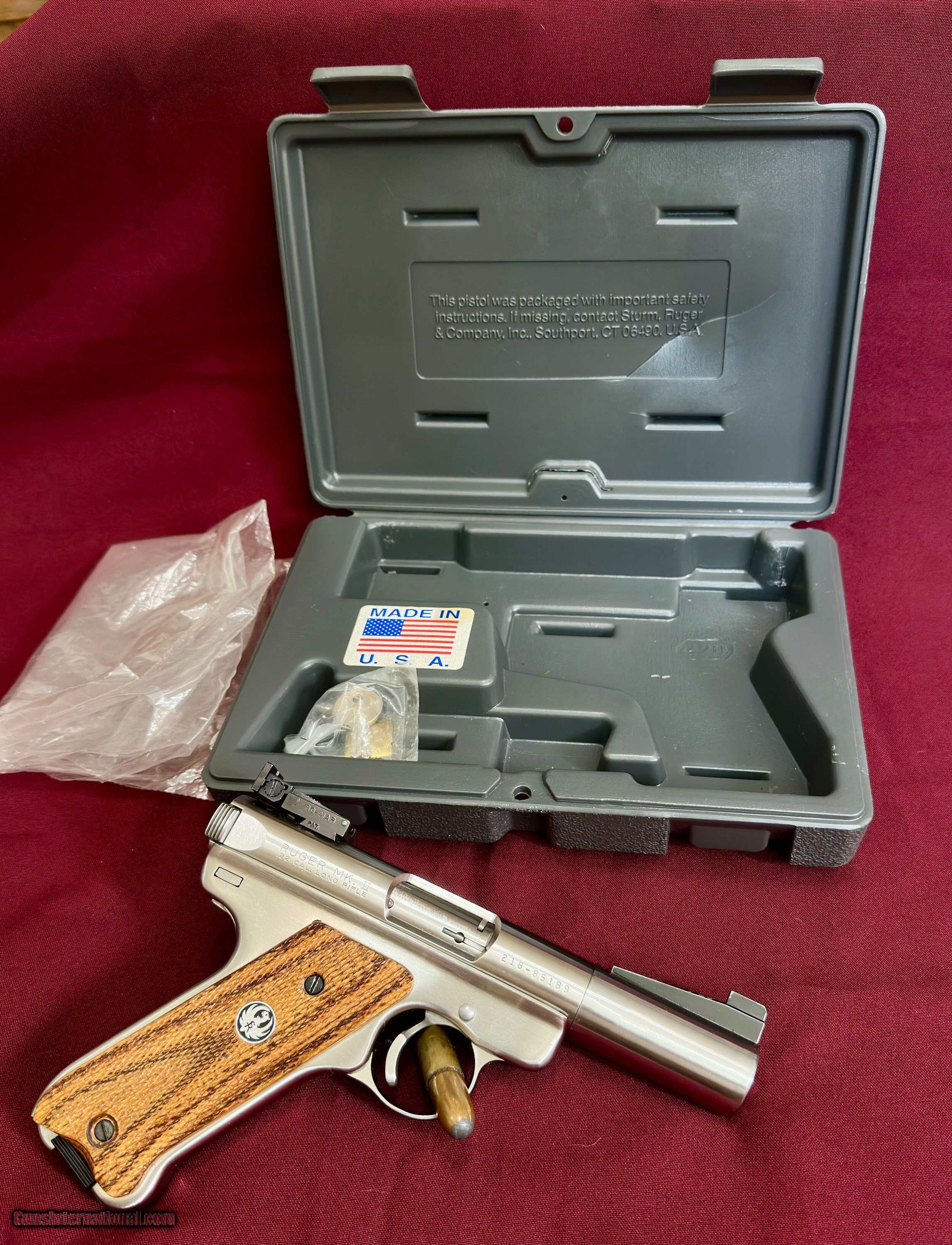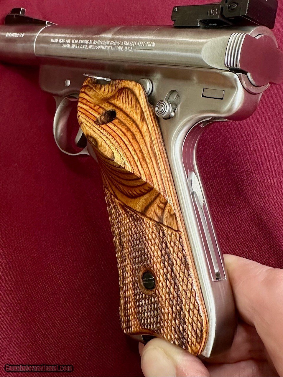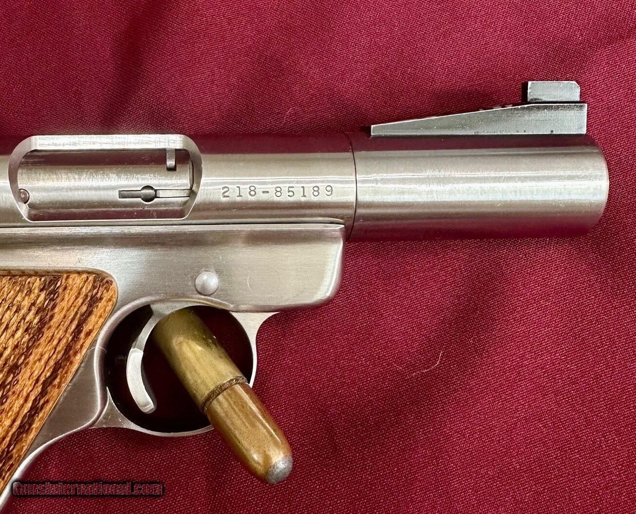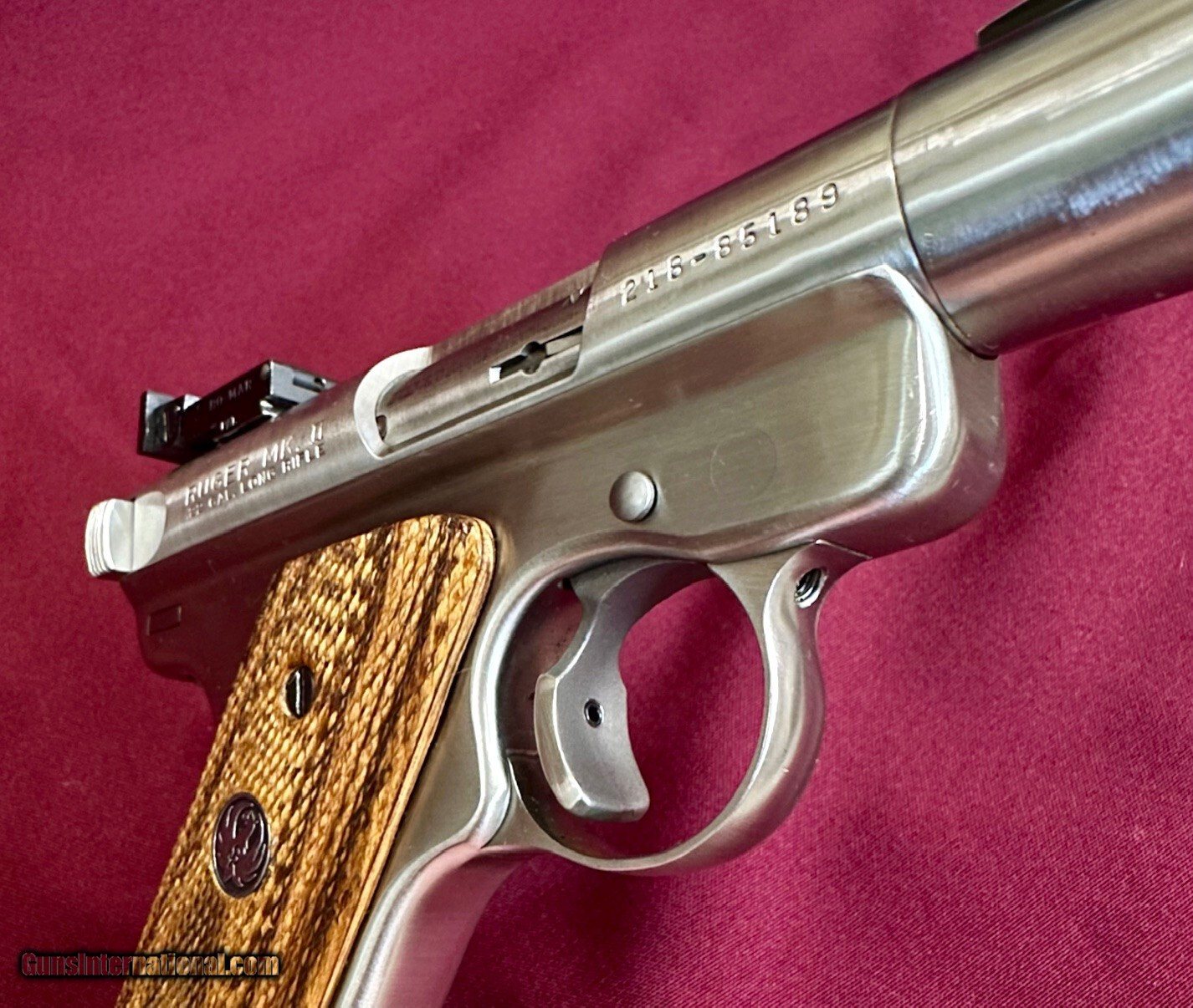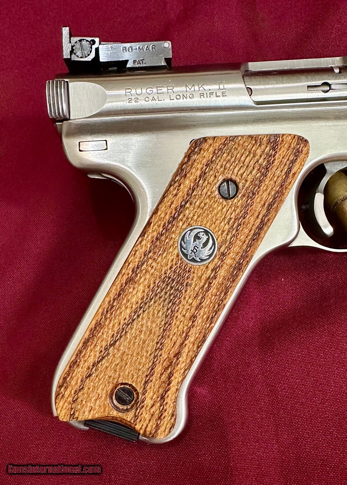 Ruger MK II “Volquartsen Custom” Stainless, 3.5” Heavy BBL & Trigger, Bo-Mar Sights, 1998, Exc Condition!