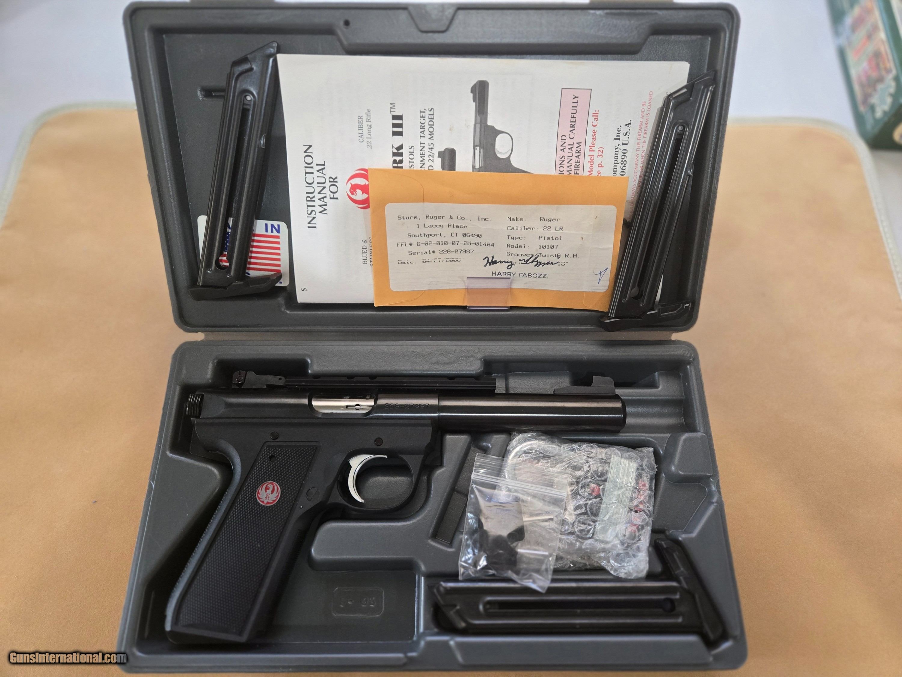 Description: Ruger MKIII 22/45 .22 LR Target Pistol, Excellent Condition,Bull Barrel, Adj Rear Sight, 3 Magazines, Picatinny Rail,Factory Box and Paperwok, Will ship to your FFL $45 SOLD Handgun Caliber: .22 Long Rifle Manufacturer: Ruger Model: MKIII 22/45 Serial Number: 228-27987 Condition: Excellent Metal Condition: Excellent |