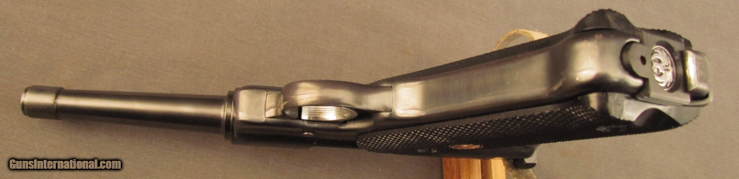 Description: S# 213-57291, 22 LR, 4 3/4Inch barrel, bright excellent bore. This 1987 built pistol remains in excellent condition with well over 95% blue showing a few light scattered marks and very light wear from use. Grip panels remain in great shape with very light scattered marks from use. Gun comes with one correct ten round magazine. These pistols are great for practice and plinking. FFL SOLD Manufacturer: Ruger Model: MKII Serial Number: 213-57291 Caliber Info: .22LR Gauge Info: .22LR |