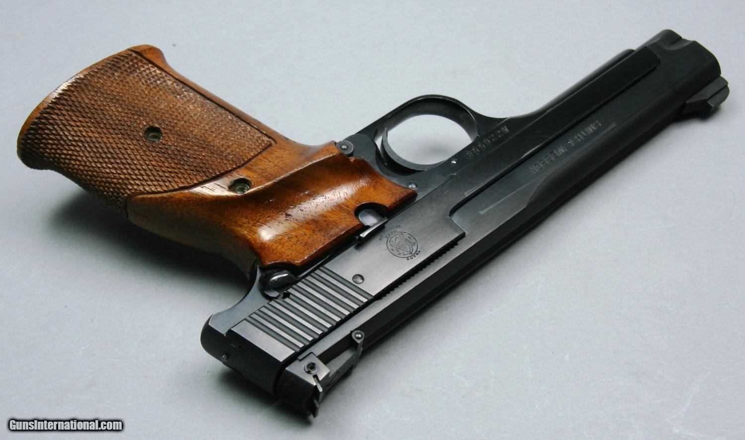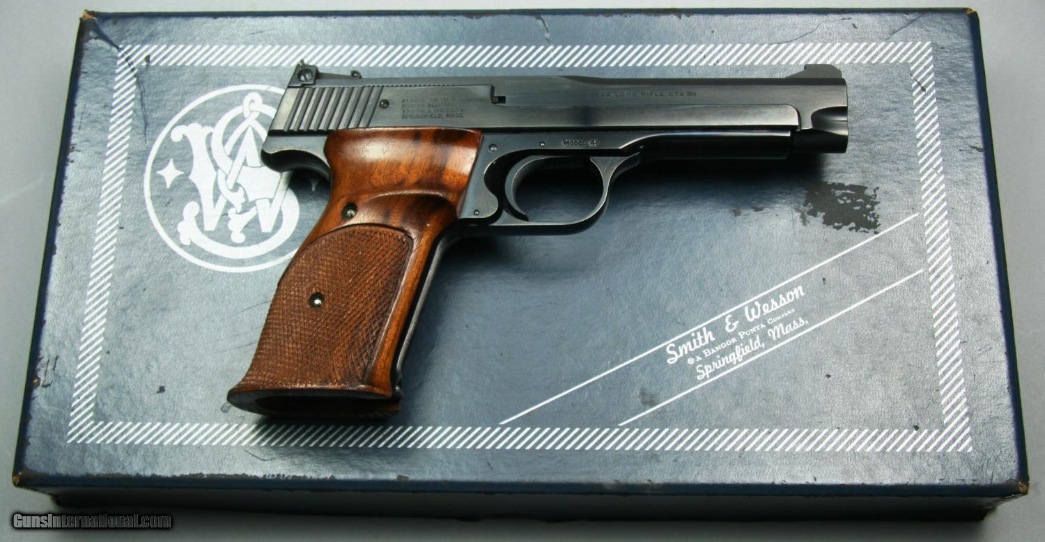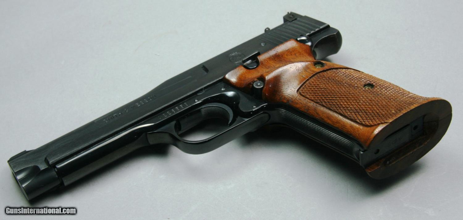 Description: This S&W Model 41 Target pistol has a 5 inch barrel and was made in 1973. It has the cocking indicator and beautiful wood grips. The condition is 99% with no noticeable wear. It does look to be fired, but well cared for, as most expensive target pistols are. The bore and mechanical condition are Exc. It has two original Mags. and the original numbered box, and instruction sheet. .22 LR Cal. 5” Barrel, Serial Number: A226558, FFL Required Beaver Creek Arms TERMS & CONDITIONS Objective: As a collector of 35 years and Licensed Firearms Dealer since 1989 I have a clear definition of a satisfactory transaction. I will be paid as we agreed to, and you will be satisfied with your purchase. My goal is to establish a client list of satisfied repeat customers who will recommend me to other collectors. It’s just that simple. Exiled Saudi princes with secret funds needing change from an over paid purchase need not apply. Notice: ALL Federal, State, & Local firearms laws will be followed. I will take NO shortcuts in the process of a legal sale or transfer, so please don’t ask. SHIPPING: Normally shipments are made via U.S.P.S. Priority Mail, Insured, with a return receipt. Typical Packing, Shipping and Insurance cost for a handgun is $30.00, and for a Long Gun is $45.00. Availability: All items are in stock and available for immediate shipment. Please call or email and an Item will be held up to a week with your Name, Address, & Phone Number. Items marked Reserved are being held for awaiting payment or on layaway. If you are interested in a reserved item, please call or E-Mail to be placed on a backup list. FIREARMS: Modern firearms, post 1898, can only be shipped to a Type 01 Federal Firearms License address. Curio-Relic firearms, as defined by the BATF list, can usually be shipped to a Type 03 Collectors License address. Some states have additional restrictions such as CA, CT, DC, IL, MD, NJ and NY. A signed valid FFL license copy either mailed or emailed will be required for shipment to only the license address. Antique firearms, pre 1898 do not require a Federal License. For purchase, a copy of a Government Issued Identification (Driver’s License, Etc.), showing date of birth and current address will be required. GUARANTEE: Your complete satisfaction is assured, see objective above. If you are not satisfied, please contact me within 3 days of receipt. Please don’t fire the weapon, safety, function and accuracy are NOT Guaranteed. Any weapon offered by Beaver Creek Arms is never test fired nor is there any representation the gun is functional and safe to fire. These guns are sold for collectors and only represented as used firearms that must be checked by a competent person, observe all the necessary safety precautions prior to attempting to load and fire one of these weapons RETURNS: Returns must be made within 3 days of receipt. They must be received in exactly the same condition with no parts exchanged. If it has been altered, damaged, or fired, a refund will not be made. Packing, shipping and insurance cost will not be refunded. All layaway purchases are returnable for merchandise credit only. Sales: All sales are made with the buyer’s full acceptance of the stated terms of sale. All sales are made in strict compliance with all Federal Firearms Laws. No items contained in thissite are offered for sale where prohibited by any Federal, State or Local laws. By ordering, the buyer certifies that their purchase will be in full compliance with all Federal, State and Local laws. All transactions shall be deemed to occur in Pennsylvania regardless whether by telephone, mail, internet or the physical location of the buyer. All transactions will be subject only to Federal and Pennsylvania State law. Any disputes will be resolved in a Pennsylvania Court. PAYMENT: Bank check, Personal check, and Money Orders are preferred. Visa and MasterCard are accepted with a 3% processing fee. For Visa and MasterCard orders please provide the account number, code number, expiration date, name on card, phone number and card billing address. This information can be phoned in, or E-Mailed. All orders must be paid in advance, C.O.D. orders are not accepted. Checks, both Bank and Personal must clear before the order will be shipped, usually a 2 week delay. LAYAWAYS: A 20% deposit is required. Balance is due in 60 days. Deposits are non-refundable and are forfeited after 60 days. Layaway sales are returnable for merchandise credit only. SALES TAX: Pennsylvania state sales tax is 6% for in state purchases. The payment of other states sales tax, if applicable, for shipped items is the buyer’s responsibility. DISCREET: Client information will remain Confidential. Your privacy is protected. SOLD |