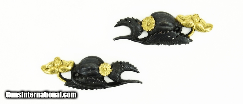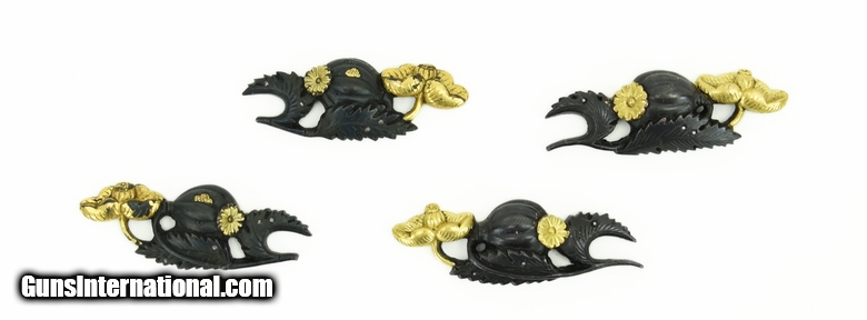 Description: Set of Dai-Sho Menuki. Formed has Poppy flowers with gold highlights. Unsigned. SOLD |