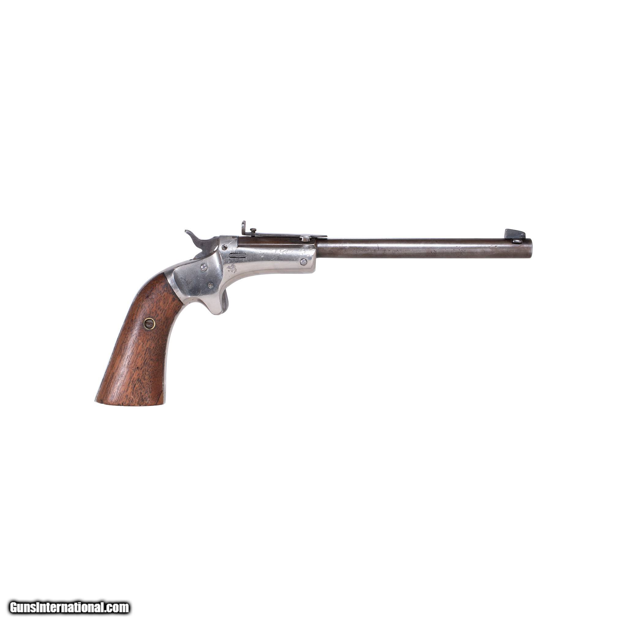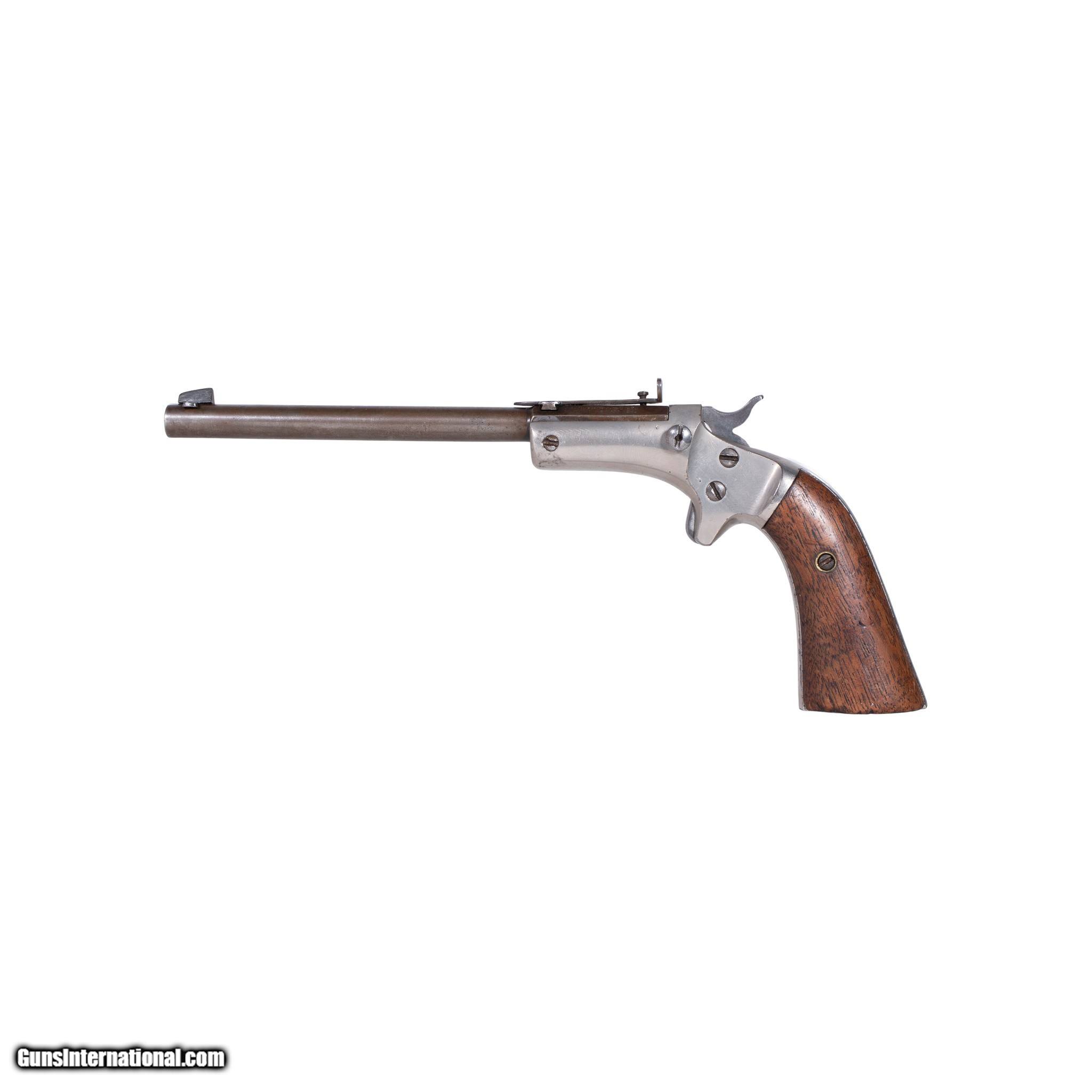 Description: Stevens number 43 second issue pistol. Serial #1662. 22 RF cal, 6" part octagon barrel, blue/nickel finish, walnut grips. MFC 1896 1916. Crude inscription on the butt "Cadwell". 1896 Family Owned & Operated Cisco’s Gallery deals in the rare, exceptional, and one-of-a-kind pieces that define the history of America and the Old West. Our pieces range from American Indian to Cowboy Western and include original items of everyday life, commerce, art, and warfare that tamed America’s frontier. Our 14,000 square foot gallery opened in 1996 in beautiful Coeur d’Alene, Idaho. Personal Service Cisco’s operates on old fashioned values – honesty and integrity, and all of our items are backed by our money back guarantee. We appreciate the opportunity to earn your business. Whether you desire assistance with a jewelry purchase, choosing a gift, identification, or even selling – we hope to be your trusted source. Manufacturer: Stevens Model: #43 Serial Number: 1662 Barrel Length: 6 Price: $700.00 Contact Seller |